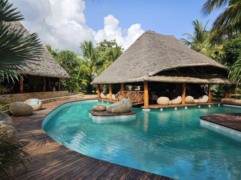 Pro začátek našeho pobytu jsme rozhodli pro ubytování v hotelu Zanzibar White Sand Luxury Villas & Spa - Relais & Chateaux*****. Tento butikový hotel, který spadá pod prestižní řetězec Relais & Châteaux, se nachází v klidné oblasti Paje, známé především pro kitesurfing. Hotel nabízí luxusní ubytování v pouhých 16 vilách, což zajišťuje maximální soukromí a komfort. Každá vila má svůj vlastní bazén nebo jacuzzi, dostatek prostoru a soukromí. Všechny vily jsou navrženy tak, že máte hlavní budovu, kde se nachází ložnice s koupelnou a vedle je postavena další místnost, která slouží jako obývací pokoj  s jídelnou. Je vybavena kvalitními materiály a spotřebiči značky Dyson či Samsung. K dispozici je Vám po celou dobu pobytu Váš osobní butler, který se postará o splnění všech vašich přání. Pro rodiny s dětmi jsou připraveny speciální služby, včetně dětského teepee, hraček na písek, omalovánek, trička a plyšáků, se kterými si zpříjemní pobyt.