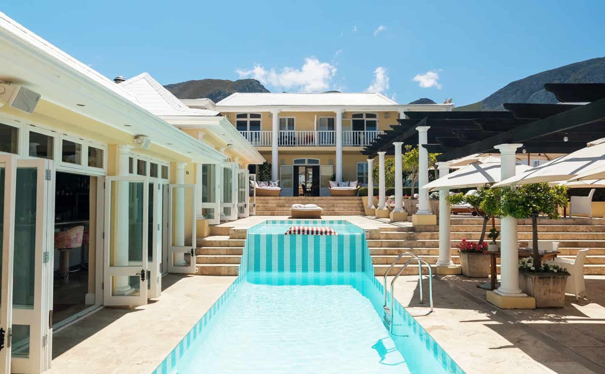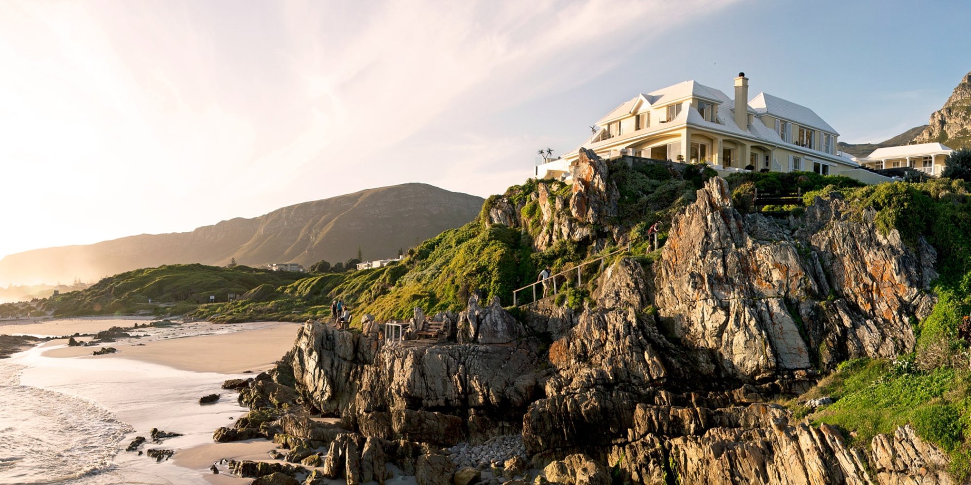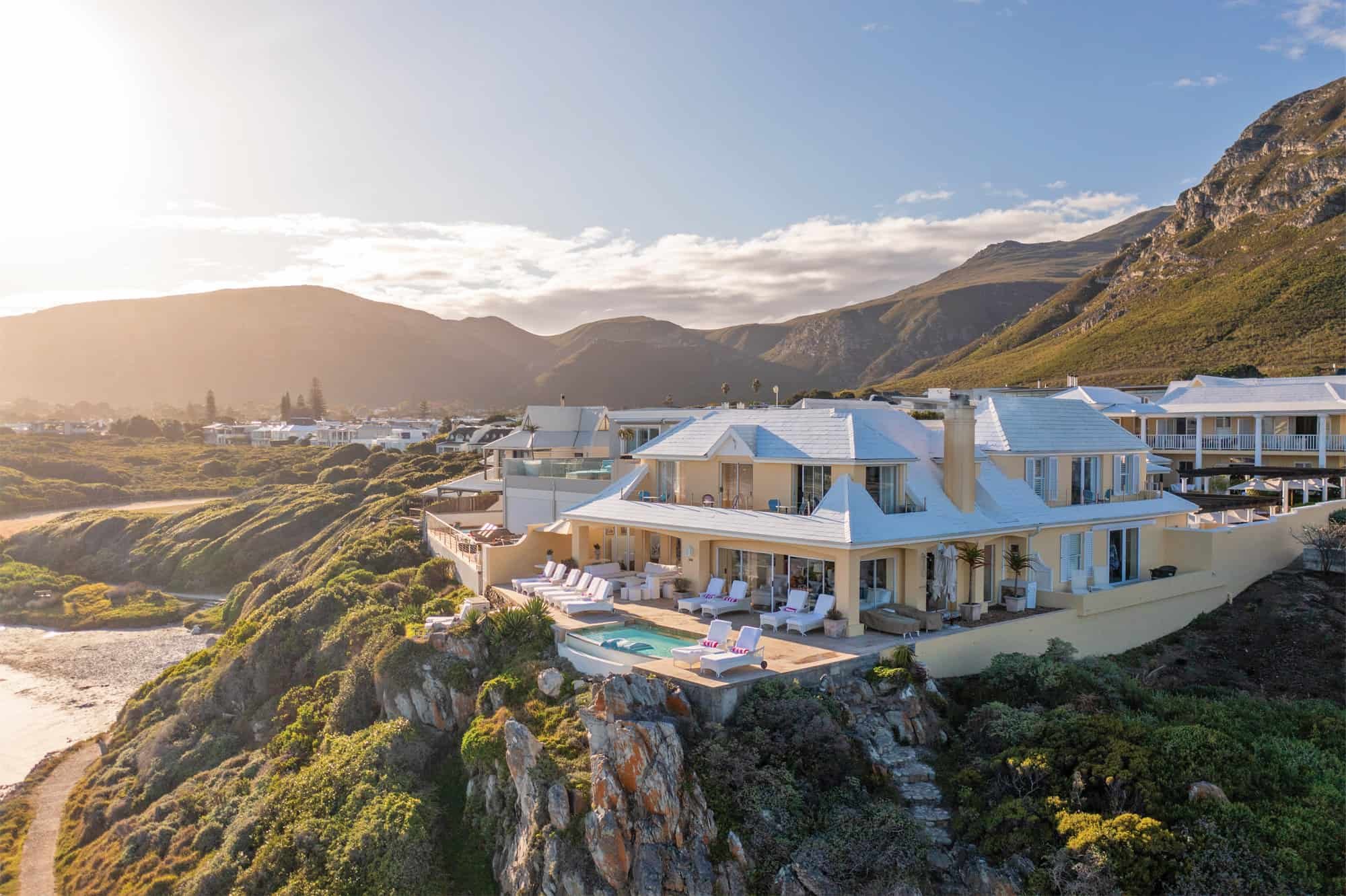 Typy špecialistov All inclusive hotel v Hermanus Stojí na útesu mezi dvěma plážemi V roce 2022 byl oceněn jako „Best Resort in Africa“
