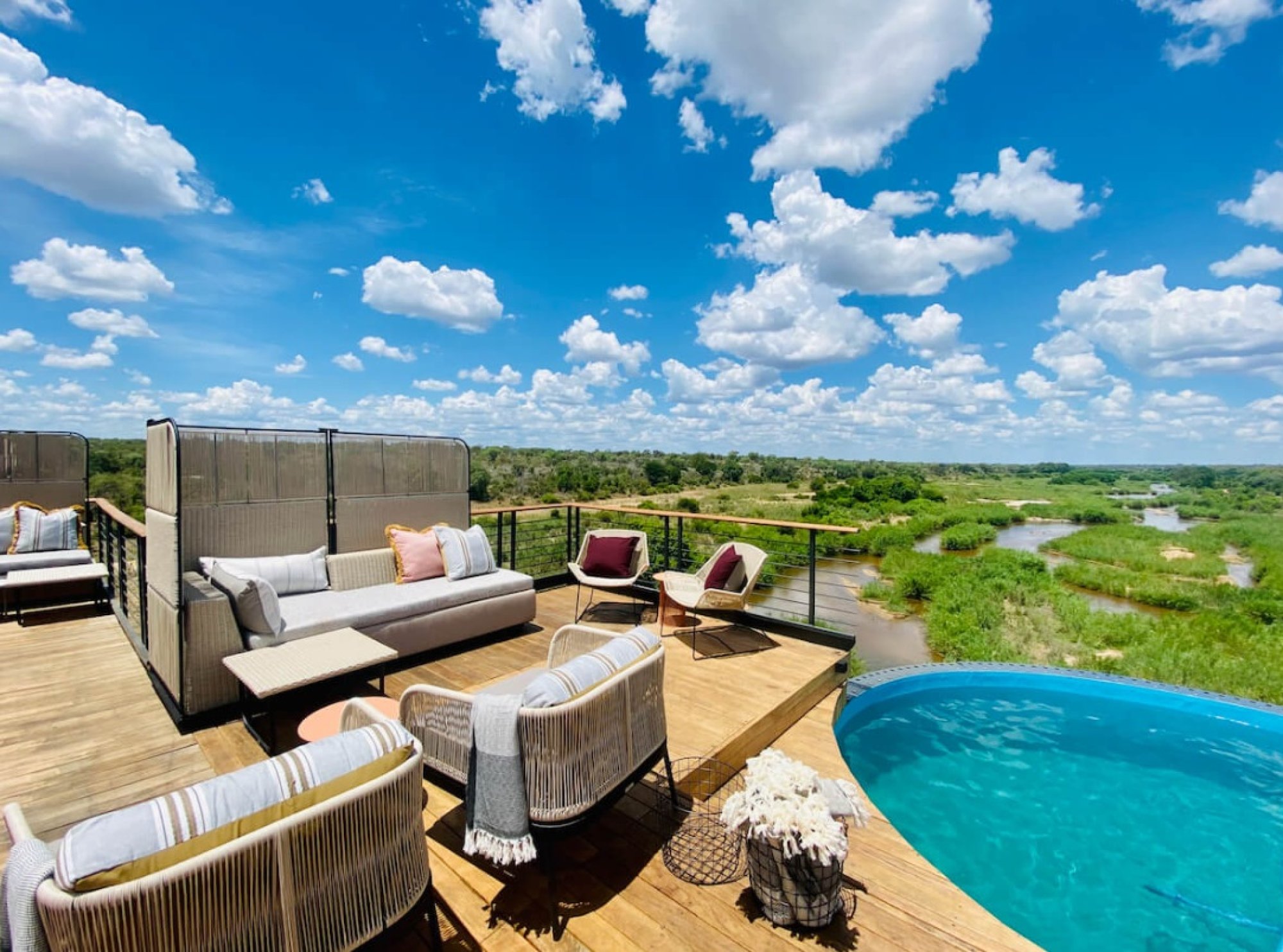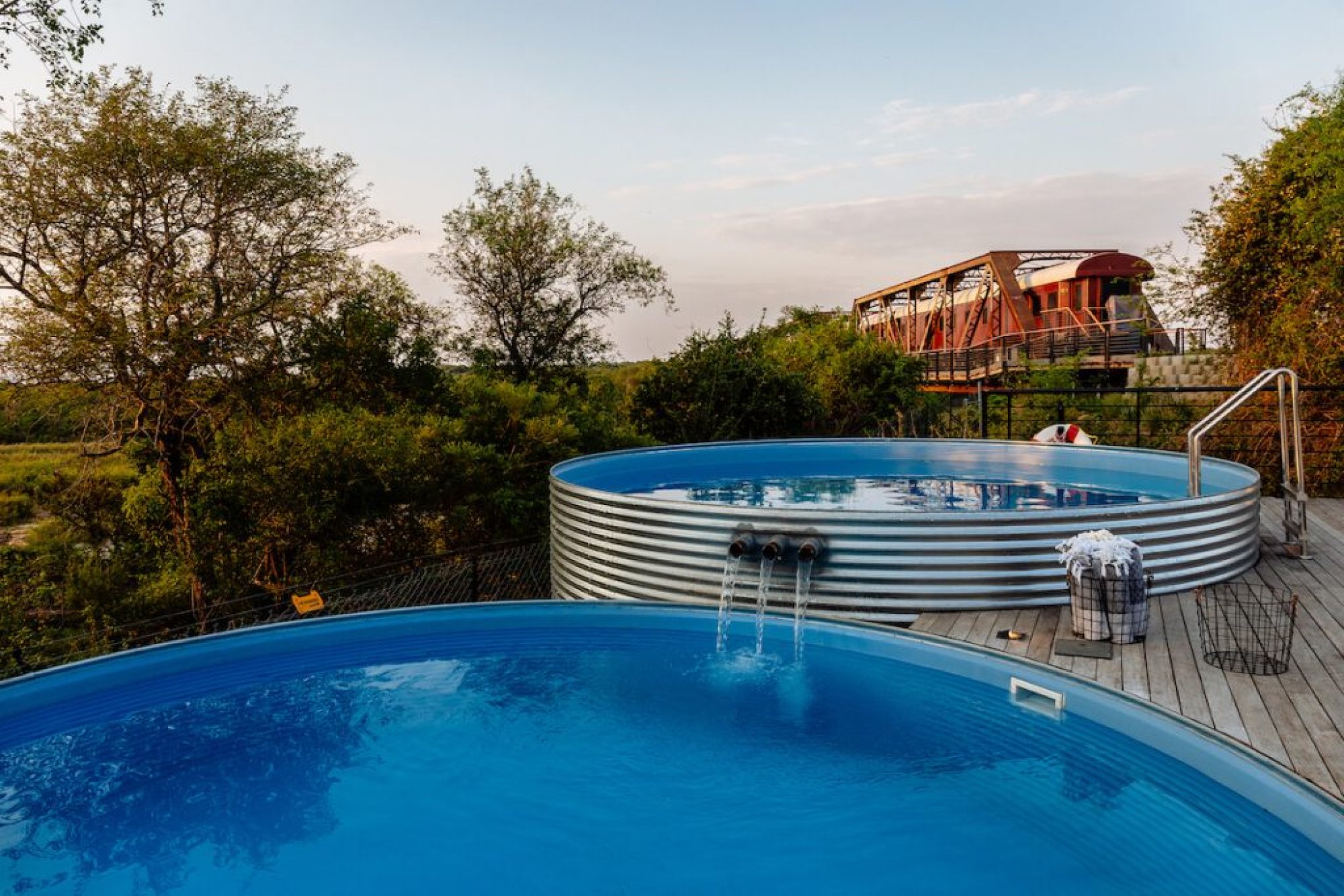 Hotel Kruger Shalati disponuje celkem třemi nádhernými bazény, z nichž dva jsou připojené k mostu, a „visí“ tak přímo nad majestátní řekou Sabie. Díky tomu můžete propojit relaxaci se vzrušujícím pozorováním divoké zvěře.