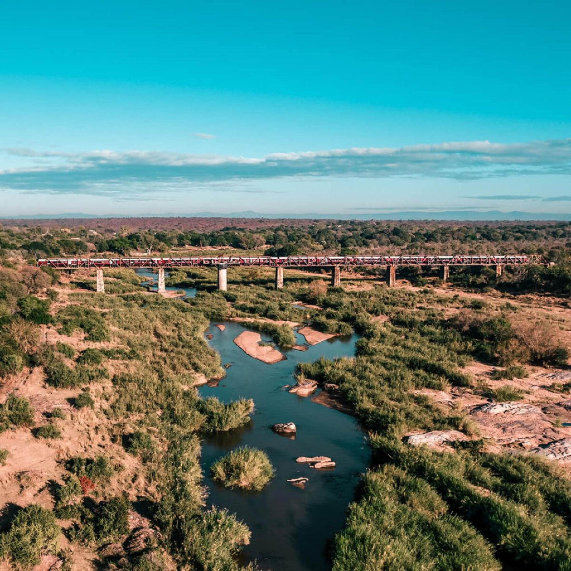 Velká prosklená vlaková apartmá odkrývají nekonečný výhled na majestátní řeku Sabie. Nachází se přímo ve vlaku na impozantním mostu a jejich interiér zdobený místním uměním a ř..