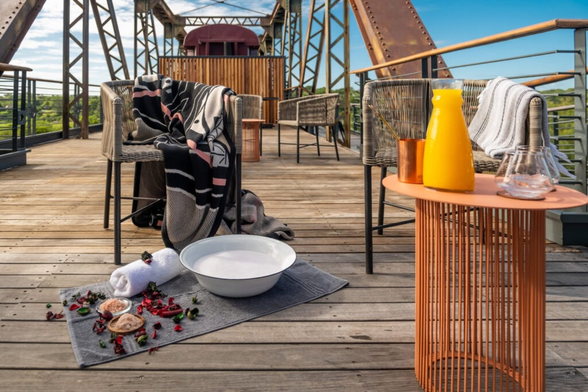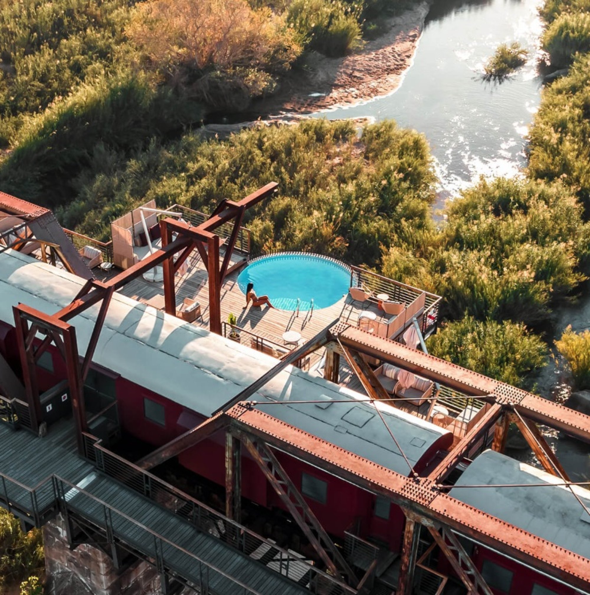 Velká prosklená vlaková apartmá odkrývají nekonečný výhled na majestátní řeku Sabie. Nachází se přímo ve vlaku na impozantním mostu a jejich interiér zdobený místním uměním a řemeslnými výrobky je skutečnou oslavou afrického designu. K dispozici je varianta s manželskou postelí i dvěma samostatnými lůžky. Hosté mají přístup do hotelového bazénu s terasou, který je umístěný na úrovni vlaku, vysoko nad břehy řeky, a nabízí tak jedinečný výhled na krokodýly, hrochy, buvoly a slony. V tomto typu apartmá nelze ubytovat děti mladší 12 let.