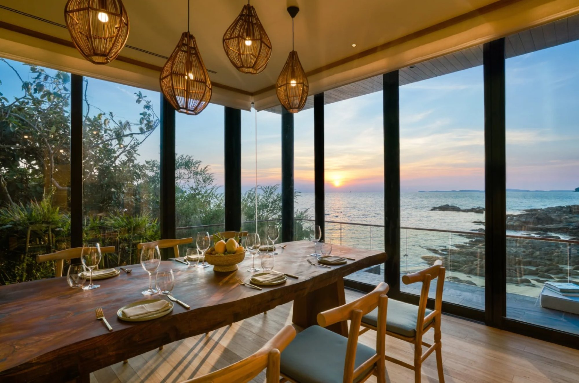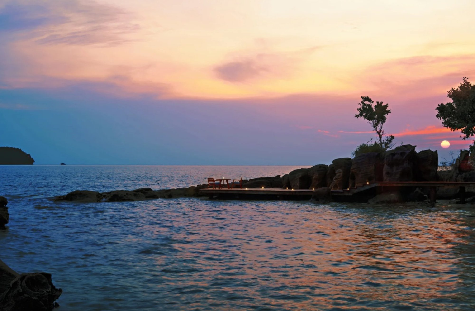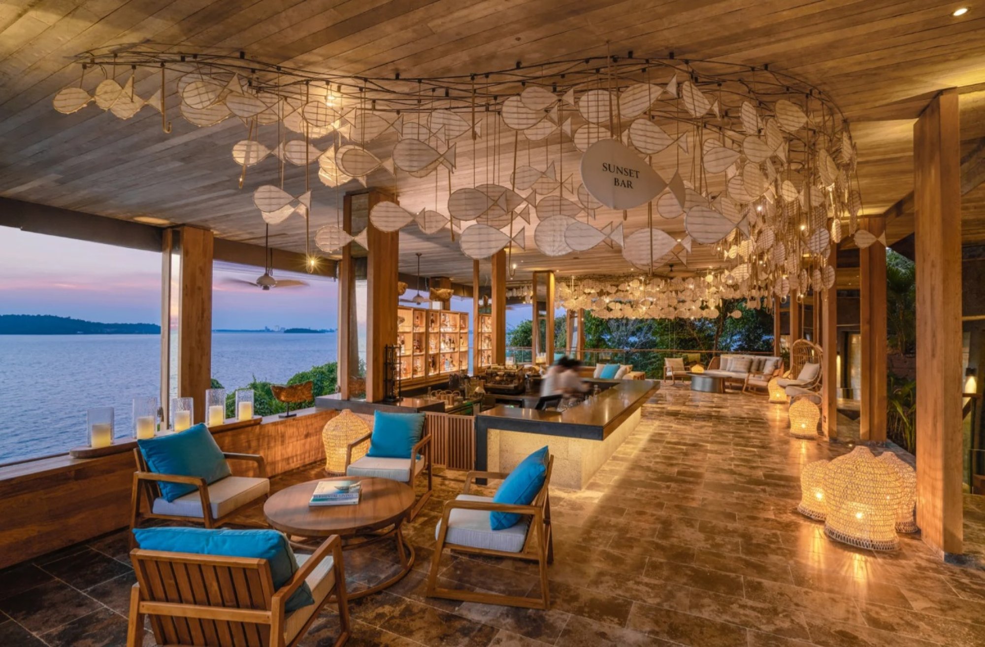 Sunset Bar – Vychutnajte si svoj obľúbený koktail spolu s dych vyrážajúcim výhľadom na západ slnka v tomto sofistikovanom bare, ktorý stojí priamo nad vodou. Otvorený interiér odkrýva panoramatické výhľady na Thajský záliv a ponúka ideálne zázemie pre vynikajúci aperitív pred večerou či drink pred spaním.