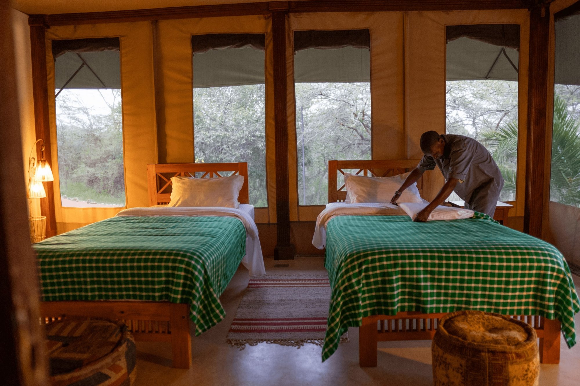 Kemp je v príjemnom anglickom štýle s ideálnou polohou na sledovanie zveri nielen v čase veľkej migrácie, ale aj v priebehu roka. Prevažuje drevo s africkými prvkami. Ubytovanie je zaistené v pohodlných stanoch s vlastnou kúpeľňou alebo v suite zasadenej v buši, alebo privátnej vile s vlastným bazénom.
