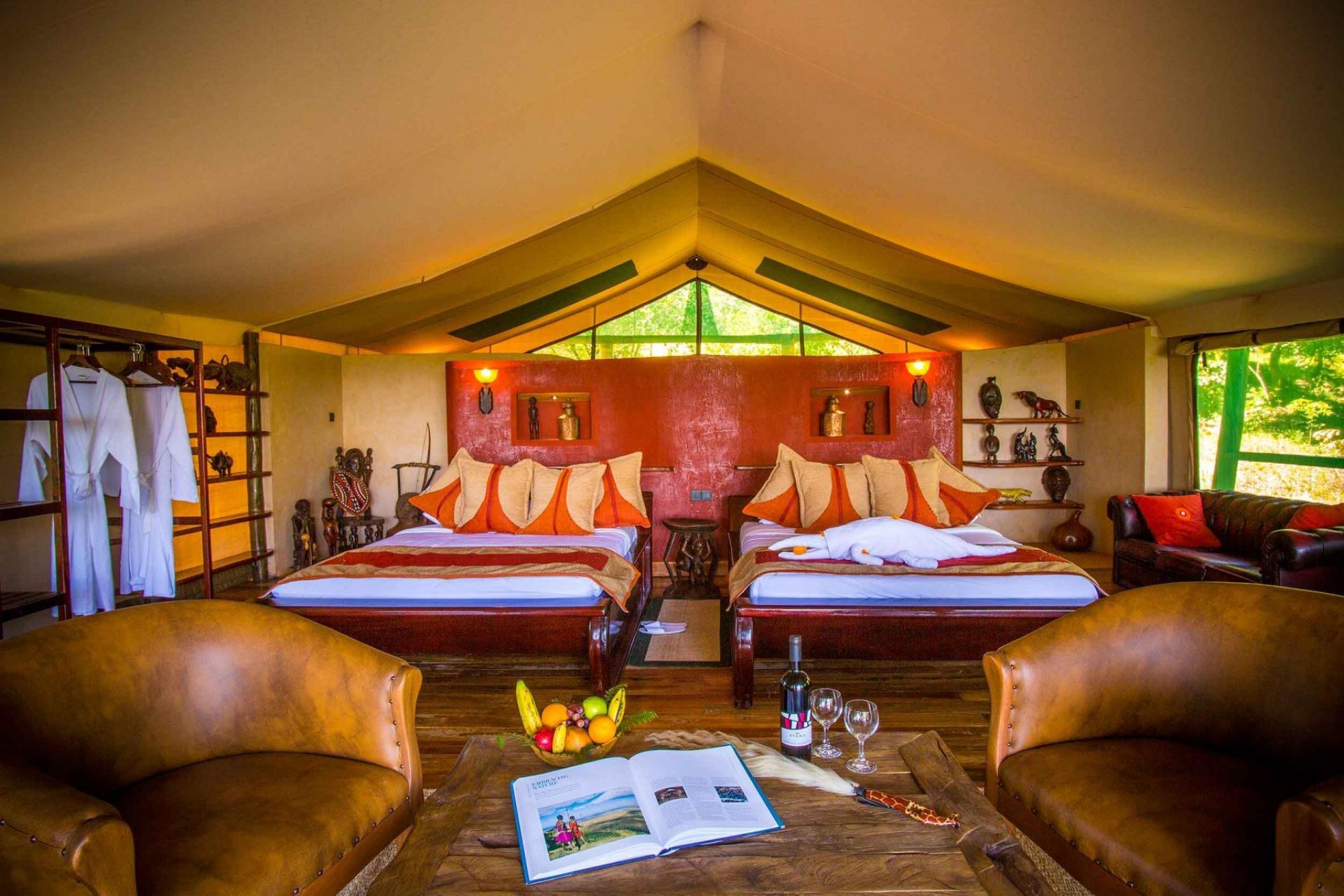 Kombinácia luxusného ubytovania a špičkových služieb je zárukou bezstarostného pobytu. K dispozícii je 24 elegantne zariadených stanových apartmánov vhodných pre páry aj rodiny s deťmi. Vďaka ich vyvýšenej polohe sa môžete zo súkromnej terasy kochať nádhernou panorámou africkej divočiny. V hoteli sa podávajú vynikajúce pokrmy inšpirované miestnymi chuťami, ktoré si môžete vychutnať v pohodlí hotelovej reštaurácie, na špeciálnom vyhliadkovom mieste alebo v samotnom srdci buša. Hotelový personál sa postará o to, aby ste zažili to najlepšie, čo Masai Mara ponúka.