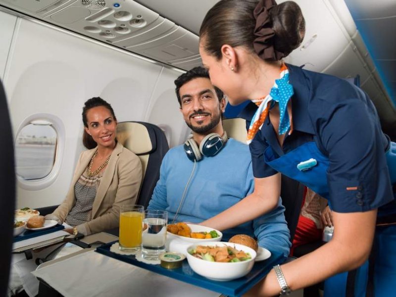 Na všech letech flydubai není v ekonomické třídě menu v ceně letenky, nicméně kdykoliv během letu je možné si za příplatek vybrat občerstvení (stravu i nápoje) z nabídky na daném letu. Zábavní systém lze také zakoupit za poplatek. V business class je samozřejmostí dedikovaný servis na míru s možností snacku kdykoliv během vašeho letu. K dispozici je i výběr z bohaté nabídky alkoholických a nealkoholických nápojů i pochutin od oříšků ke koňaku, až po čokoládu ke kávě.