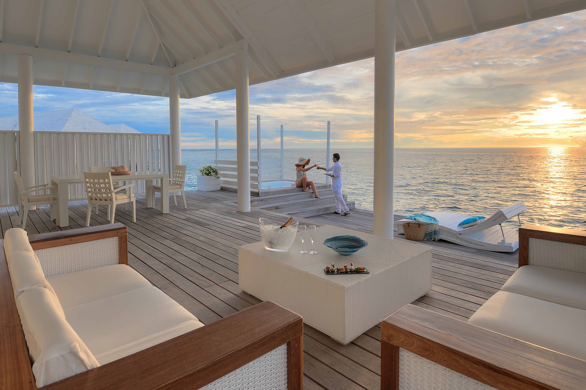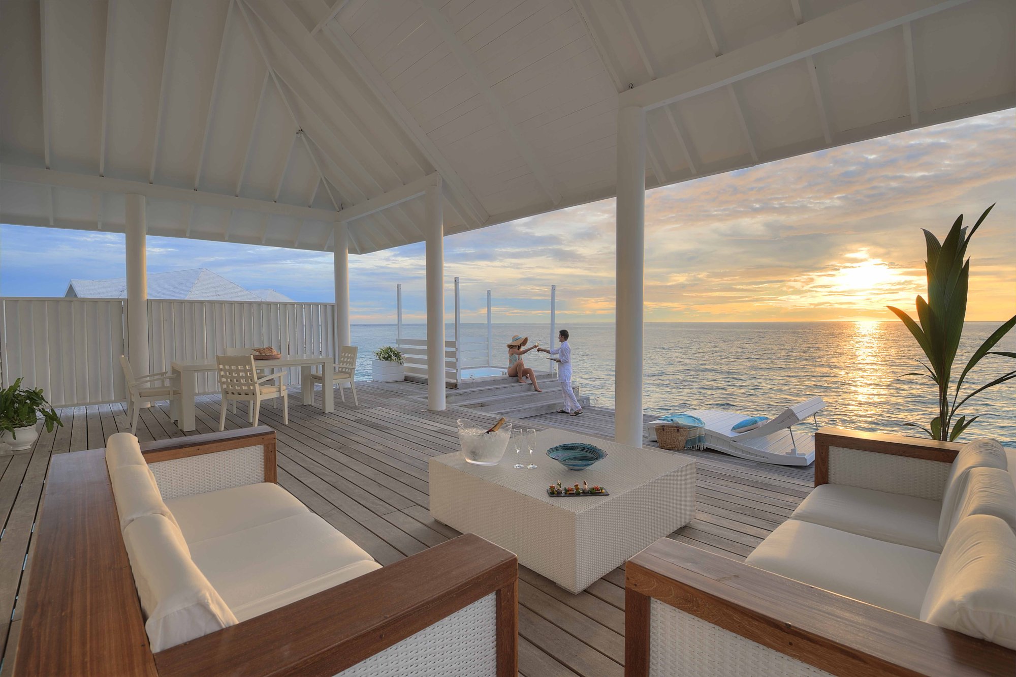 V úchvatných nadvodných vilách si môžete dopriať úplný luxus a exkluzívne zážitky spoločne so službami na mieru. Už pri prílete na letisku môžete využiť salónik na čakanie na hydroplán. V rezorte potom nie je problém zaistiť privátnu lekciu jogy alebo pilates, vyraziť na výlet s morským biológom alebo si pochutnať na unikátnych špecialitách priamo vo vlastnej vile s romantickou atmosférou. Všetko môže byť prispôsobené na mieru.
