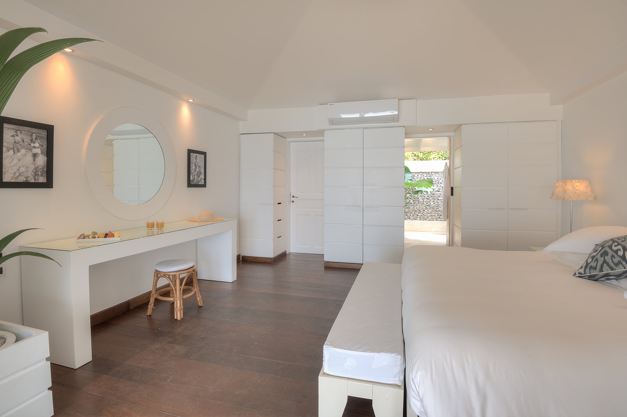 Doprajte si ten pravý komfort v nadvodnej vile s privátnou hydromasážnou vírivkou jacuzzi na priestrannej terase s priamym prístupom do mora. Interiér víl je priestranný, svetlý a vybavený štýlovým nábytkom, talianskym osvetlením a parketovými podlahami. Každá vila má veľký obývací priestor s komfortným rozkladacím gaučom a malým rohovým barom. Ďalej do vybavenia patrí manželská posteľ s nebesami, individuálna klimatizácia, stropný ventilátor, telefón s IDD, zariadenie na prípravu kávy a čaju, Wi-Fi, denne doplňovaný minibar, Apple iMac s ponukou hudby a filmov, digitálny trezor, šatňa, veľký sprchovací kút s duálnou hlavicou a vlastným prístupom na terasu, dvojité umývadlo, zrkadlo, župany, osobné toaletné potreby, plážové osušky, služba upratovania dvakrát denne, bidet, sušič vlasov a pláštenka pre mužov aj ženu.