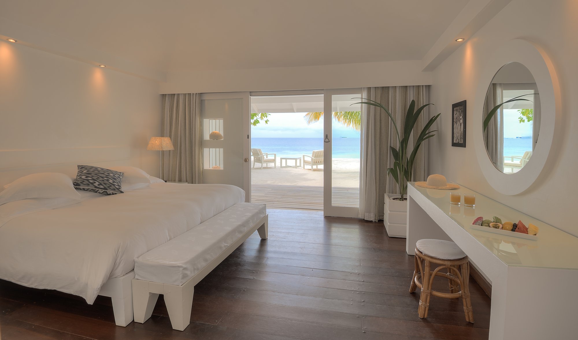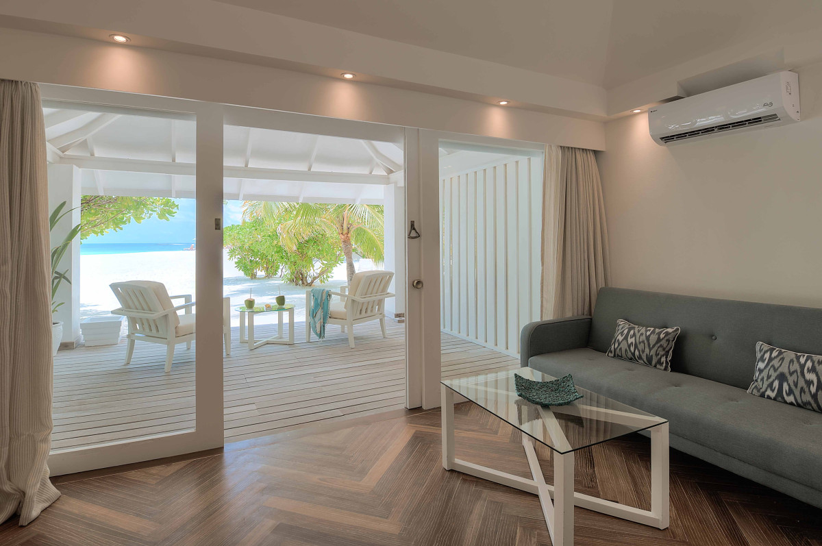 Tvárou v tvár nedotknutým vodám predstavujú plážové bungalovy skvelé tropické ubytovanie s priamym prístupom k pláži. Ponúka súkromnú terasovú verandu s kreslami, konferenčným stolíkom a lehátkami. Všetky bungalovy majú aj vonkajšiu sprchu. Ďalej do vybavenia patrí manželská posteľ, individuálna klimatizácia, stropný ventilátor, telefón s IDD, zariadenie na prípravu kávy a čaju, Wi-Fi, denne doplňovaný minibar, digitálny trezor, plážové osušky, službu upratovania dvakrát denne, bidet a sušič vlasov.
