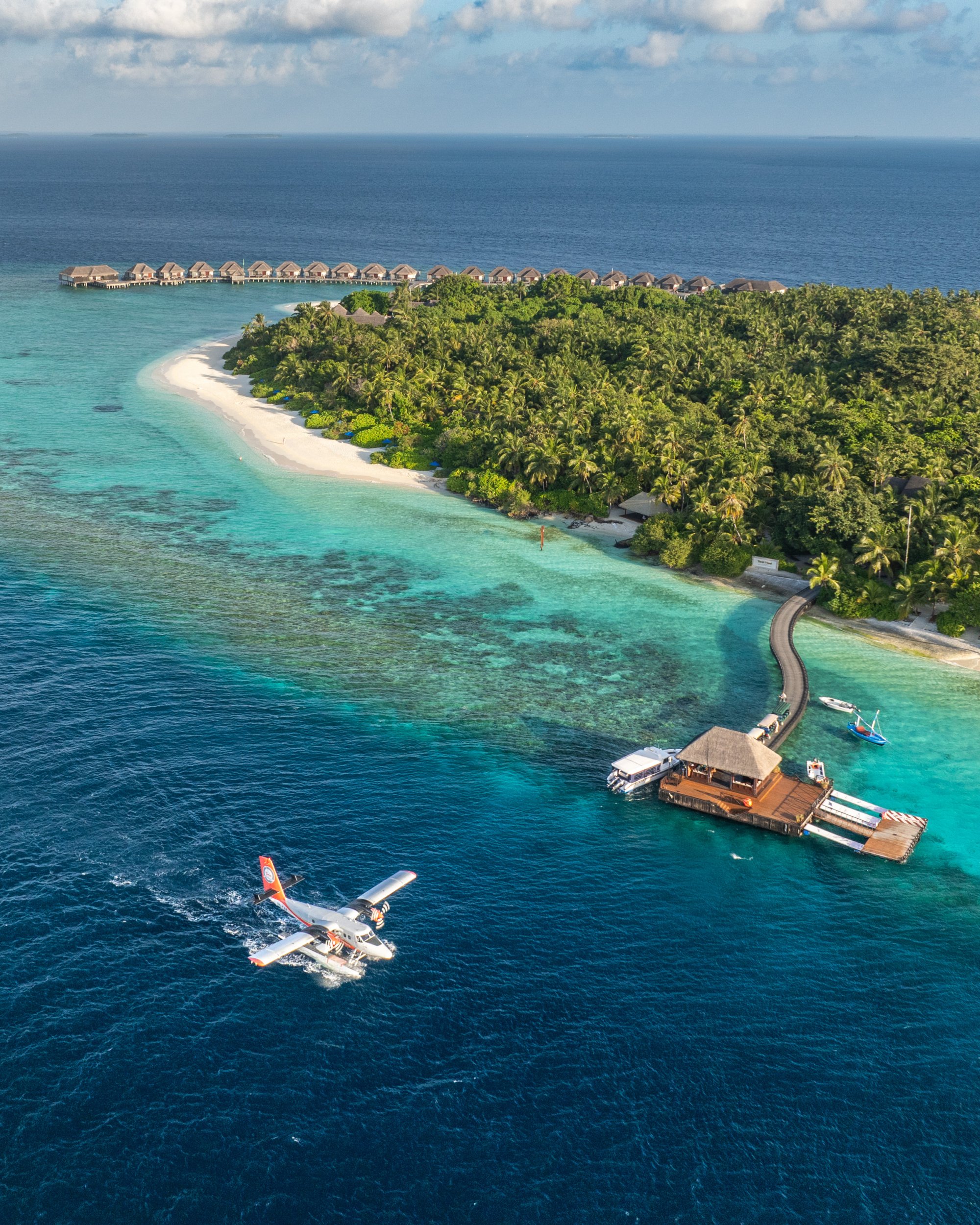 Let hydroplánom na ostrovný rezort na Maldivách je jedinečný zážitok. Hydroplány sú malé lietadlá, ktoré pristávajú a vzlietajú z vodnej hladiny a na Maldivách sú úplne bežným dopravným prostriedkom. Lietajú iba za denného svetla a v nižšej výške než štandardné lietadla. Môžete si užívať nezabudnuteľné výhľady na tyrkysovú vodnú hladinu a zelené ostrovy olemované bielymi piesočnými plážami najrôznejších tvarov pod Vami. Počas letu môžete fotiť aj natáčať.