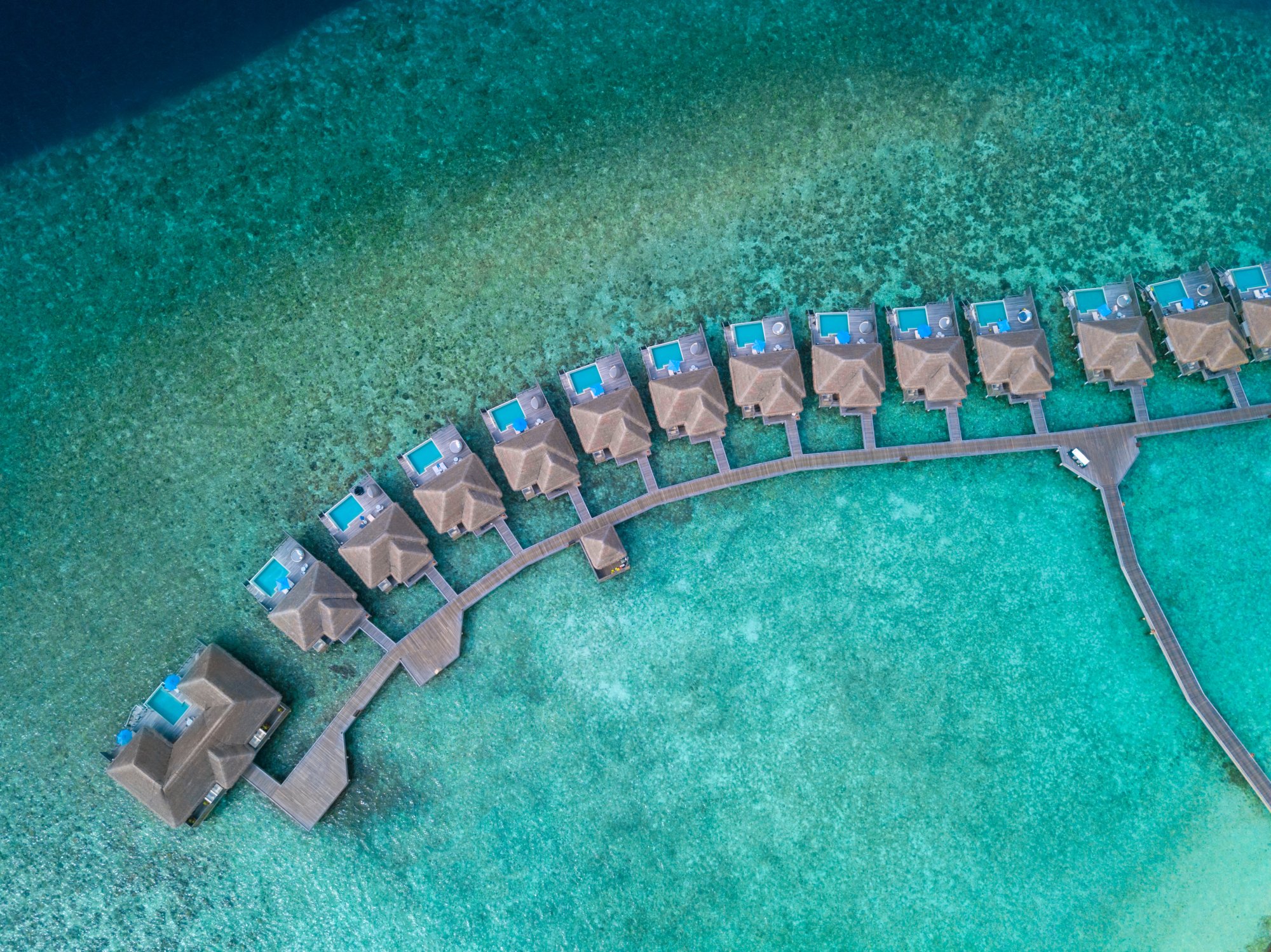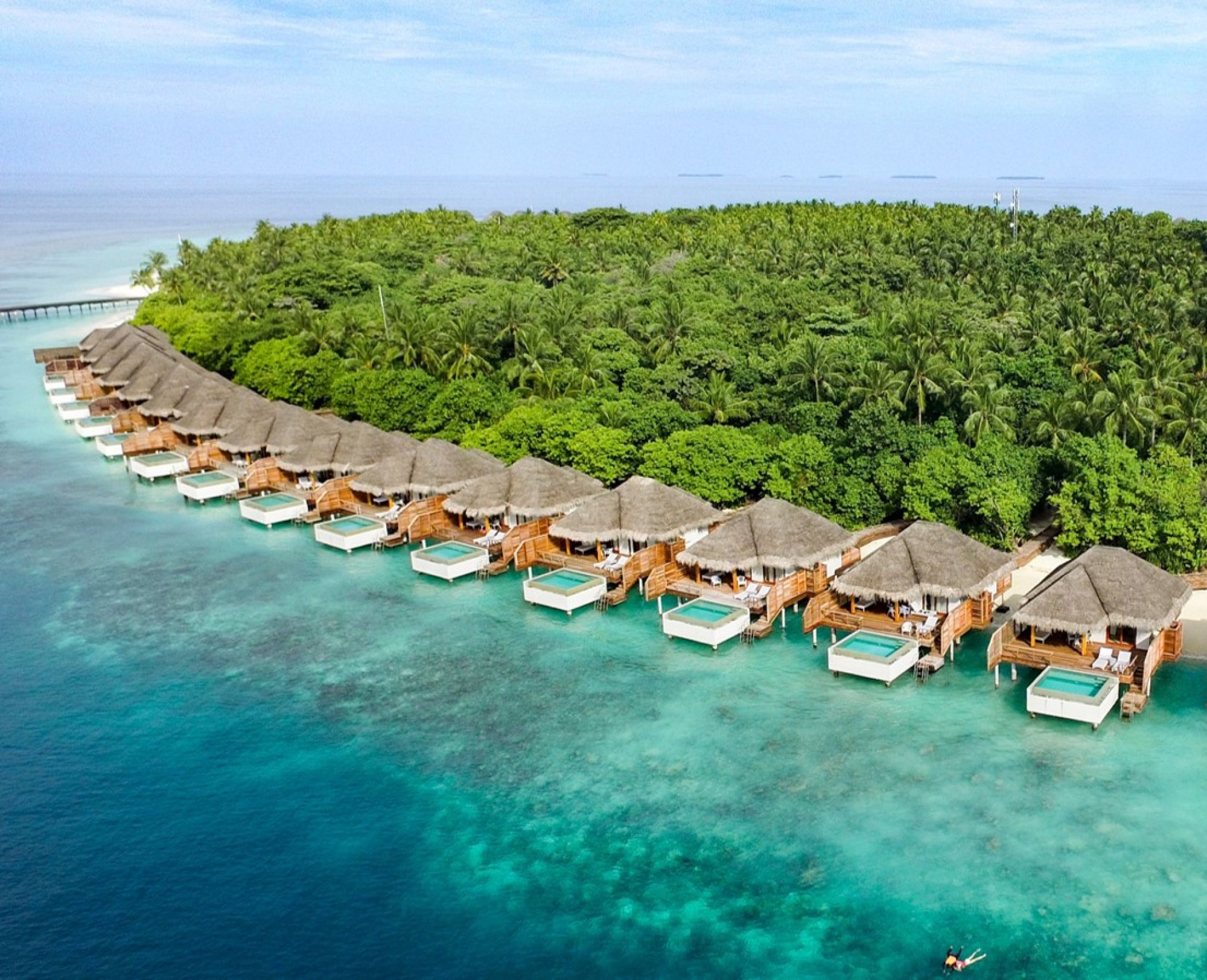 Tieto očarujúce vily, zasadené do pokojnej severozápadnej časti ostrova, vás zavedú do sveta tropického luxusu a úplného súkromia. Vydajte sa na romantickú prechádzku po drevenom móle nad tyrkysovým morom, a objavte slamené vilky s dych vyrážajúcim výhľadom na nekonečný Indický oceán. Každá vila v thajskom štýle s priestrannými oknami a dverami ponúka dokonalé prepojenie vnútorného a vonkajšieho priestoru – s pohodlnými zónami na posedenie, veľkou vaňou a terasou, odkiaľ sa môžete priamo ponoriť do krištáľových vôd pri koralovom útese. Je to ideálne útočisko pre tých, ktorí hľadajú harmóniu, krásu a autentický zážitok z tropickej dovolenky.