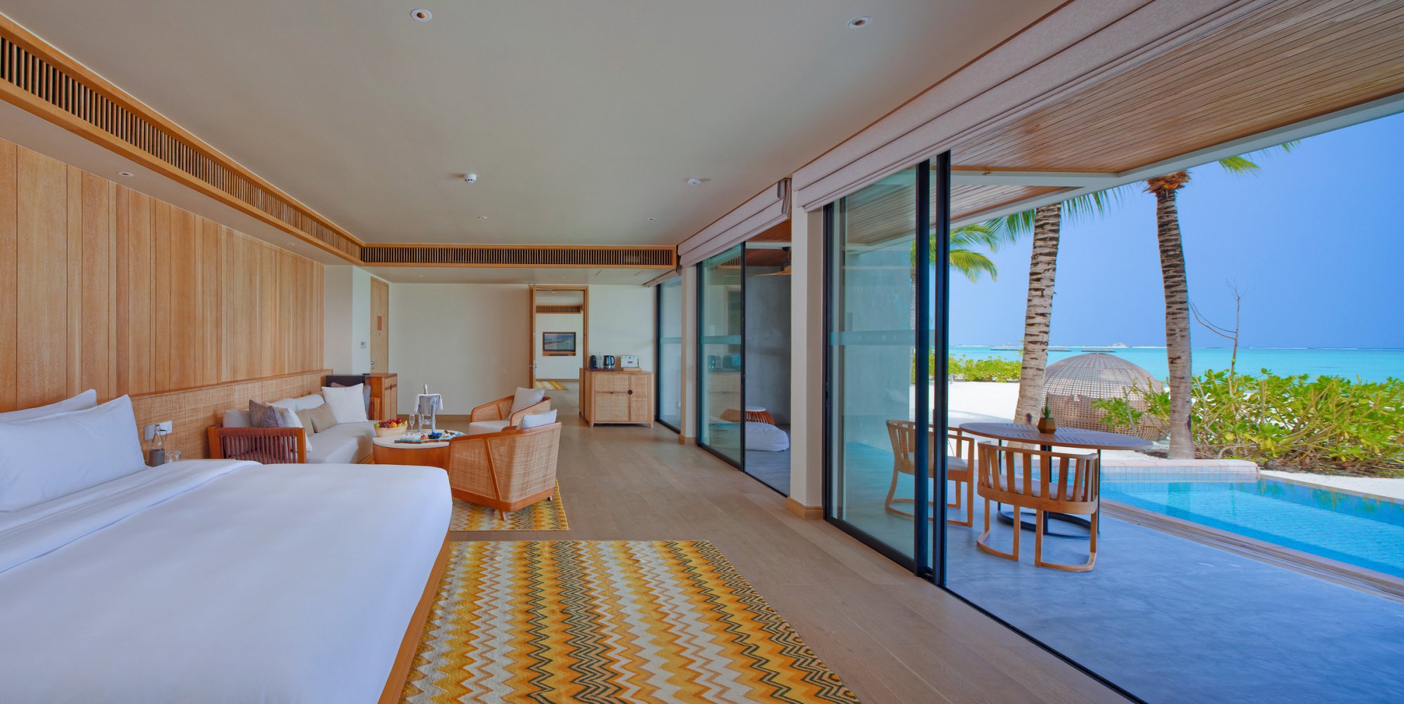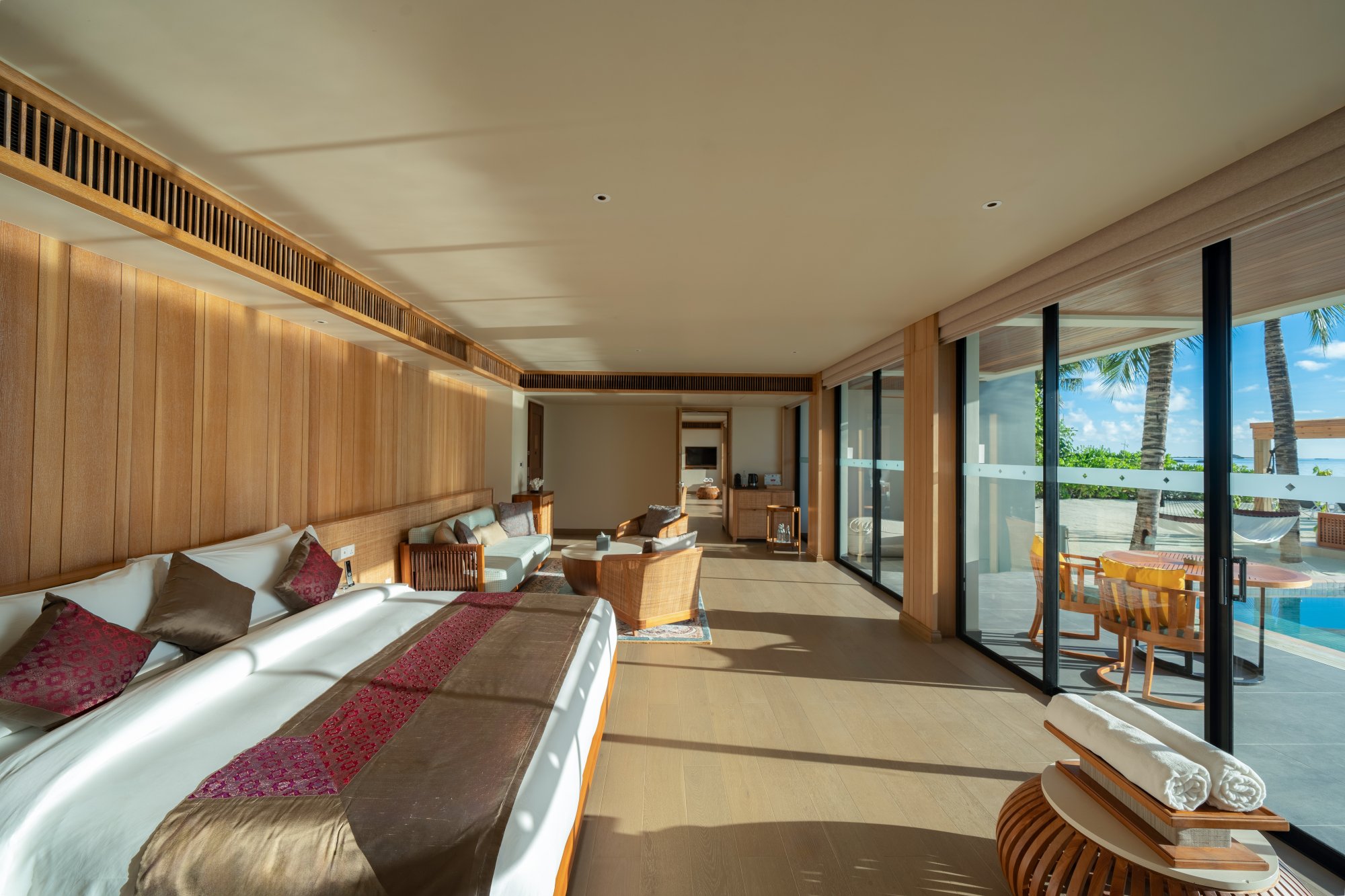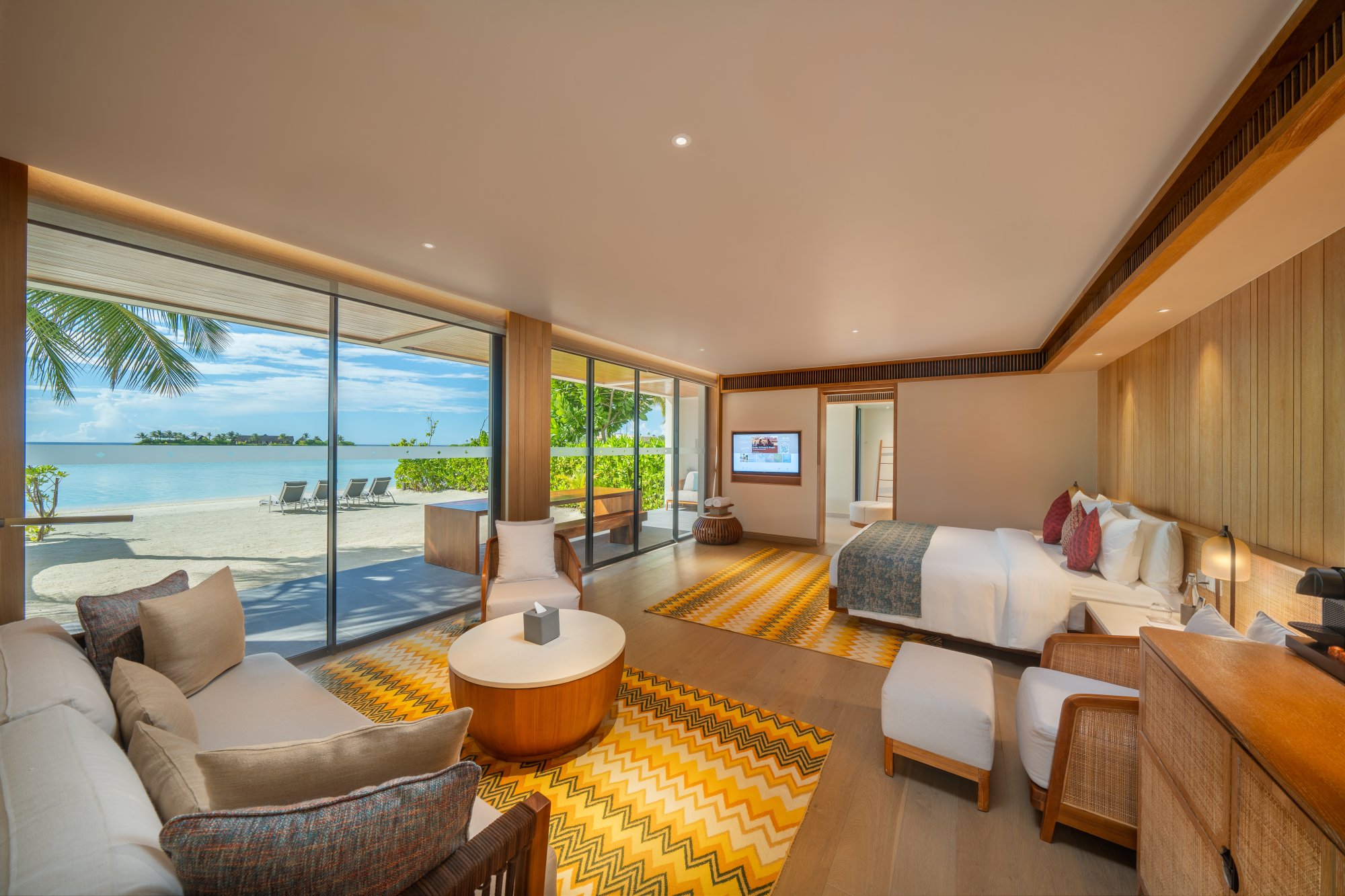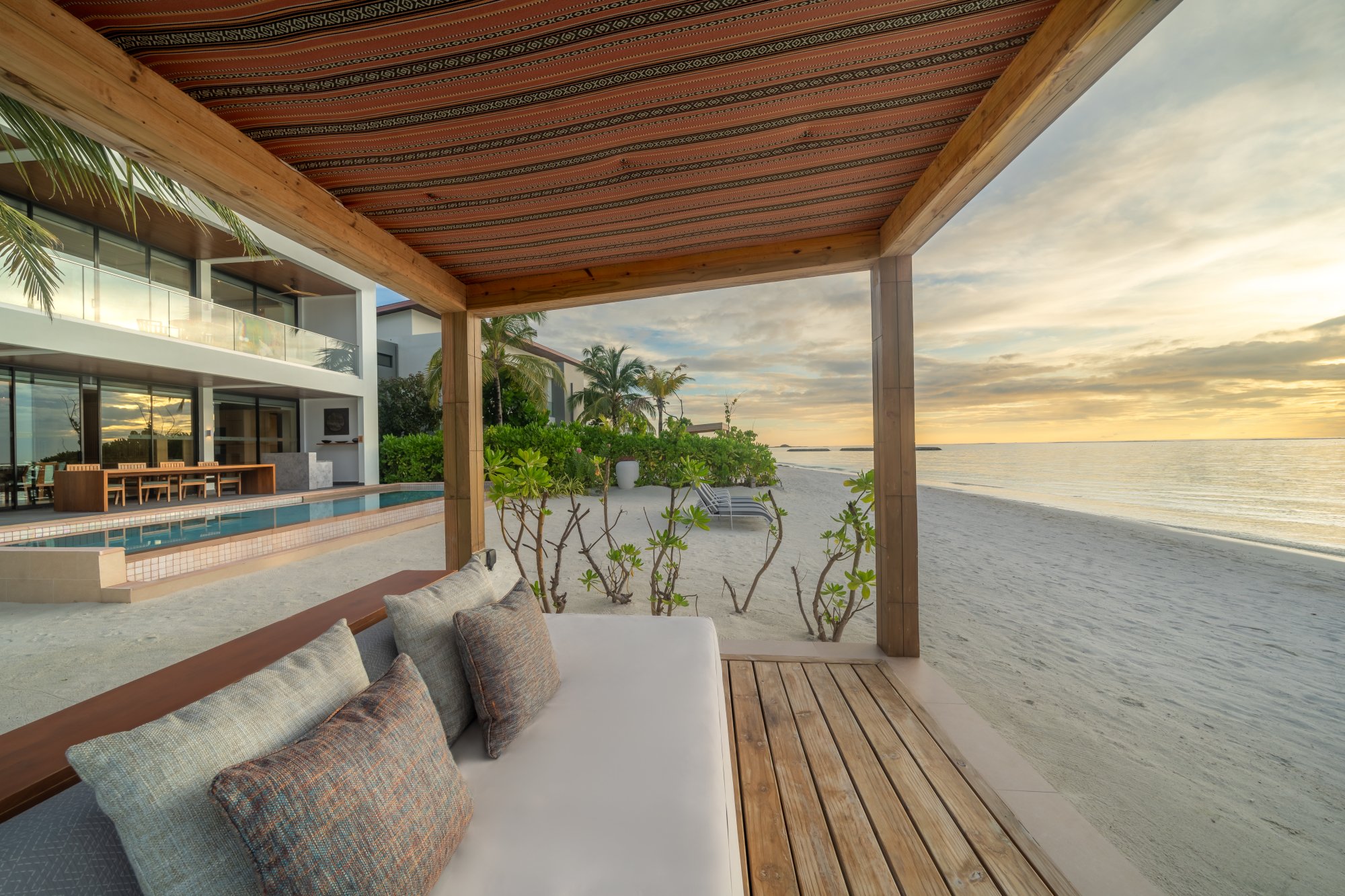 Pre rodiny s deťmi či väčšie skupiny je k dispozícii táto priestranná rezidencia (400 m2), ktorá stojí na pláži a pýši sa nádherným výhľadom na západ slnka. Vnútri nájdete dve spálne s obývacím priestorom a vlastnou kúpeľňou. Každá spálňa je prepojená s veľkou vonkajšou terasou ako stvorenou pre spoločné chvíle s vašimi najbližšími. Okrem toho sa môžete tešiť na súkromný bazén s krištáľovo čistou vodou – ideálne miesto na relaxáciu aj osvieženie počas horúceho dňa. Vďaka exkluzívnemu vybaveniu a službám vás čaká skutočne nezabudnuteľný pobyt. Maximálna kapacita: 6 dospelých alebo 4 dospelí a 2 deti.
