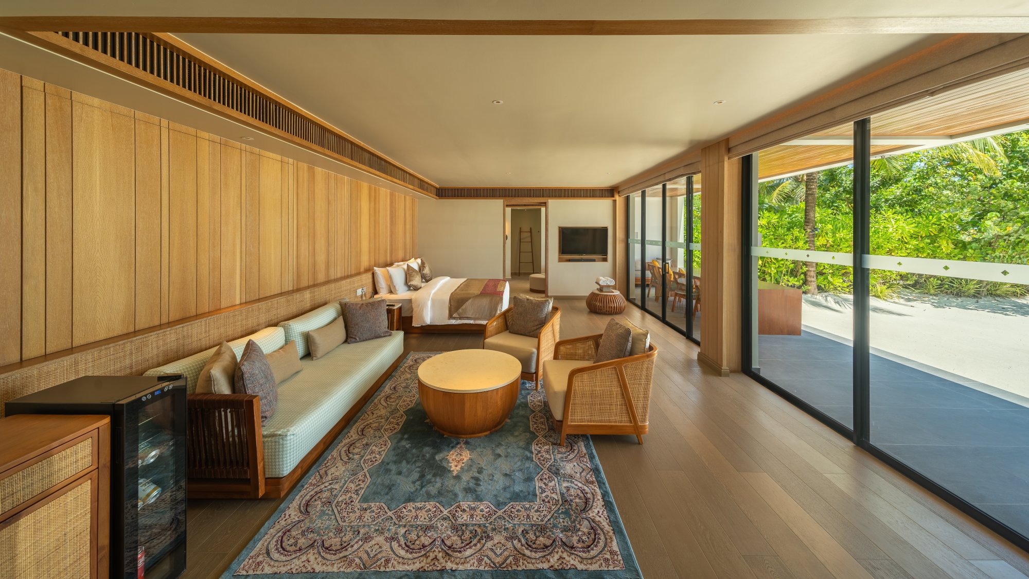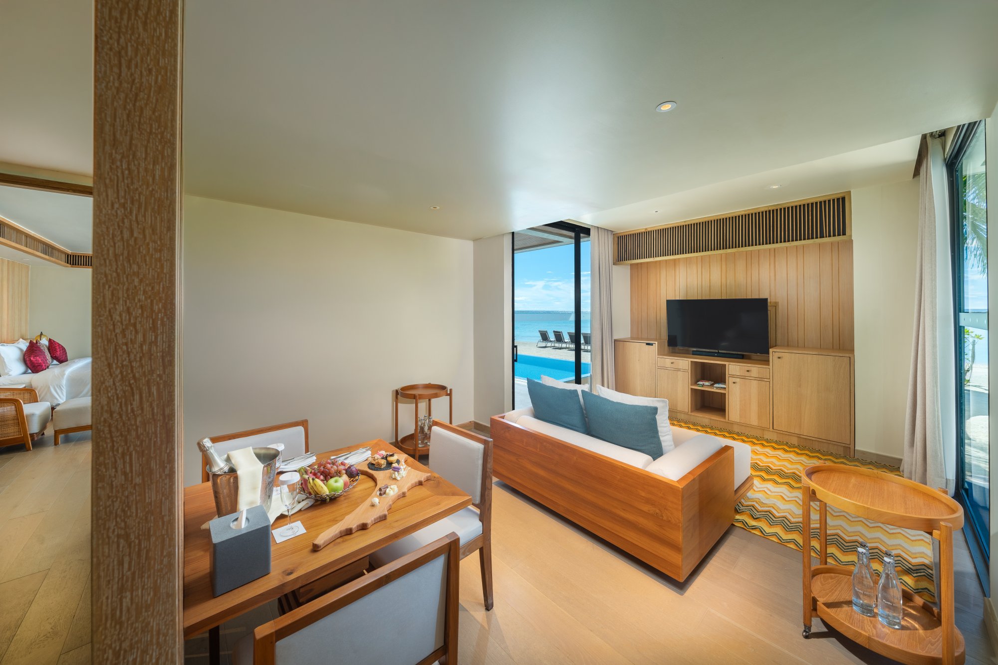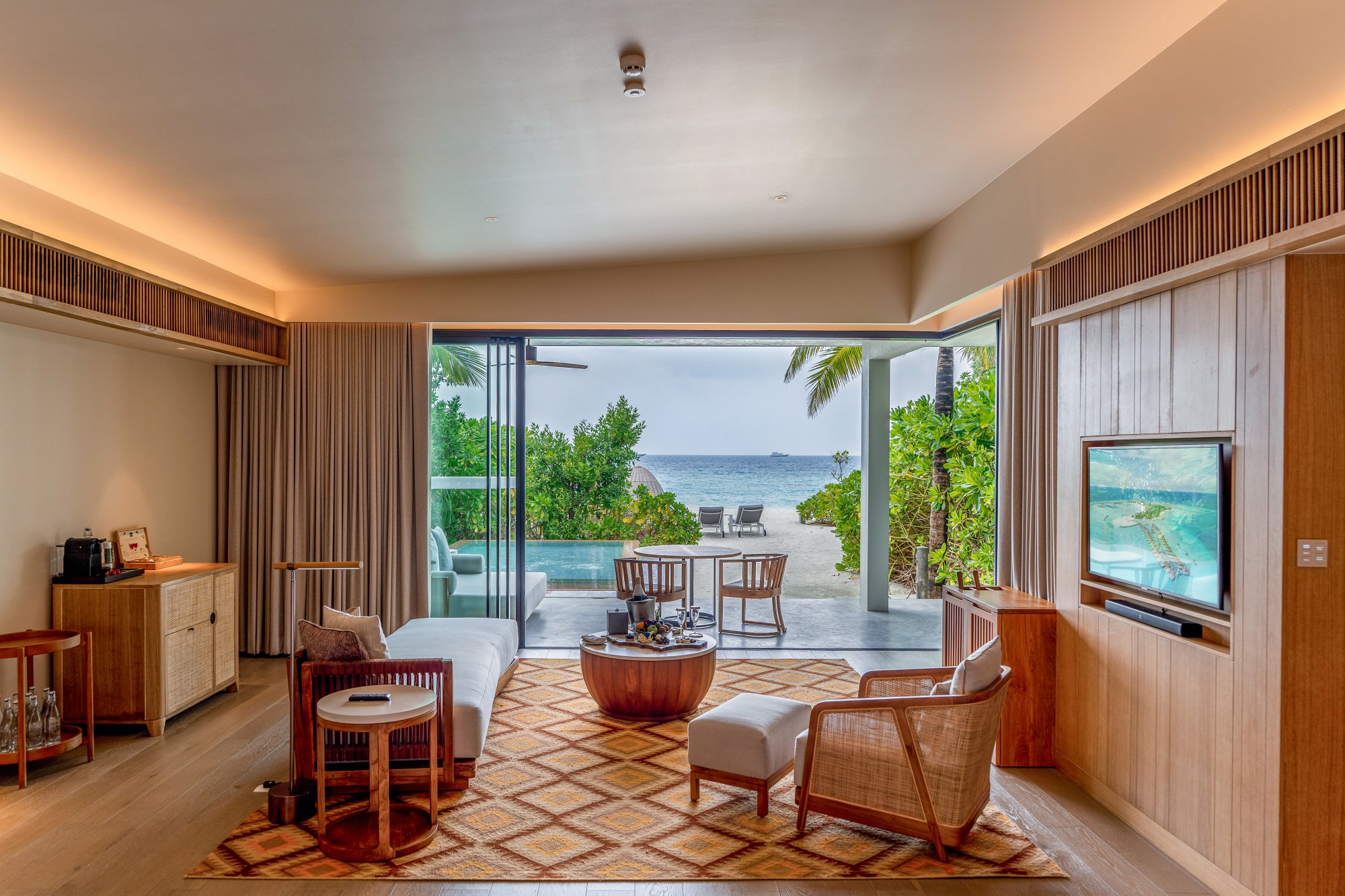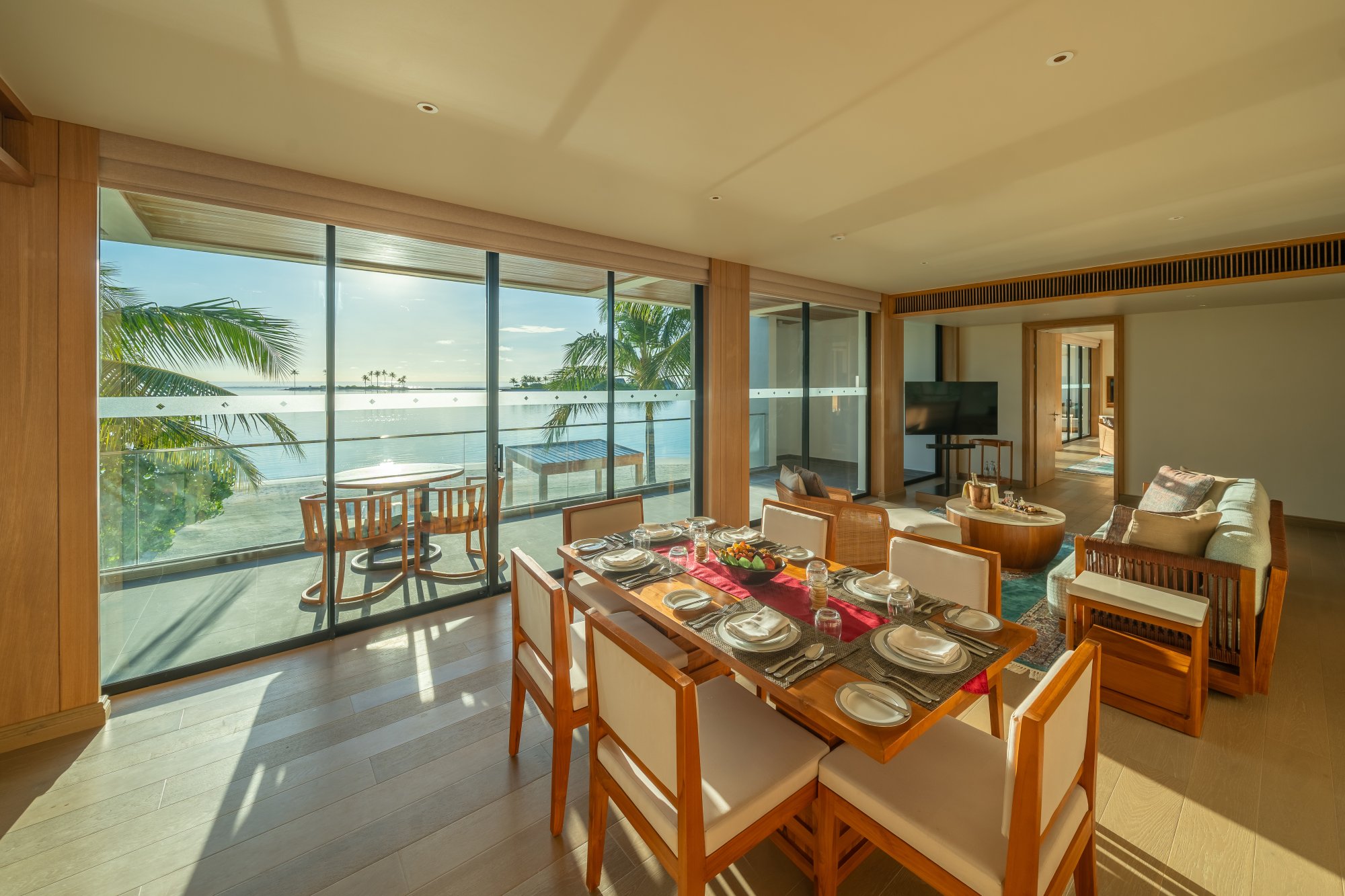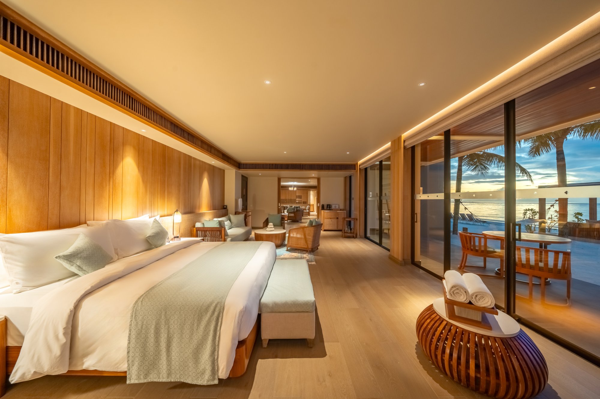 Pre rodiny s deťmi či väčšie skupiny je k dispozícii táto priestranná rezidencia (400 m2), ktorá stojí na pláži a pýši sa nádherným výhľadom na západ slnka. Vnútri nájdete dve spálne s obývacím priestorom a vlastnou kúpeľňou. Každá spálňa je prepojená s veľkou vonkajšou terasou ako stvorenou pre spoločné chvíle s vašimi najbližšími. Okrem toho sa môžete tešiť na súkromný bazén s krištáľovo čistou vodou – ideálne miesto na relaxáciu aj osvieženie počas horúceho dňa. Vďaka exkluzívnemu vybaveniu a službám vás čaká skutočne nezabudnuteľný pobyt. Maximálna kapacita: 6 dospelých alebo 4 dospelí a 2 deti.