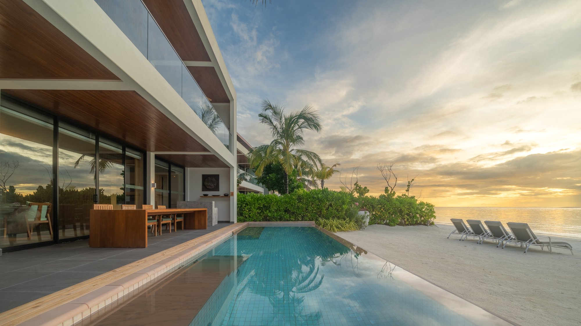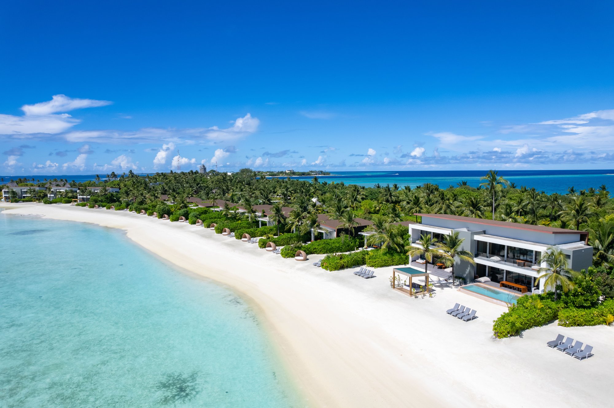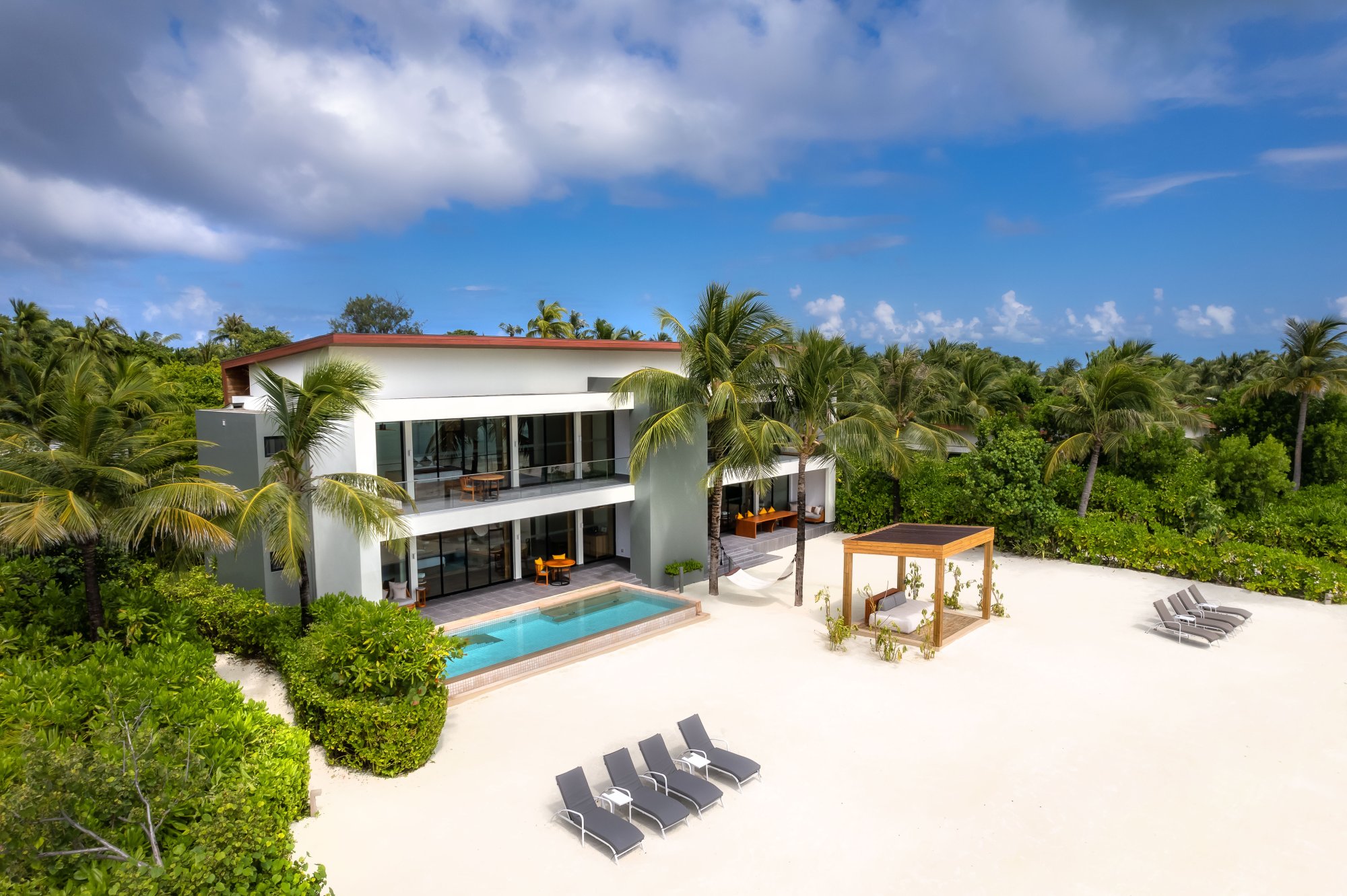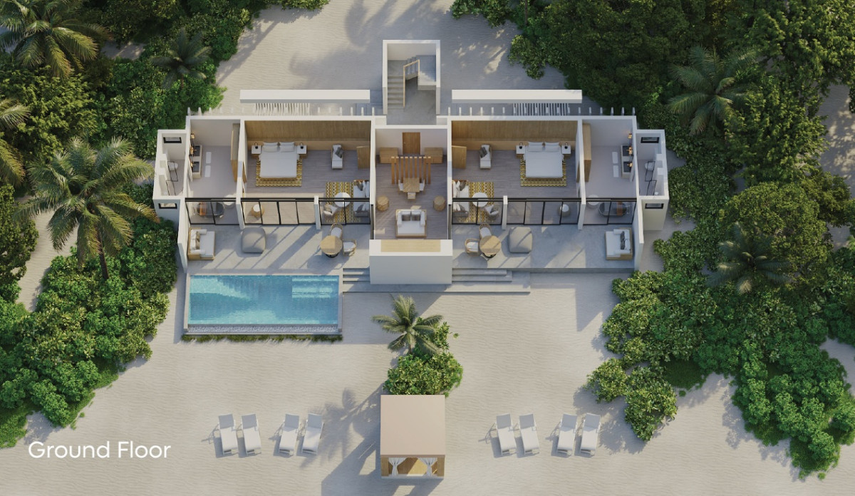 Pre tých, ktorí potrebujú viac priestoru a pohodlia, je k dispozícii táto rezidencia (664 m2), umiestnená priamo na nedotknutej pláži s jemným bielym pieskom. Vnútri nájdete štyri luxusné spálne s vlastnou kúpeľňou, ktoré sú prepojené s priestrannou terasou – ideálne miesto na trávenie spoločných chvíľ s priateľmi a rodinou. Vila sa navyše pýši úchvatným výhľadom na oceán a súkromným bazénom s krištáľovo čistou vodou. Uvelebte sa v pohodlnom opaľovacom lehátku alebo vo vlastnom plážovom prístrešku a vychutnajte si ničím nerušený odpočinok. Maximálna kapacita: 12 dospelých alebo 8 dospelých a 4 deti.