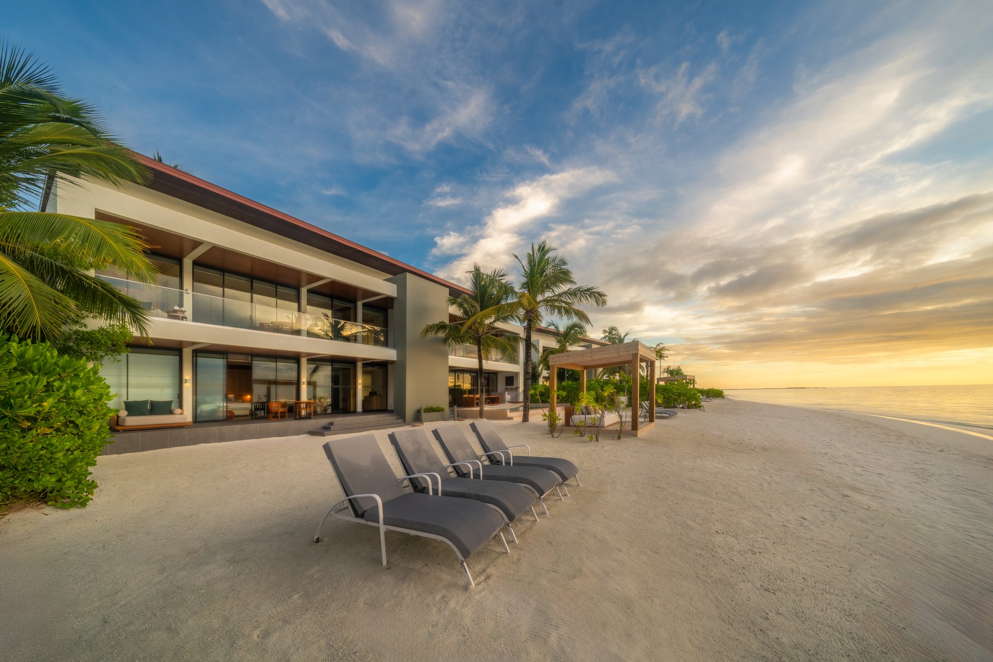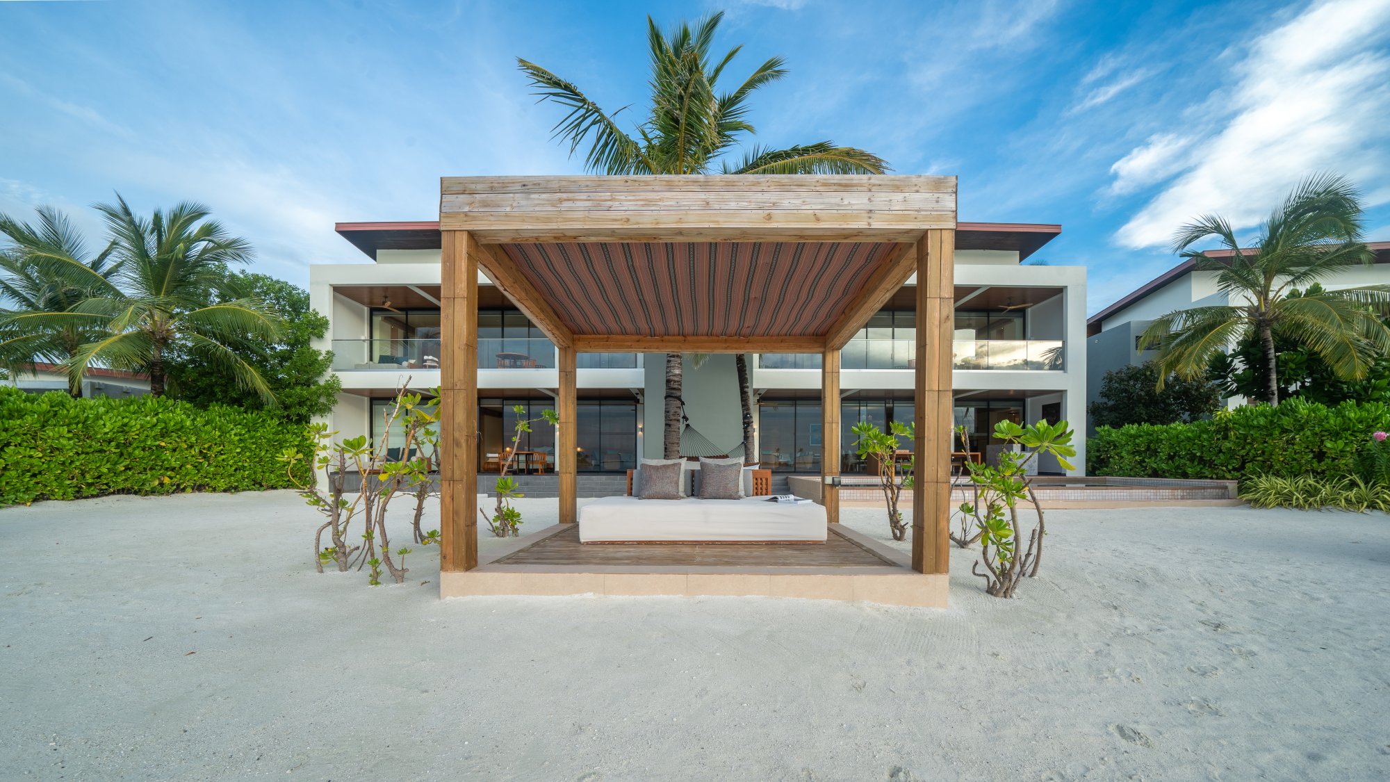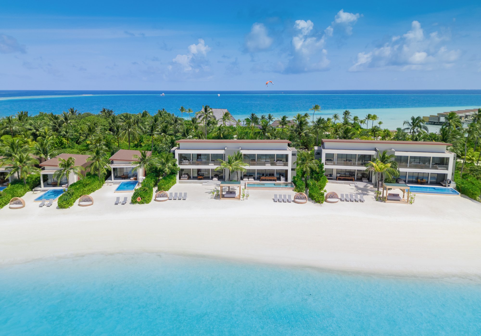 Pre tých, ktorí potrebujú viac priestoru a pohodlia, je k dispozícii táto rezidencia (664 m2), umiestnená priamo na nedotknutej pláži s jemným bielym pieskom. Vnútri nájdete štyri luxusné spálne s vlastnou kúpeľňou, ktoré sú prepojené s priestrannou terasou – ideálne miesto na trávenie spoločných chvíľ s priateľmi a rodinou. Vila sa navyše pýši úchvatným výhľadom na oceán a súkromným bazénom s krištáľovo čistou vodou. Uvelebte sa v pohodlnom opaľovacom lehátku alebo vo vlastnom plážovom prístrešku a vychutnajte si ničím nerušený odpočinok. Maximálna kapacita: 12 dospelých alebo 8 dospelých a 4 deti.