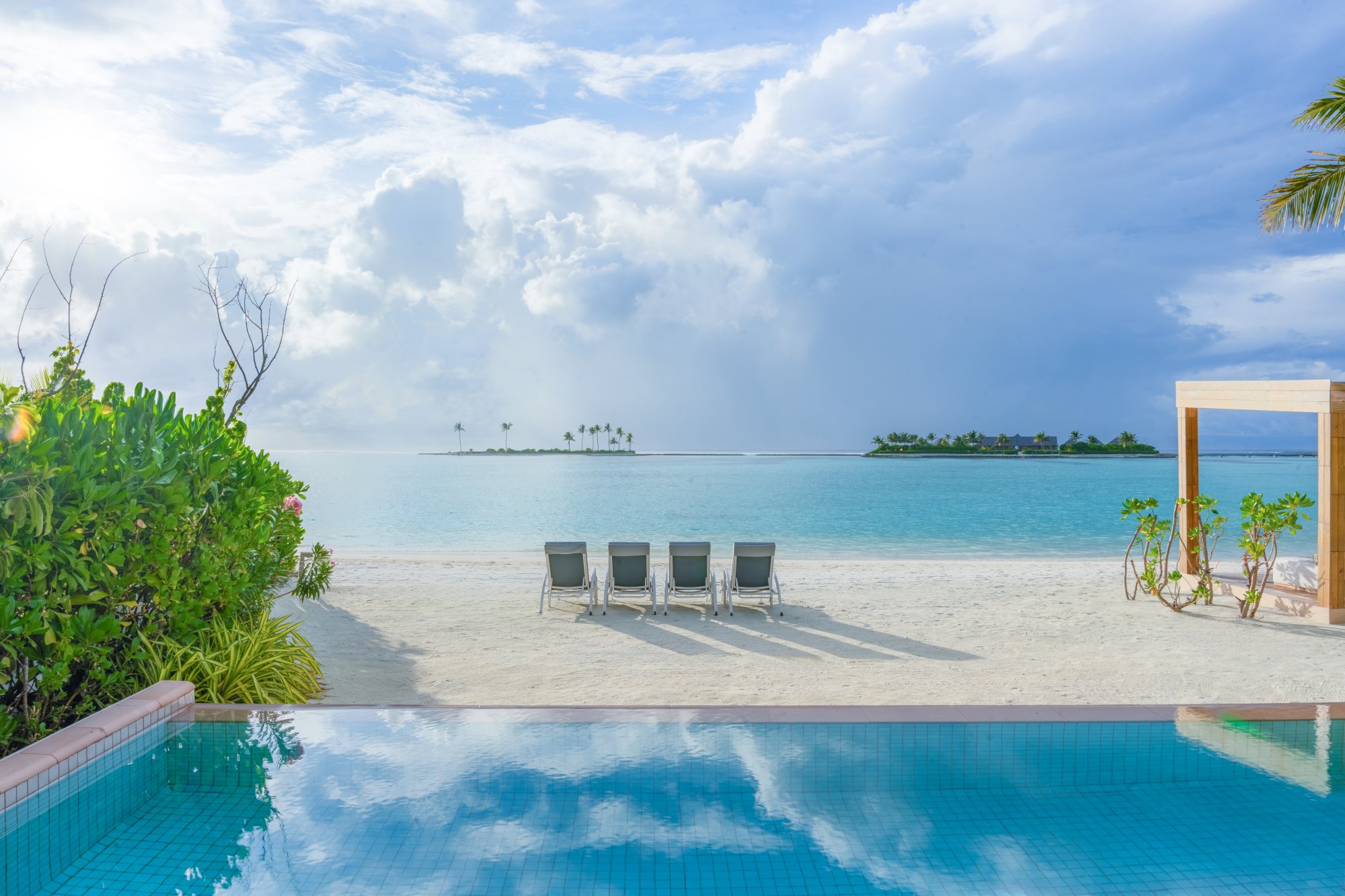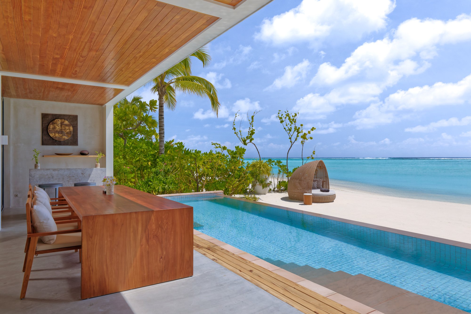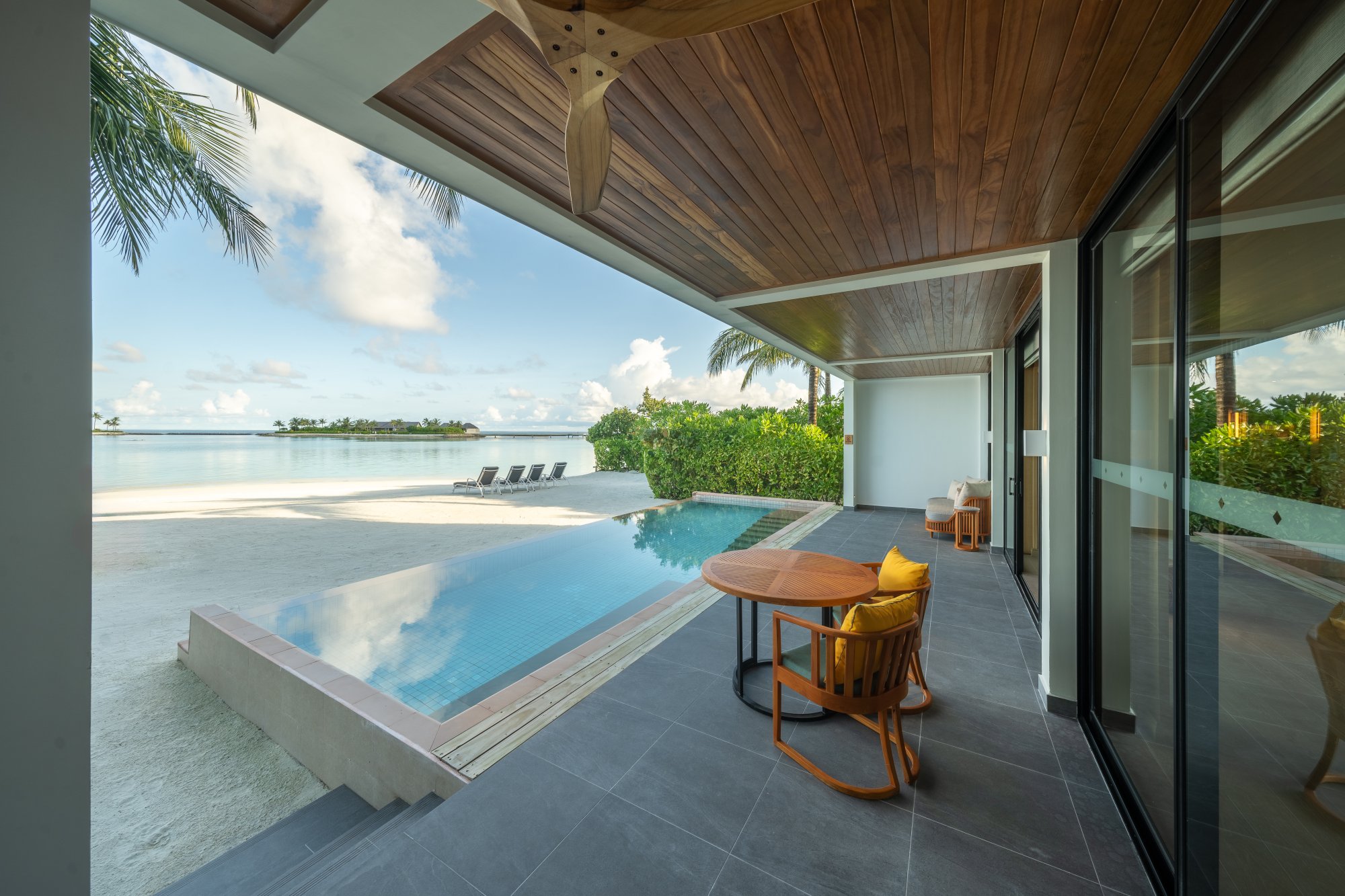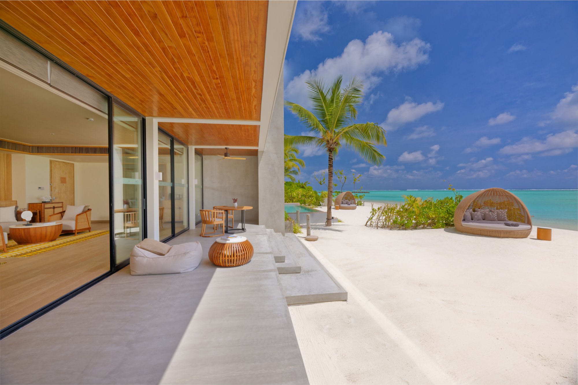 Pre tých, ktorí potrebujú viac priestoru a pohodlia, je k dispozícii táto rezidencia (664 m2), umiestnená priamo na nedotknutej pláži s jemným bielym pieskom. Vnútri nájdete štyri luxusné spálne s vlastnou kúpeľňou, ktoré sú prepojené s priestrannou terasou – ideálne miesto na trávenie spoločných chvíľ s priateľmi a rodinou. Vila sa navyše pýši úchvatným výhľadom na oceán a súkromným bazénom s krištáľovo čistou vodou. Uvelebte sa v pohodlnom opaľovacom lehátku alebo vo vlastnom plážovom prístrešku a vychutnajte si ničím nerušený odpočinok. Maximálna kapacita: 12 dospelých alebo 8 dospelých a 4 deti.