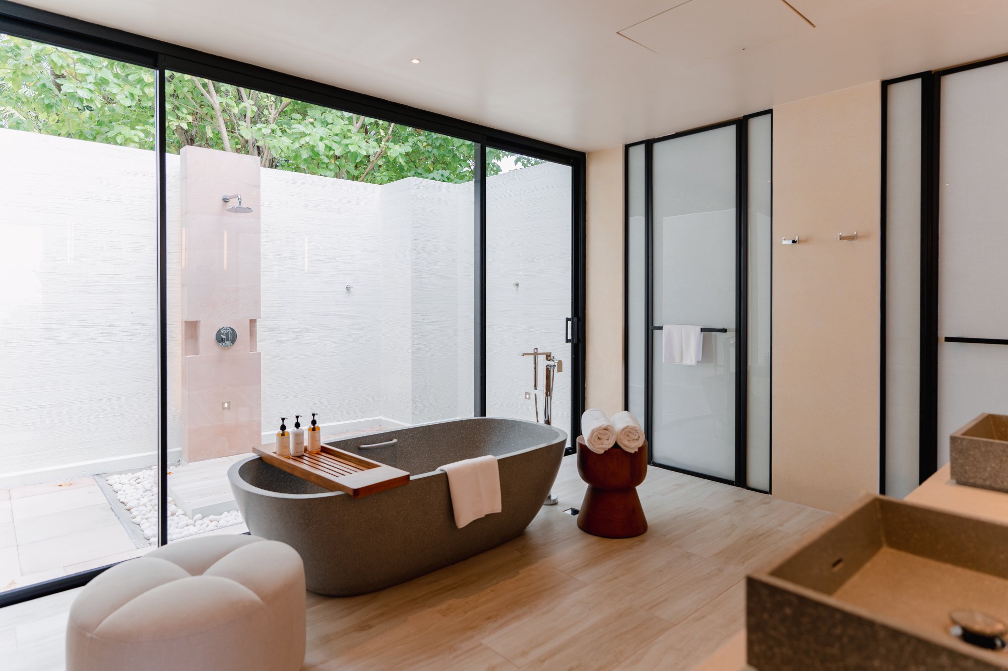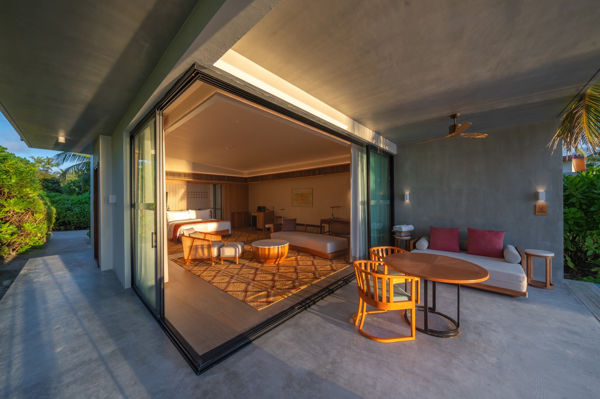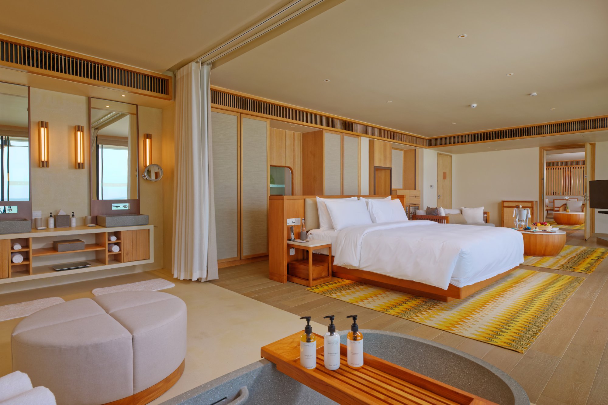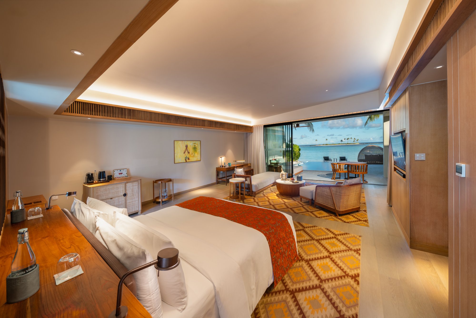 Súčasťou vybavenia všetkých víl a rezidencií je: kúpeľňa s dažďovou sprchou a vaňou, kúpeľňové produkty, župany, papuče, súkromná terasa s lehátkami alebo plážovým altánkom, pracovný stôl s dobíjacími stanicami, bezplatné Wi-Fi pripojenie, trezor, televízia, mobilné aplikácie pre smart zariadenia, plážová taška, služby komorníka, kávovar na espresso, príslušenstvo na prípravu čaju a kávy, minibar, služba rozostelania postele, náladové osvetlenie, univerzálne zásuvky.