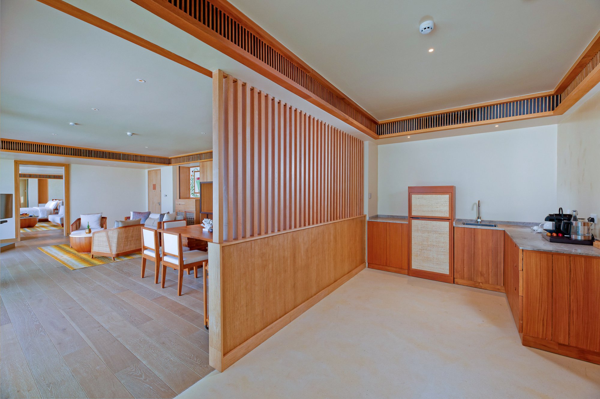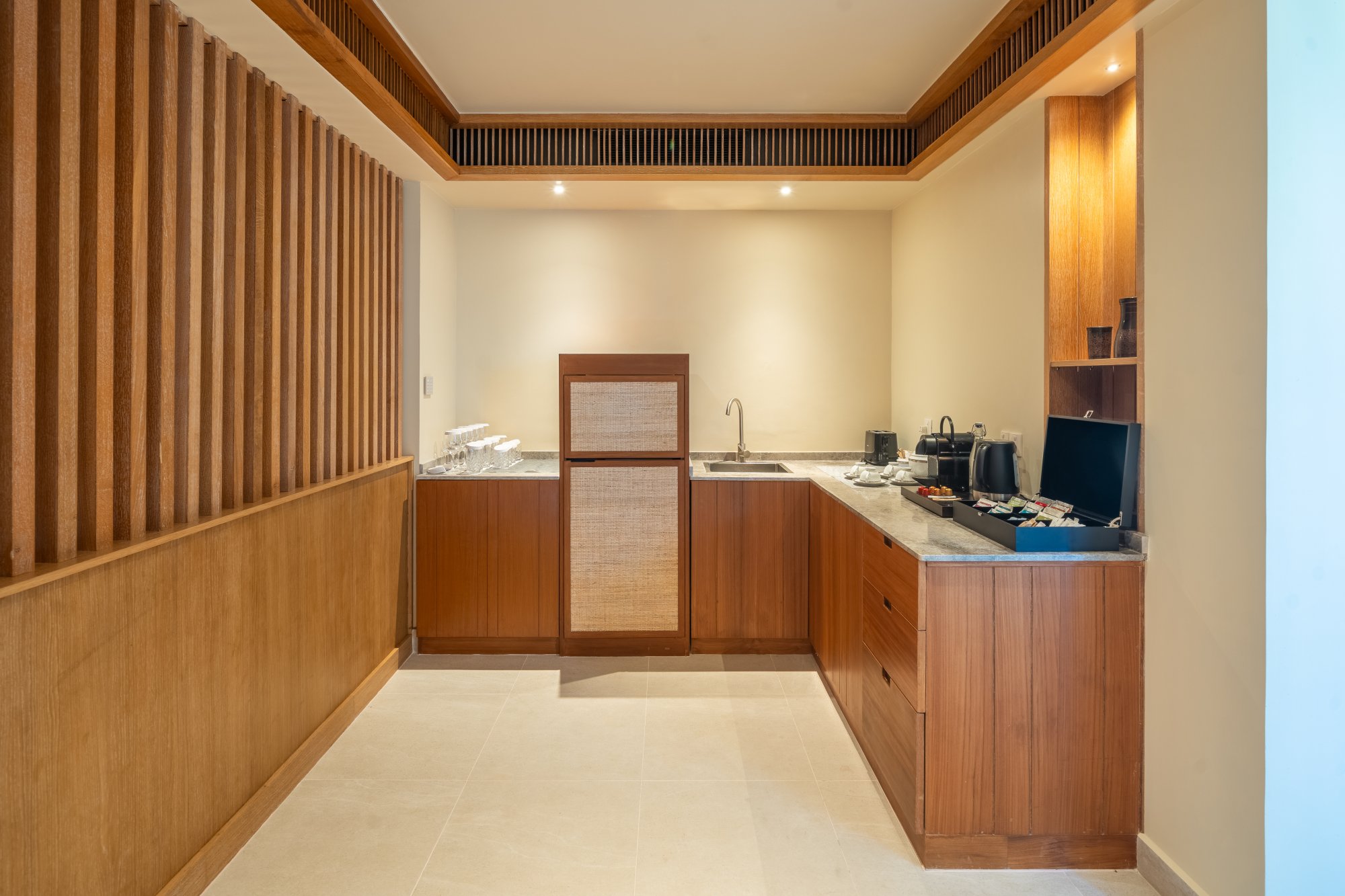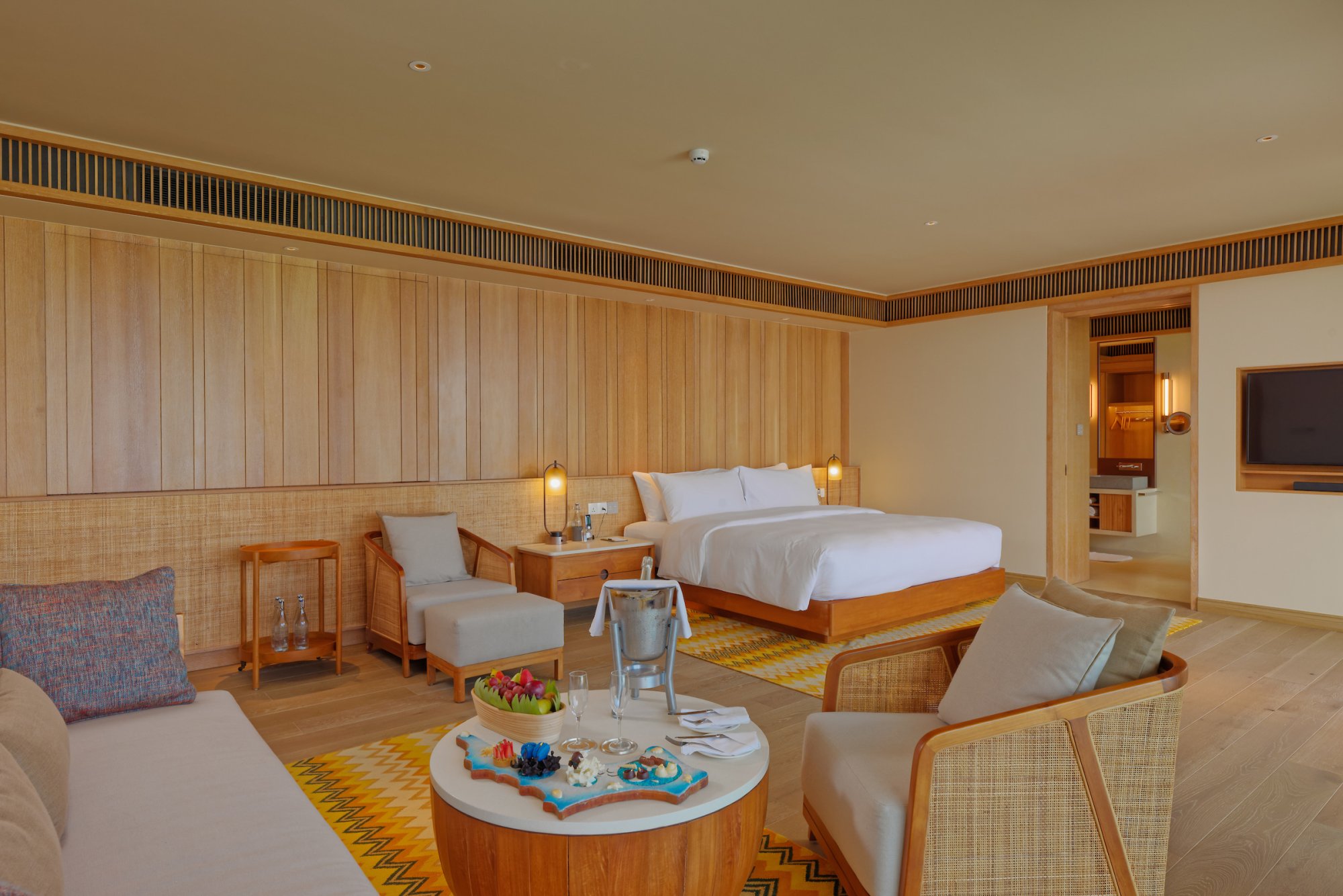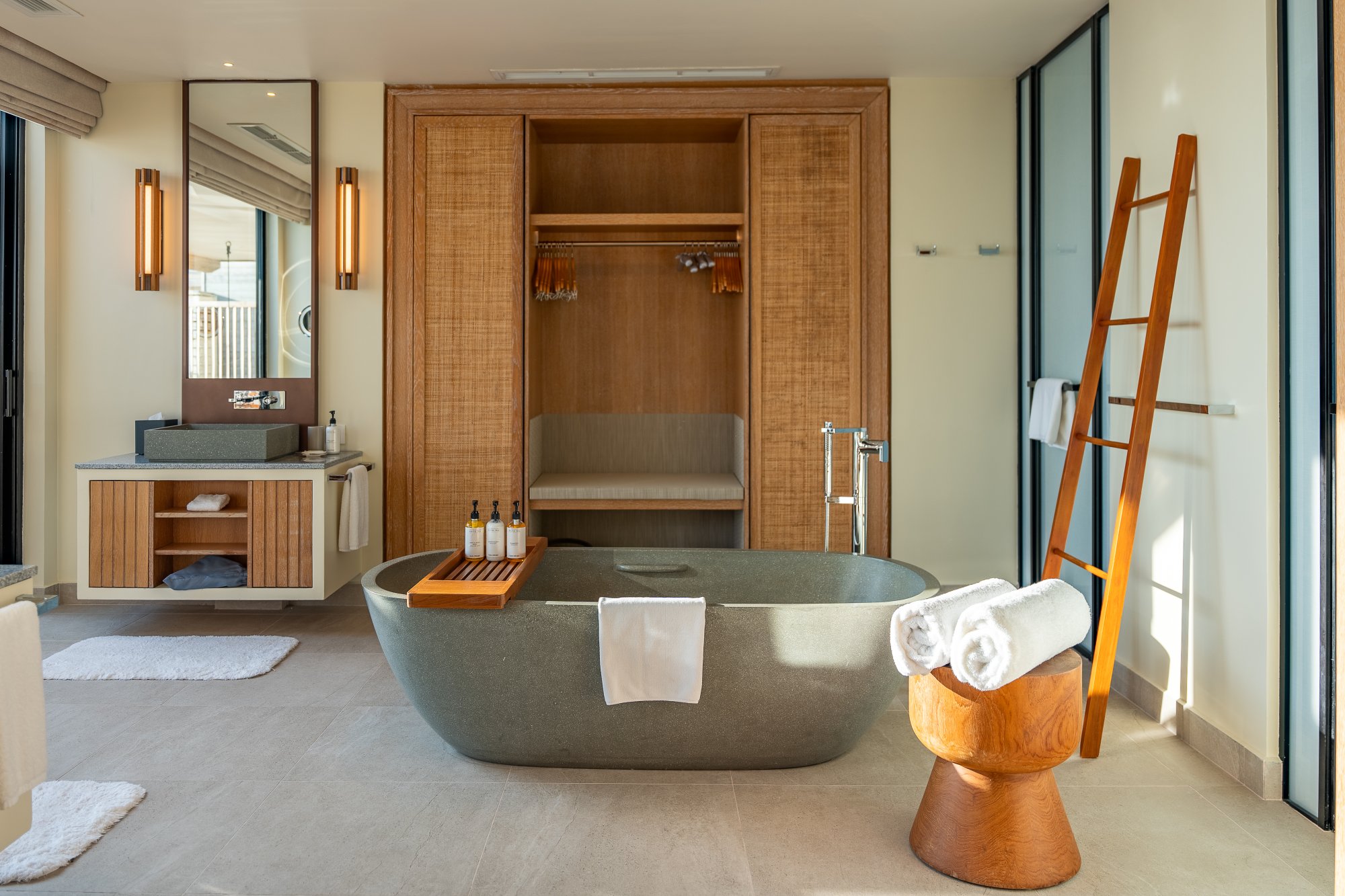 Súčasťou vybavenia všetkých víl a rezidencií je: kúpeľňa s dažďovou sprchou a vaňou, kúpeľňové produkty, župany, papuče, súkromná terasa s lehátkami alebo plážovým altánkom, pracovný stôl s dobíjacími stanicami, bezplatné Wi-Fi pripojenie, trezor, televízia, mobilné aplikácie pre smart zariadenia, plážová taška, služby komorníka, kávovar na espresso, príslušenstvo na prípravu čaju a kávy, minibar, služba rozostelania postele, náladové osvetlenie, univerzálne zásuvky.