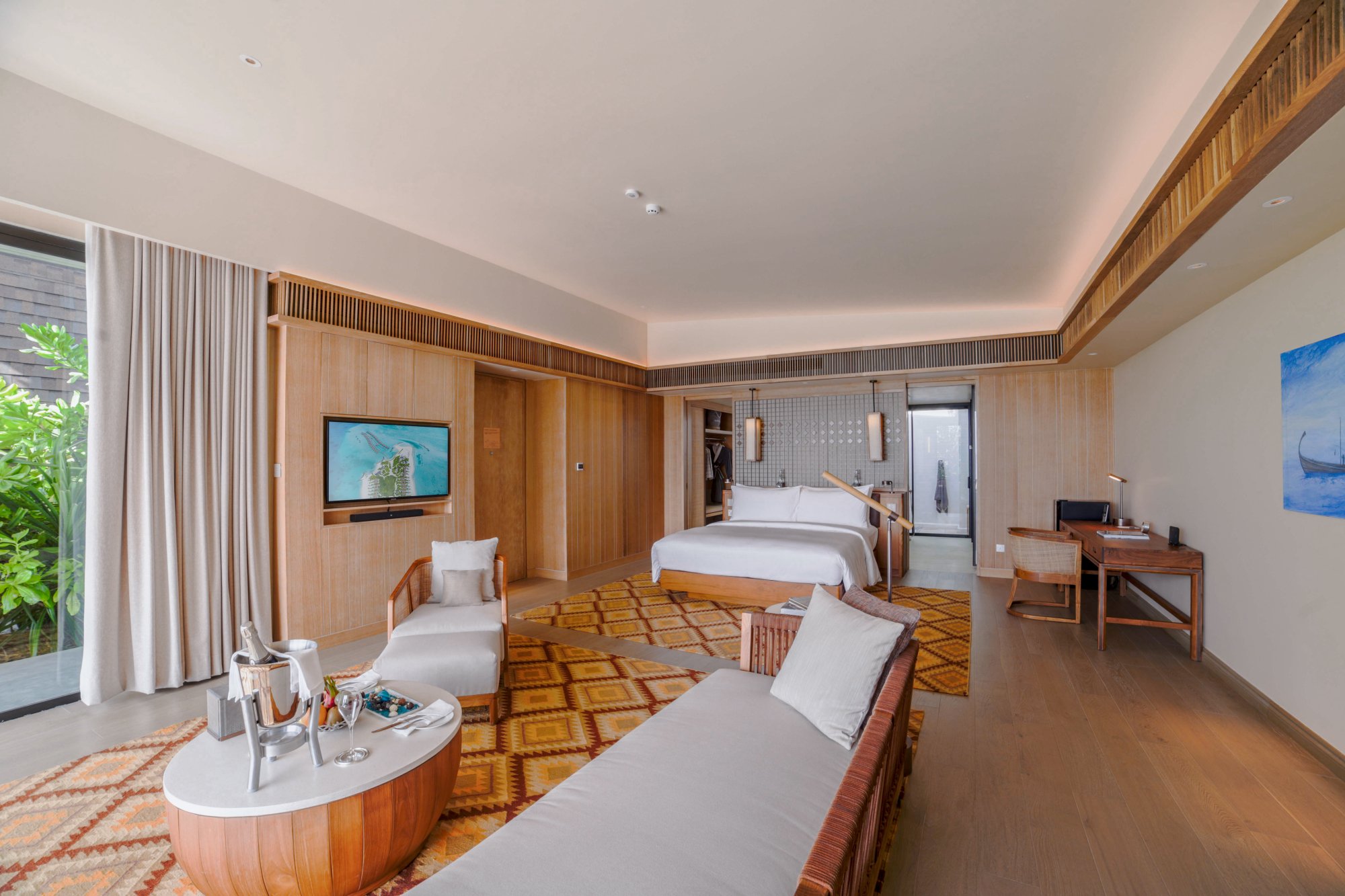 Posuňte svoj pobyt na Maldivách na vyššiu úroveň a ubytujte sa v tejto rozľahlej vile (664 m2) so štyrmi spálňami, ktorá predstavuje vrchol luxusu. Elegantný interiér je zariadený upokojujúcimi neutrálnymi tónmi a prírodnými materiálmi. Každá zo spální disponuje vlastnou kúpeľňou. Osviežte sa v súkromnom vonkajšom bazéne alebo si doprajte relaxačný kúpeľ v exkluzívnej vani pre dvoch. Okrem toho sa môžete tešiť na priestrannú terasu, odkiaľ sa odkrýva dych vyrážajúci výhľad na Indický oceán. Maximálna kapacita: 12 dospelých alebo 8 dospelých a 4 deti.