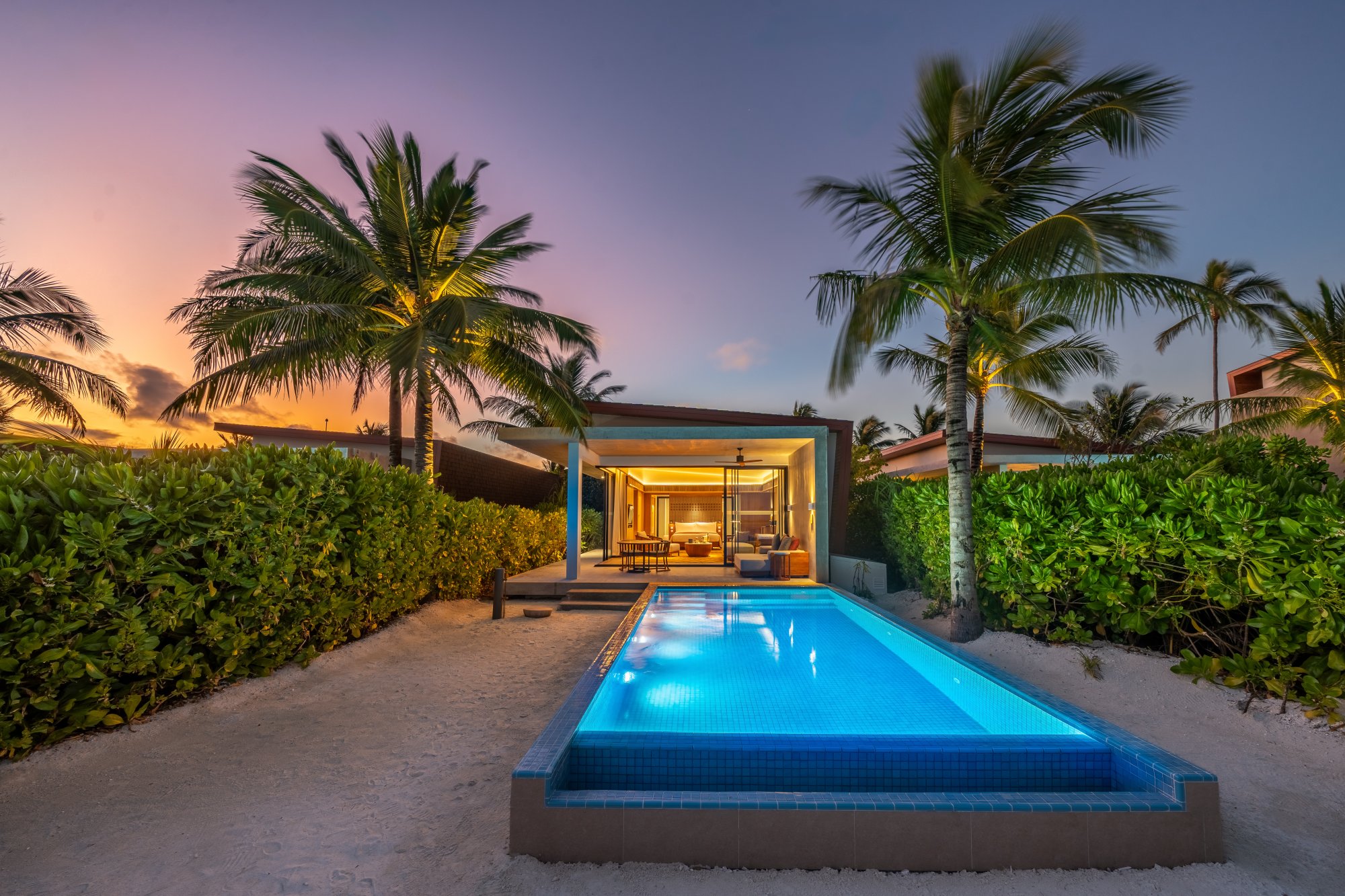 Táto nádherná vila (400 m2) s dvoma spálňami sa nachádza priamo na pláži a ponúka úchvatný výhľad na západ slnka. Každá spálňa disponuje vlastnou kúpeľňou a je prepojená s rozľahlou vonkajšou terasou ako stvorenou pre spoločné chvíle s vašimi najbližšími. Súčasťou vily je súkromný vonkajší bazén, kde môžete relaxovať alebo sa osviežiť v krištáľovo čistej vode. Doprajte si nezabudnuteľný pobyt uprostred tropického raja na Maldivách. Maximálna kapacita: 6 dospelých alebo 4 dospelí a 2 deti.