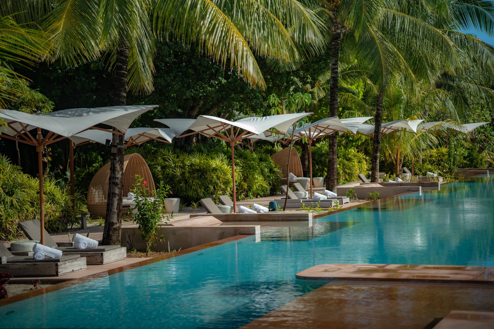 Kuda Villingili Resort Maldives je ako stvorený pre všetkých milovníkov aktívneho odpočinku. Hotel sa pýši najväčším bazénom na Maldivách s dĺžkou 150 m, ktorý je obklopený sviežou zeleňou a pohodlnými prístreškami s lehátkami. Nájdete tu aj vírivku a zónu so šmykľavkami pre rodiny s deťmi. Pre fitness nadšencov je k dispozícii plne vybavená posilňovňa a široká ponuka individuálnych aj skupinových lekcií – bootcamp tréningy, funkčné cvičenia, HIIT lekcie, boxerské tréningy s profesionálnymi trénermi, aqua aerobik a lekcie jogy či pilates.