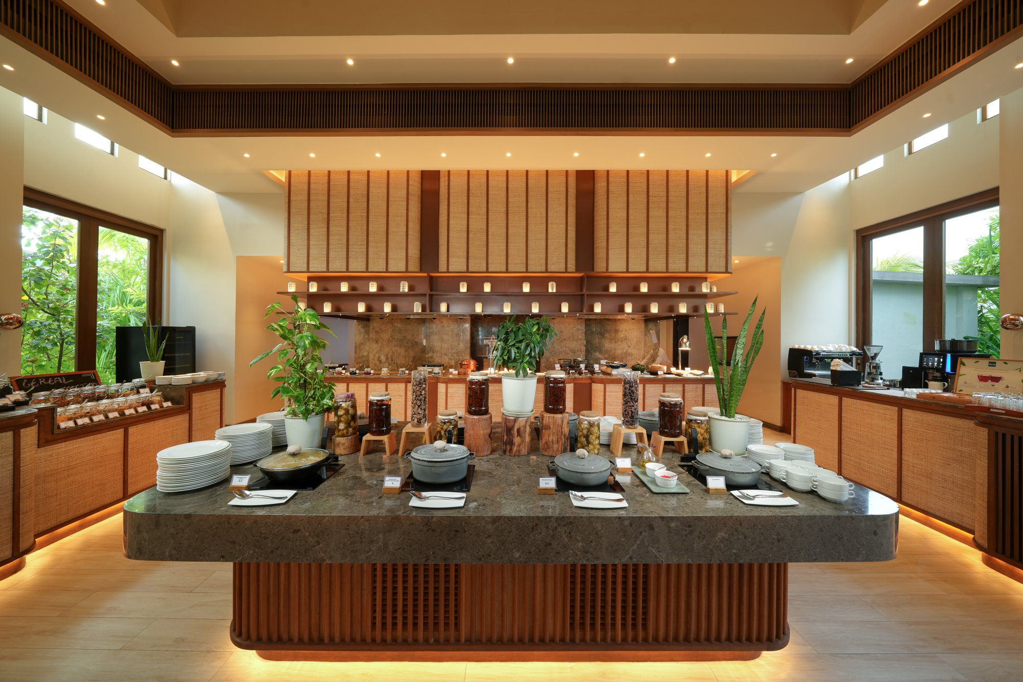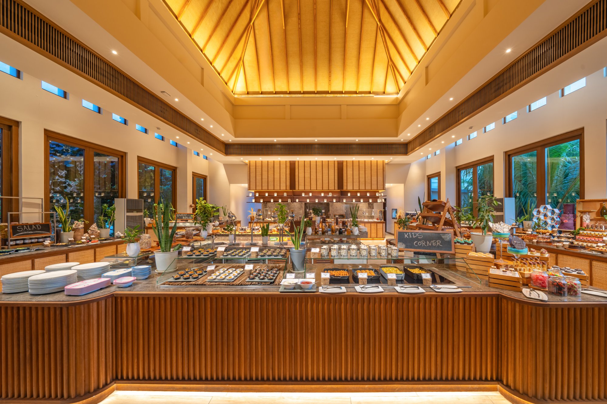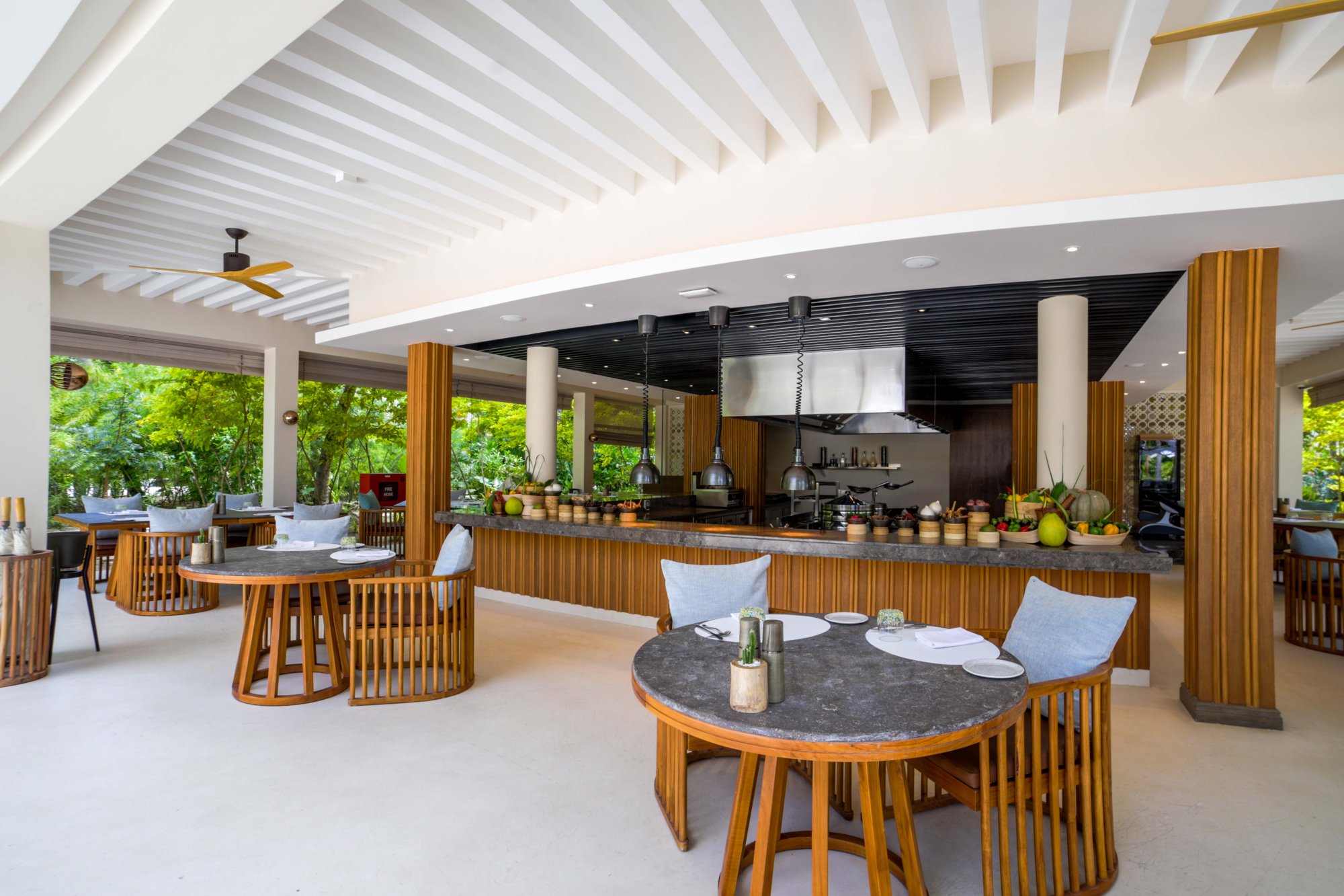 The Restaurant – Hlavná hotelová reštaurácia ponúka tri elegantné jedálenské priestory s osobitou atmosférou. Začnite svoj deň výdatnými a zdravými raňajkami so širokou ponukou údenín, vajec, syrov a jogurtov od lokálnych farmárov, údených rýb, čerstvého pečiva, exotických domácich džemov a vynikajúceho medu s príchuťou miestnych byliniek. K dispozícii sú aj rastlinné, bezlaktózové a bezlepkové varianty. Večer sa tu podávajú tematické večere formou bufetu s tradičným vystúpením „bodu beru“. Môžete si vybrať z troch rôznych kulinárskych konceptov – Fire, Earth a Ocean. Otváracia doba: raňajky 07:00–10:30, večera 18:30–22:00.
