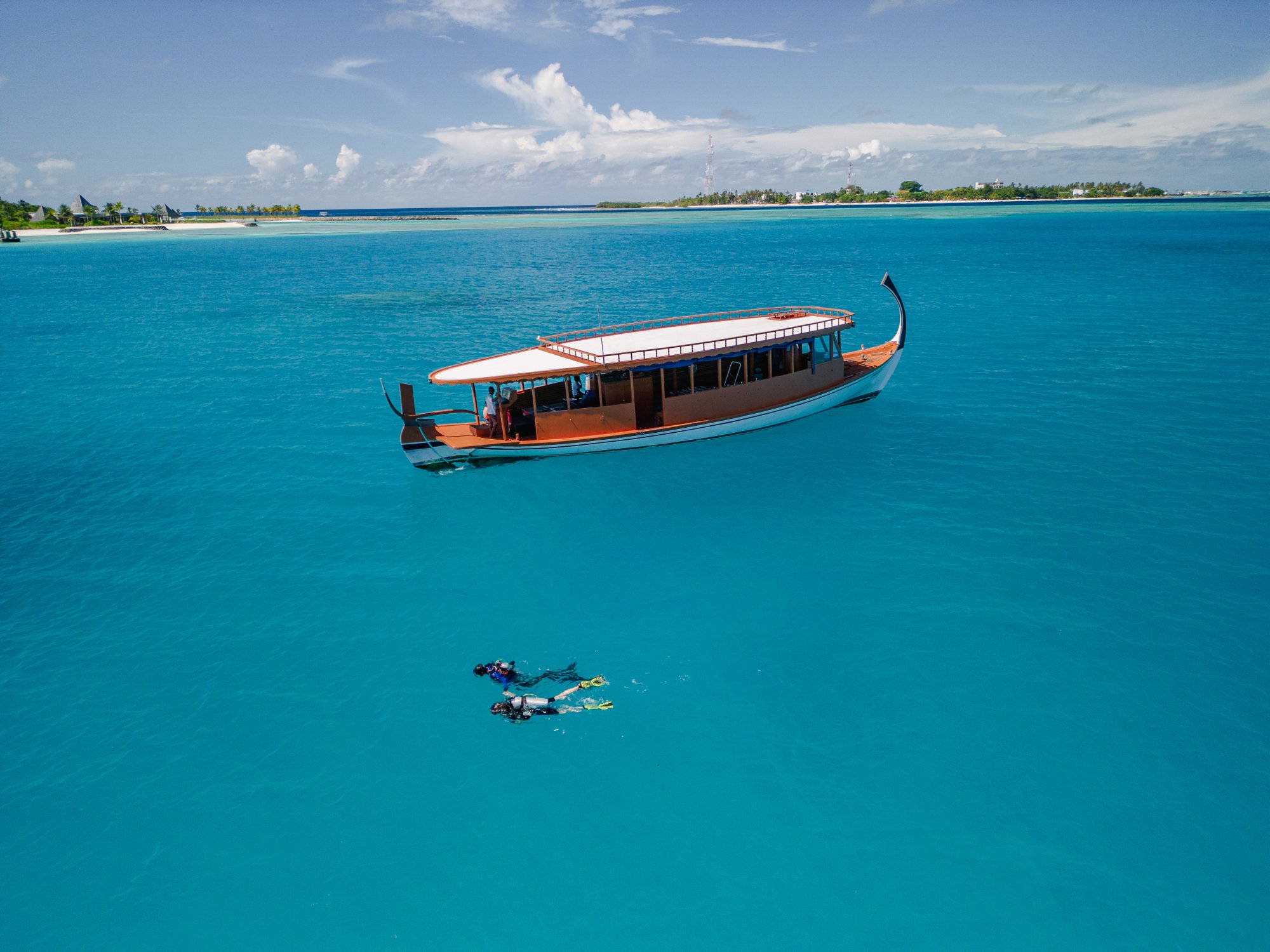 výlety loďou so šnorchlovaním, rybárčenie pri západe slnka alebo plavba tradičnou loďou dhoni