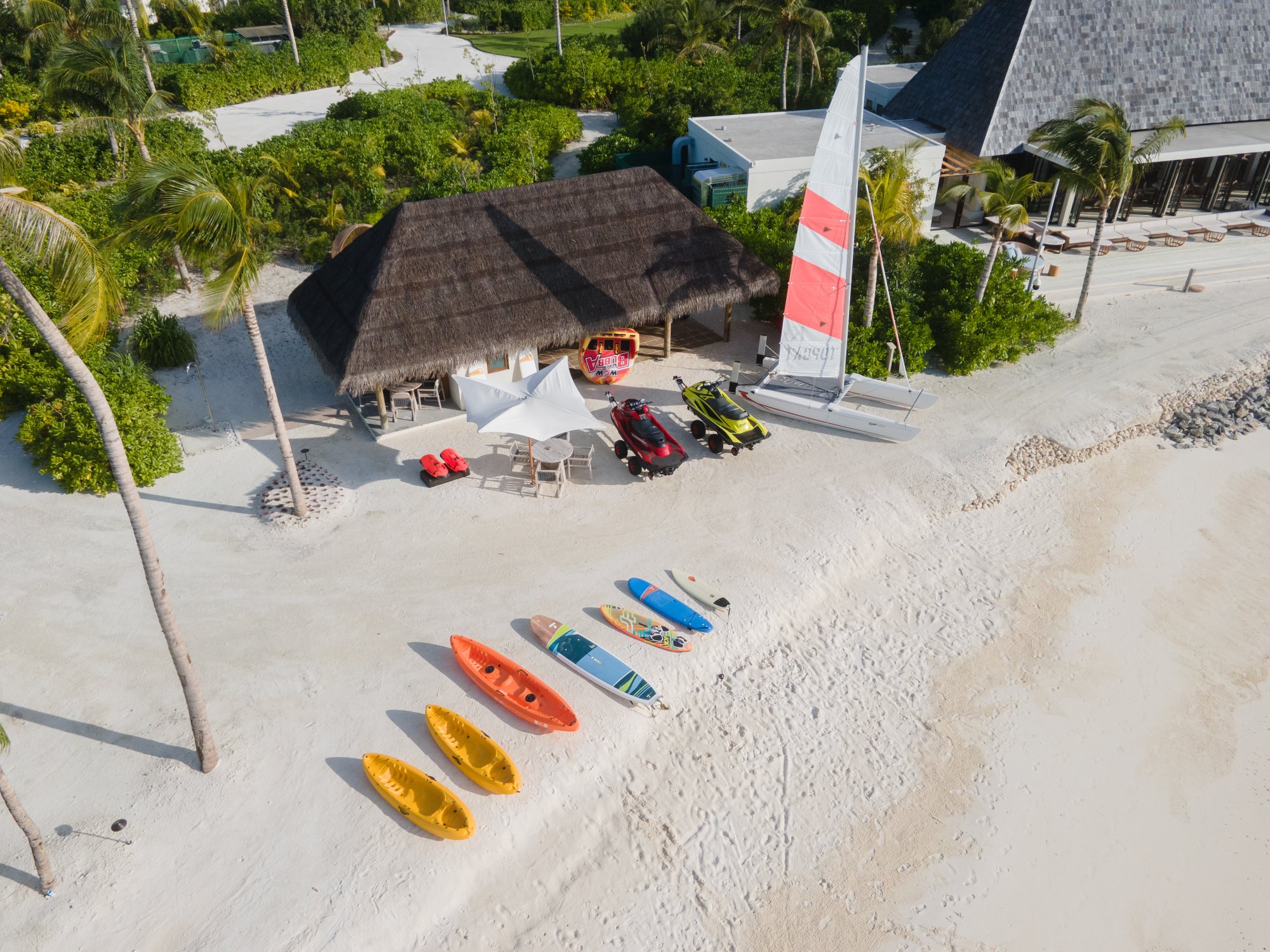 Súčasťou rezortu sú aj tenisové kurty, ihrisko na padel, futsal a volejbal. K Maldivám neodmysliteľne patria vodné športy - vyskúšajte si jazdu na paddleboarde, kajaku či vodnom skútri, wakeboarding, plachtenie na katamaráne alebo windsurfing. Pri hoteli sa navyše nachádza vyhlásený surferský spot Chicken's Break, kde si môžete tento vzrušujúci šport vyskúšať s inštruktorom alebo zdokonaľovať svoje schopnosti na najdlhšom ľavom bareli na Maldivách.