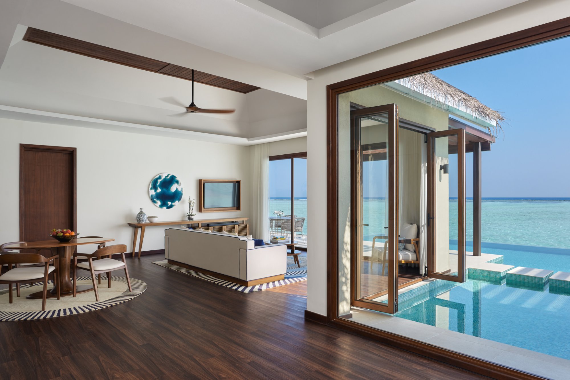 Táto očarujúca vila (175 m2) s bazénom stojaca priamo nad tyrkysovou hladinou lagúny je vašou vstupnou bránou k luxusnej dovolenke na Maledivách. Ponorte sa do pohodlia lehátka na súkromnej terase a pozorujte dych vyrážajúcu panorámu pred vami – more hrajúce škálou modravých odtieňov, trblietajúci sa bazén a belostný piesok. Svetlý interiér vily s modrými detailmi pripomína moderné umelecké dielo a zapadá do idylického obrazu okolitej prírody. Maximálna kapacita: 3 dospelí.