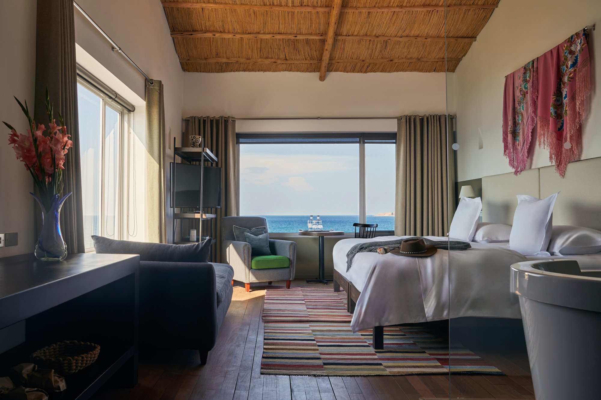 Tento rohový pokoj (35—47 m²) se pyšní panoramatickým výhledem na jezero Titicaca a díky své poloze nabízí ideální podmínky pro pozorování východu i západu slunce. Prostorný interiér zalitý přirozeným světlem zahrnuje dvě velké postele, koupelnu vybavenou sprchovým koutem i samostatně stojící vanou, toaletu a pohovku, odkud se můžete kochat výhledem na hladinu jezera. Součástí vybavení je také psací stůl se židlí, vyhřívaná podlaha, bezdrátové reproduktory a bezplatný minibar. Maximální kapacita: 3 osoby.