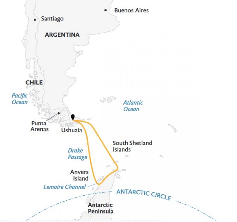 Vďaka Crossing the Circle: Southern Expedition budete mať možnosť vydať sa po rovnakej ceste, po akej sa vydávali cestovatelia, ktorí chceli objaviť bájny južný pól. Na expedícii preplávate (na jednej z dvoch lodí spoločnosti Quark Expeditions®) a prejdete Antarktický polostrov a budete pokračovať ďalej na juh až k južnému polárnemu kruhu. Pri tejto jedinečnej expedícii na vlastnej koži zažijete, aké to je, dostať sa do oblasti, ktorú obývajú iba tučniaky, tulene a veľryby a ktorá je tvorená ľadovcami a zátokami. Toto dobrodružstvo zažijete počas 14 dennej plavby, počas ktorej budete môcť zakúsiť aj kempovanie, výlet na kanoe či výlet na kajaku.