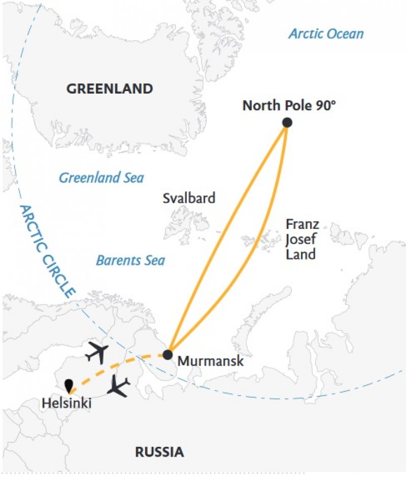 North Pole: The Ultimate Arctic Adventure je tou pravou expedíciou pre tých, ktorí si stanovili ako svoj cieľ dobytie severného pólu. Plávať sa budete na najmocnejšom ľadoborci 50 Years of Victory, ktorý dokáže preraziť akúkoľvek ľadovú prekážku a dopraví vás tak až k najsevernejšiemu svetovému bodu. Pri spiatočnej ceste navštívite súostrovie Zem Františka Jozefa a všetky jeho prírodné krásy. Počas tejto 14 dennej plavby budete môcť zažiť jedinečné grilovanie v krajine večného ľadu, let helikoptérou či let teplovzdušným balónom.