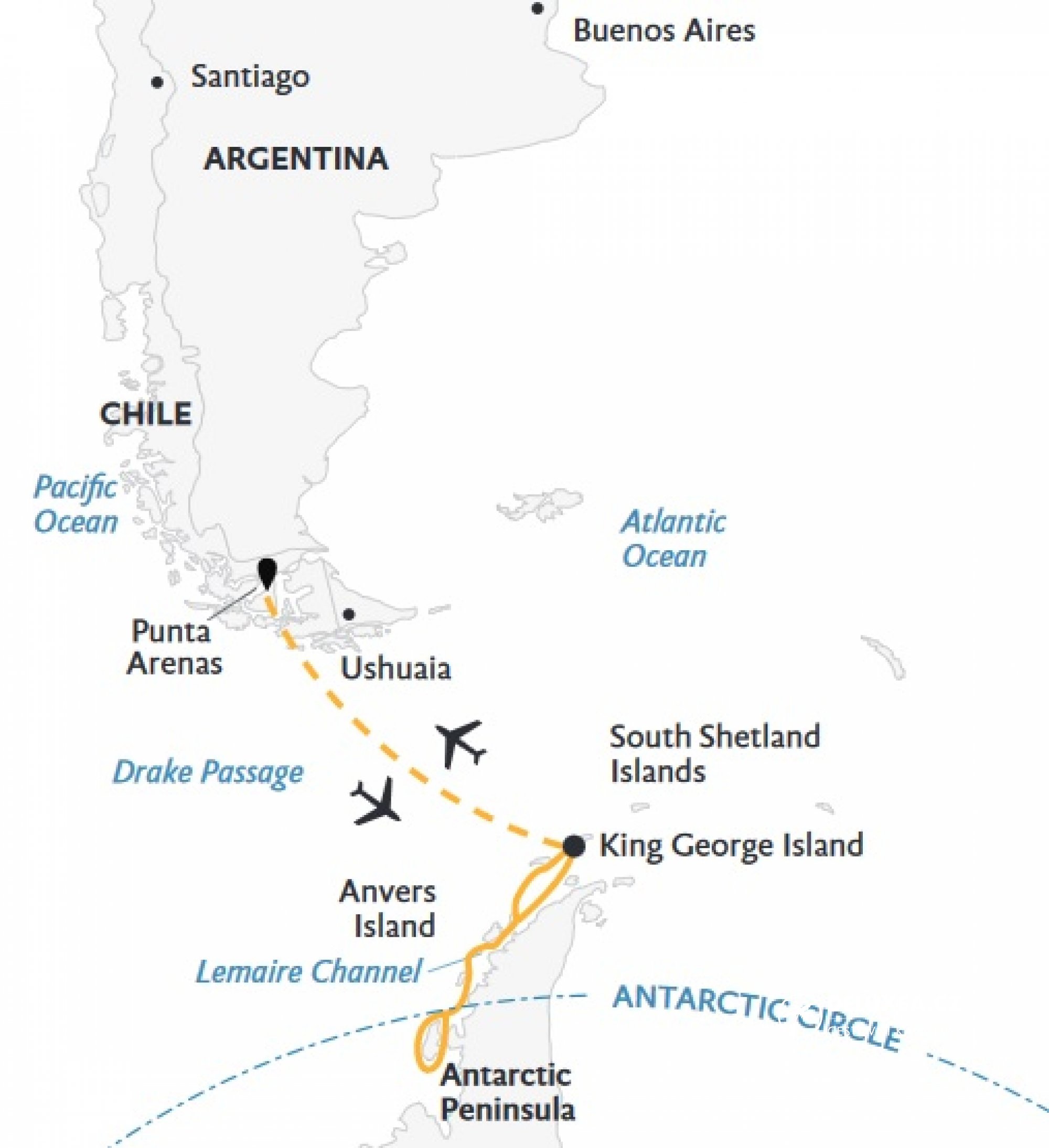 Antartic Express: Crossing the Circle je rýchlejšou alternatívou expedície Crossing the Circle: Southern Expedition. Na tejto expedícii sa tiež pozriete až k južnému polárnemu kruhu, ale navyše sa preletíte nad Drakeovým prielivom, čím ušetríte pár dní cesty. Nemusíte sa báť, ani počas tejto 11 dennej cesty neprídete o jedinečné stretnutie s tučniakmi, veľrybami a tuleňmi a nádhernými ľadovcami a zátokami. V priebehu výpravy môžete zažiť špeciálny výlet na kanoe či kajaku a zakúsiť paddleboarding na vode plnej ľadových krýh.