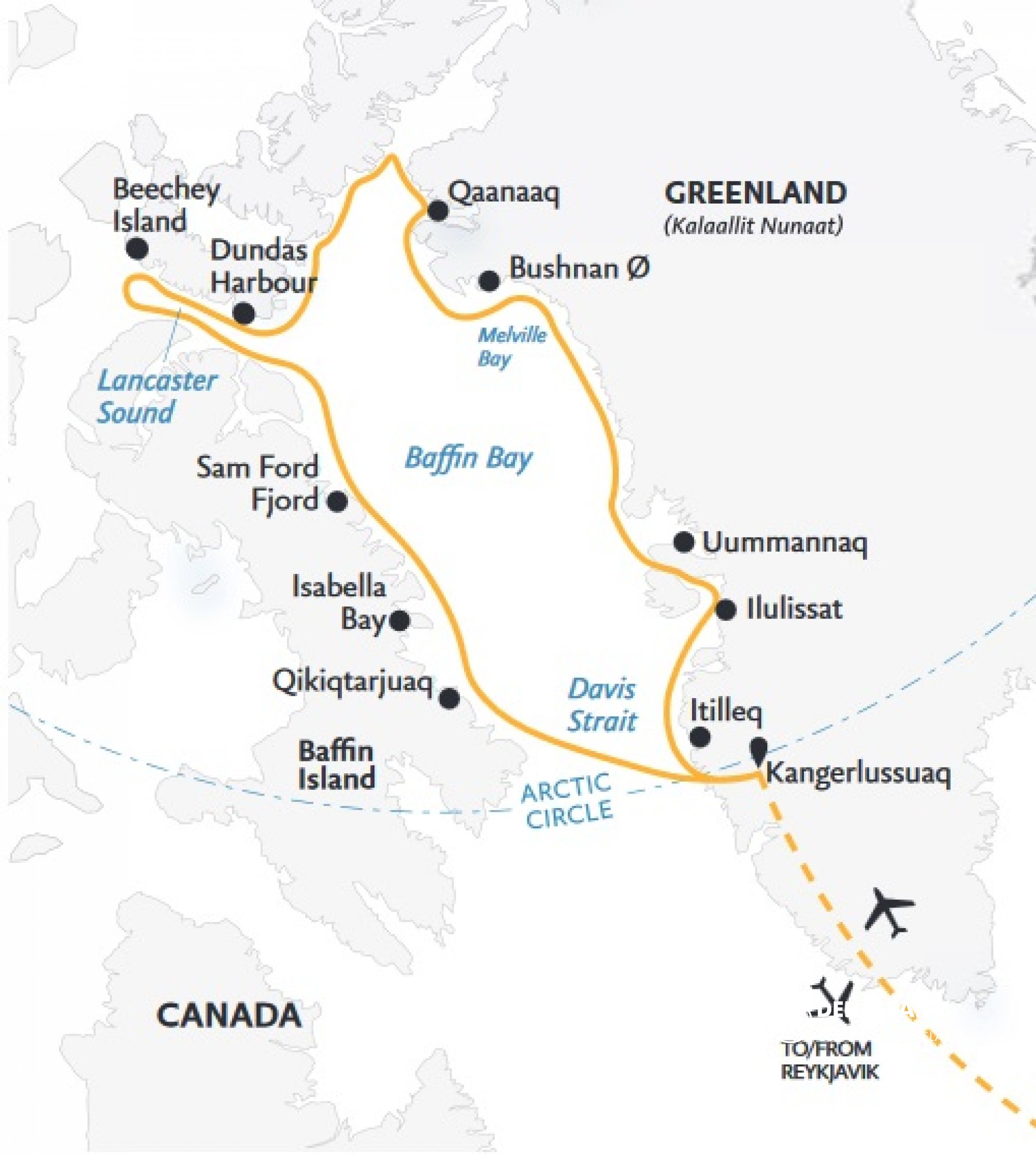 Expedícia Best of Western Arctic: Canada a Greenland vás vezme cez Davissov prieliv, východné pobrežie Baffinovho ostrova a prieliv Lancaster Sound na západné pobrežie Grónska. V rámci tejto 20 dennej plavby (loďou Ocean Adventurer) uvidíte tie najkrajšie ľadovce, fjordy, skalnaté hory, farebné tundry a divé zvieratá (napr. ľadový medveď, mrož či sob). Môžete sa tiež zúčastniť výletu na kanoe alebo kajaku.