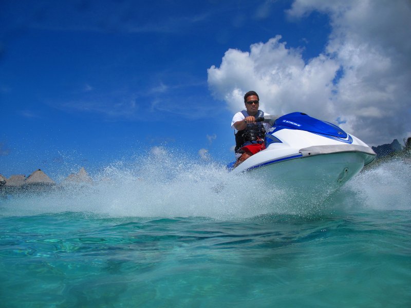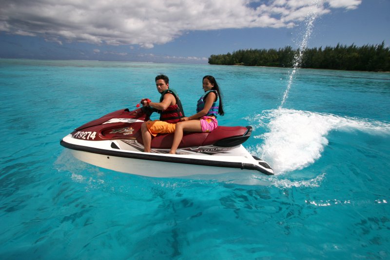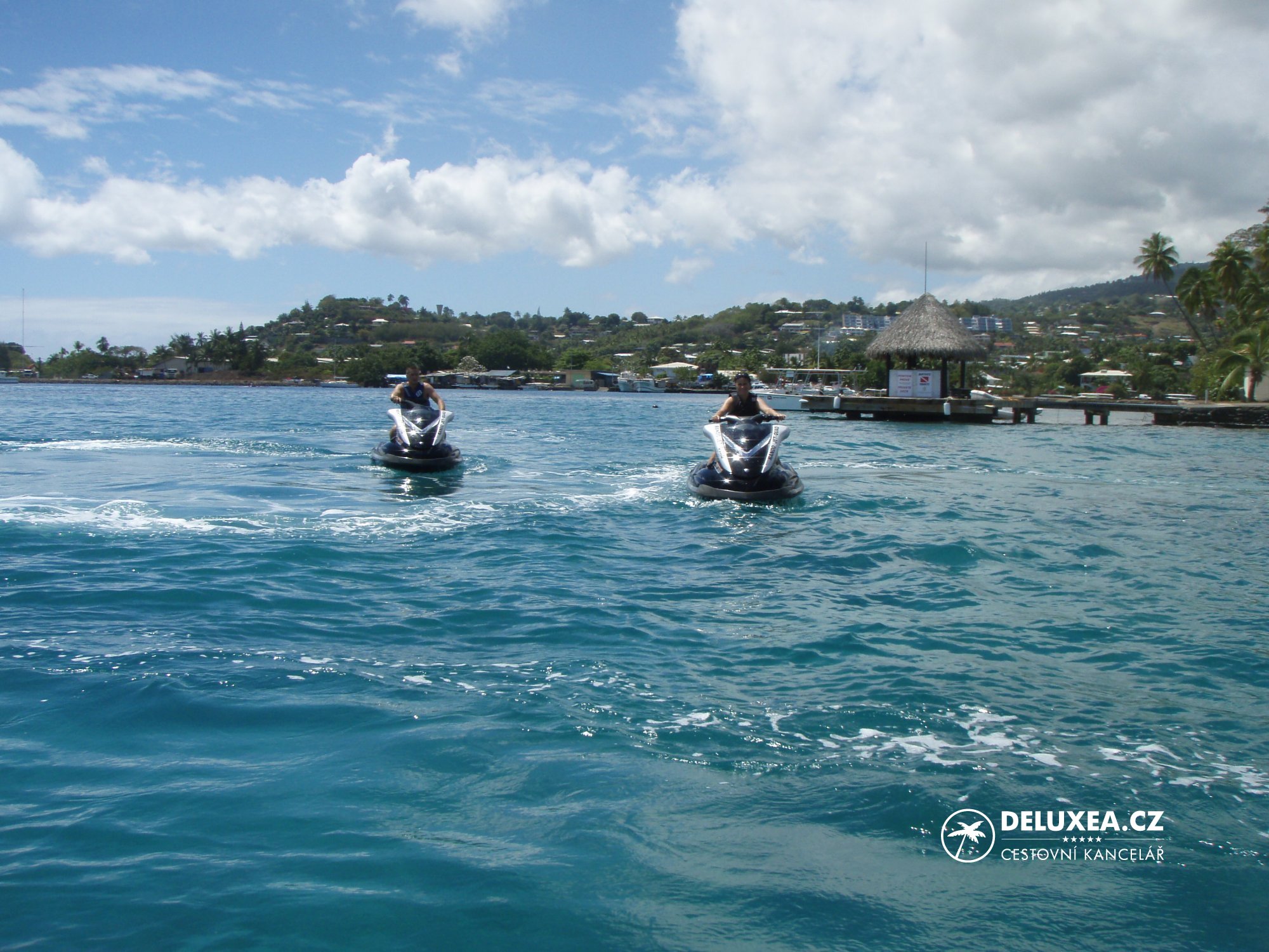 Dobrodružstvo okolo lagúny Bora Bora na vodnom skútri môžete pocítiť na vlastnej koži. Je to ideálna príležitosť, aby ste sa vydali do lagúny plnej odtieňov modrej a zachytili okolie na jedinečných fotografiách (vodotesný priestor je k dispozícii na vodnom skútri). A prečo neochutnať napríklad miestne ovocie pri prestávke na pláži?