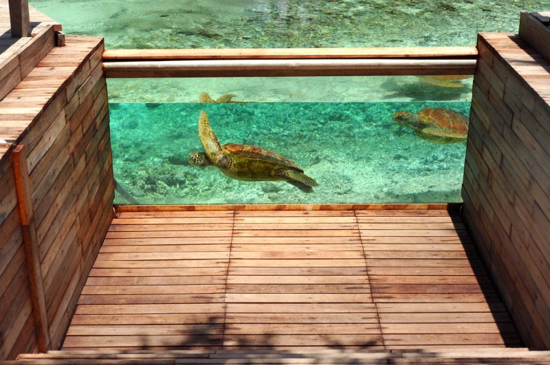Súkromné motu, Lagunárium, domov troch rybích parkov, kde môžete vidieť veľké ryby, korytnačky, raje, žraloky, atď. Užite si dopoludnie na pláži a motu, než sa vydáte späť do hotela na obed.