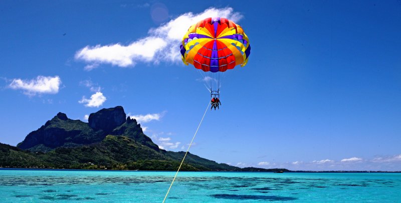 Lety cez lagúnu Bora Bora sú prevádzané sólo alebo v pároch. Užijete si 15 alebo 25 minút vzrušenia! Objavíte Bora Bora z iného uhlu pohľadu: budete môcť sledovať žraloky a raje a kochať sa okolitými ostrovami z nebeských výšin. Pri 15 minútovom lete je používané 100 m dlhé lano a pri 25 minútovom 300 m. Deti môžu absolvovať lety po dosiahnutí 6 rokov a váhy aspoň 15 kg, a to v párovom lete s rodičom.
