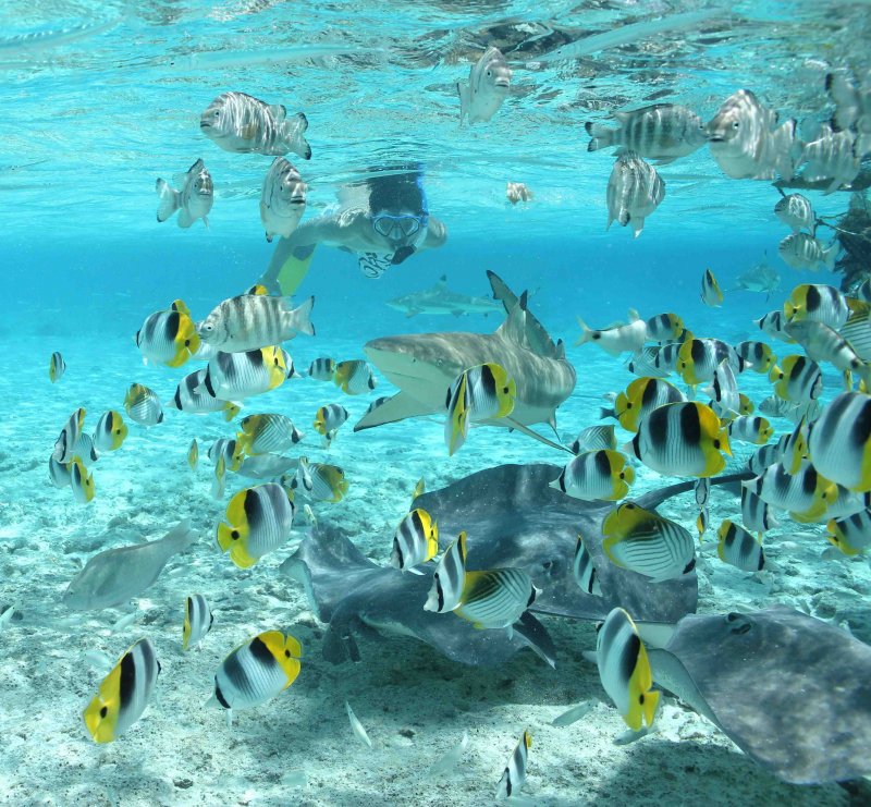 Dostanete sa do úplnej blízkosti tropických rýb, rají a čiernonohých žralokov a budete ich môcť pozorovať v ich prirodzenom prostredí krásnej lagúny Bora Bora. Pri tom si budete užívať komfort pôvabnej lode Cap Camarat BAYLINER. Safari program je robený na mieru, aby vyhovoval každému zákazníkovi.
