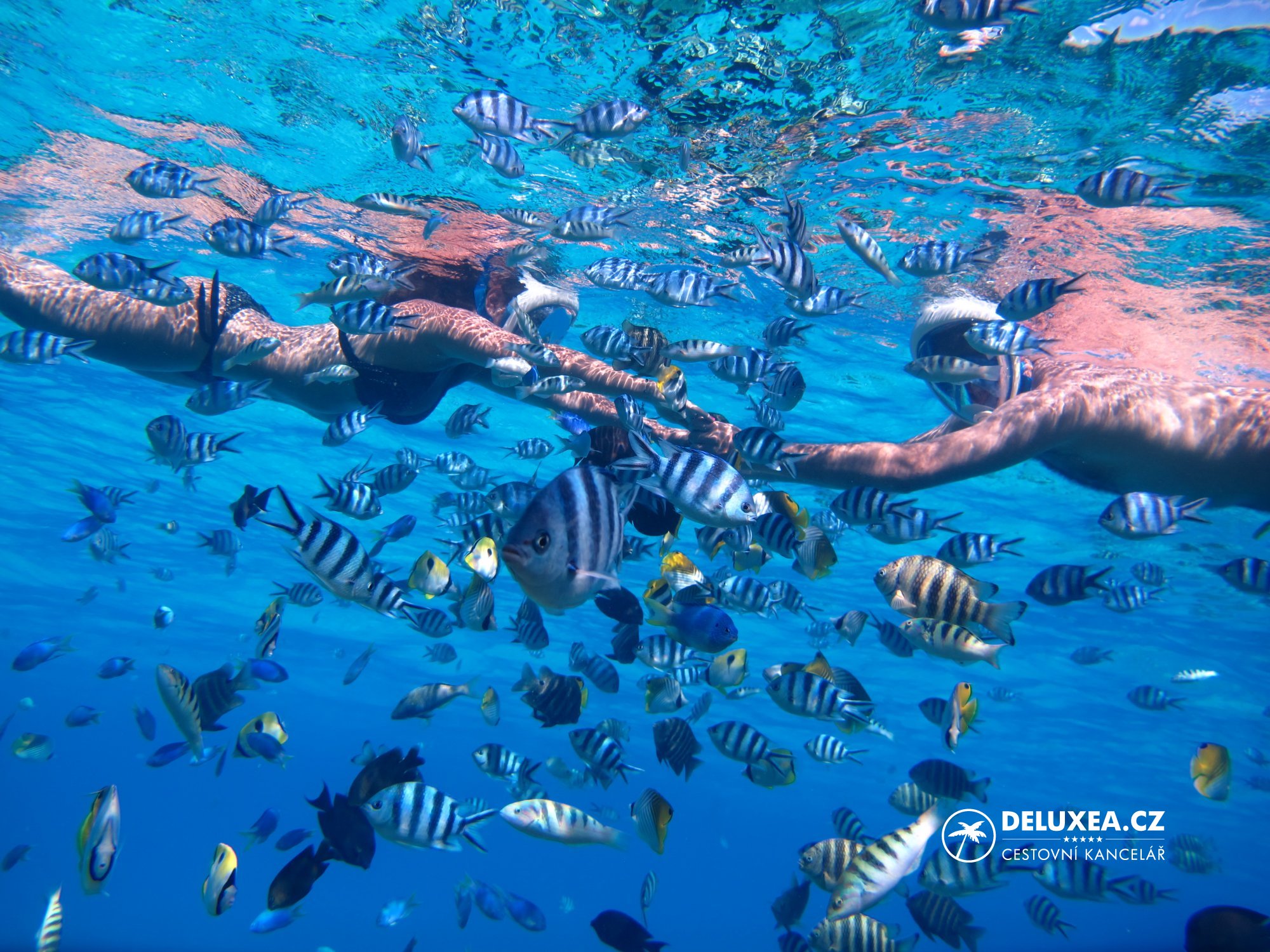 Ponorte svoje nohy do piesku… v šesť metrovej hĺbke krištáľovo čistých vôd. Potápačská prilba Vám umožní normálne dýchanie pod vodou. Budete obklopení farebnými koralmi a tropickými rybami, ktoré Vám budú jesť z rúk. Tento výlet je vhodný pre každého (od 8 rokov), pretože nemusíte byť zdatný potápač ani plavec.
