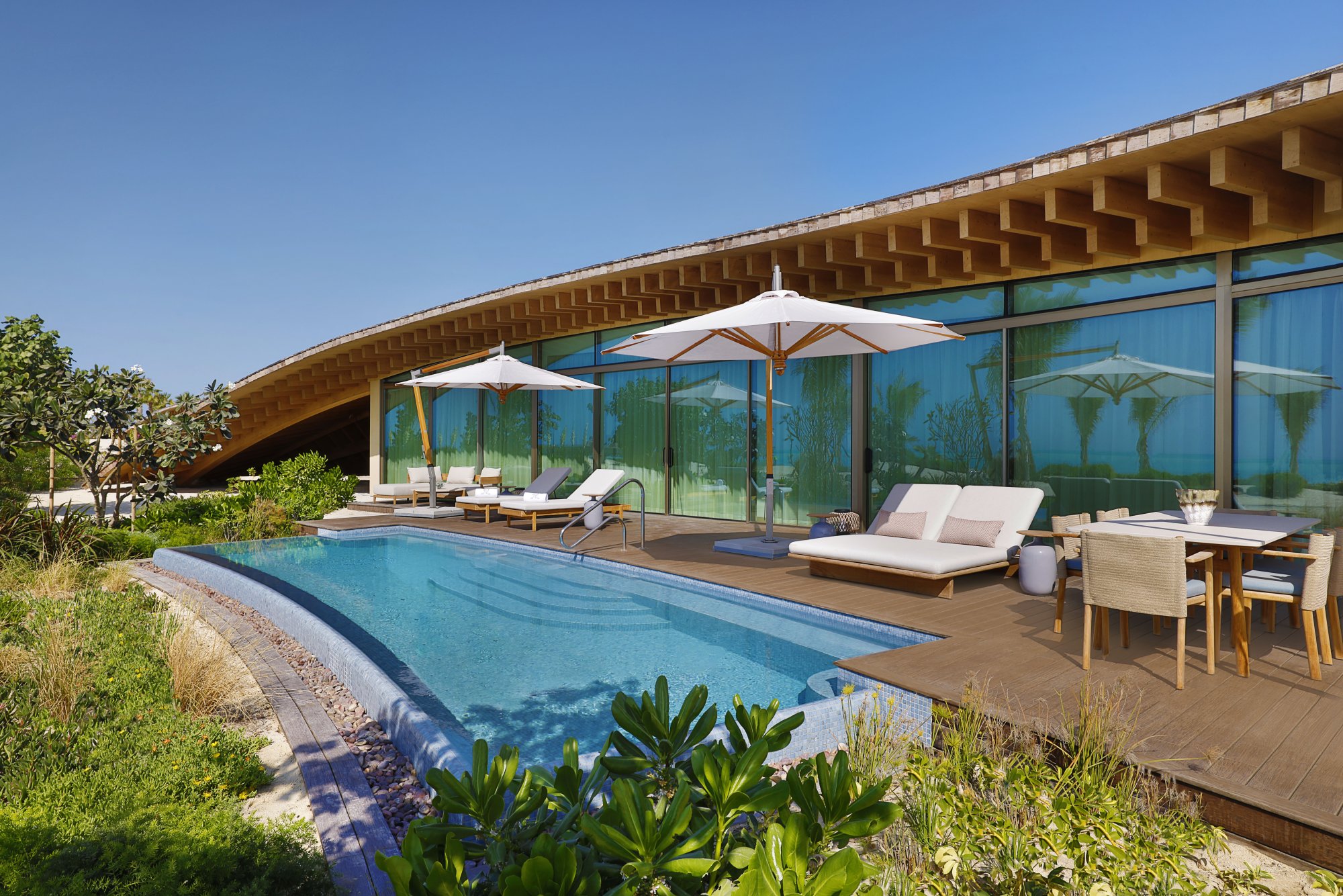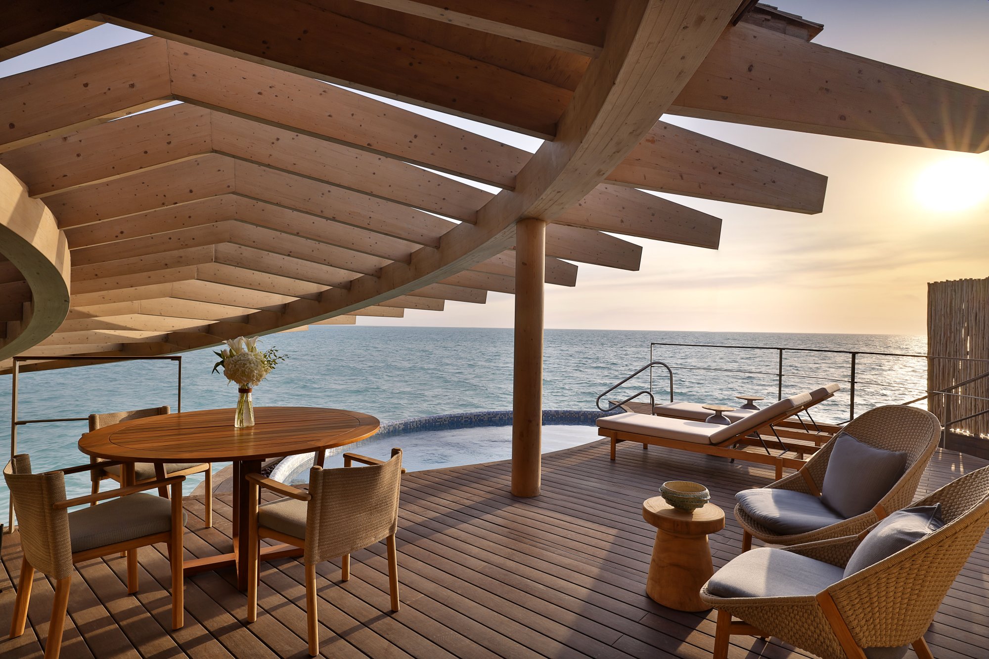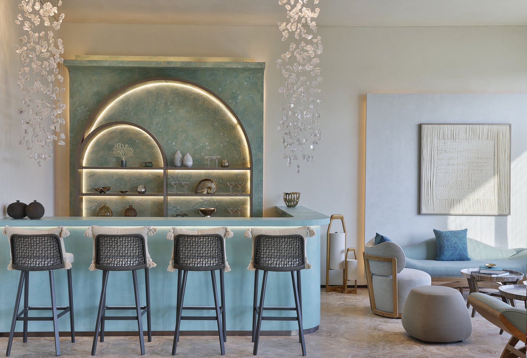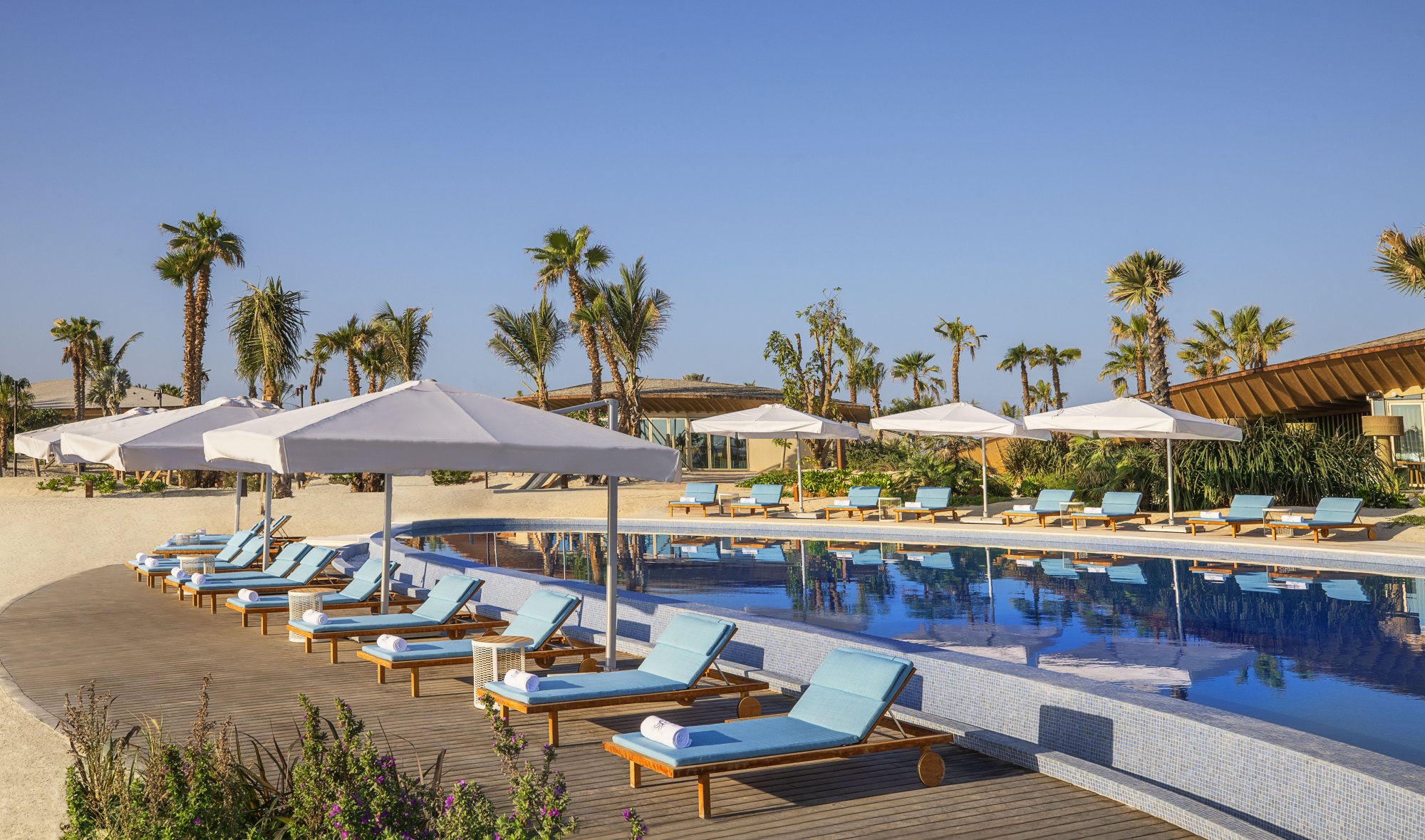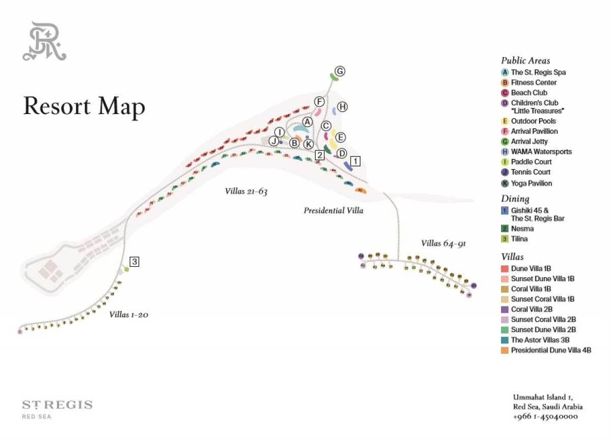 The St. Regis Bar – Tento elegantný bar stelesňuje esenciu hotela The St. Regis Red Sea Resort. Podávajú sa tu ľahké jedlá a obľúbené nápoje, ktoré pripravujú skúsení mixológovia. Okrem toho sa môžete tešiť na živú hudbu a špeciálne zážitky ako napríklad ochutnávku unikátneho kokteilu The Coral Mary inšpirovaného miestnym koralovým útesom či pravidelný rituál Violet Hour s ukážkou tradičného umenia sabráže.