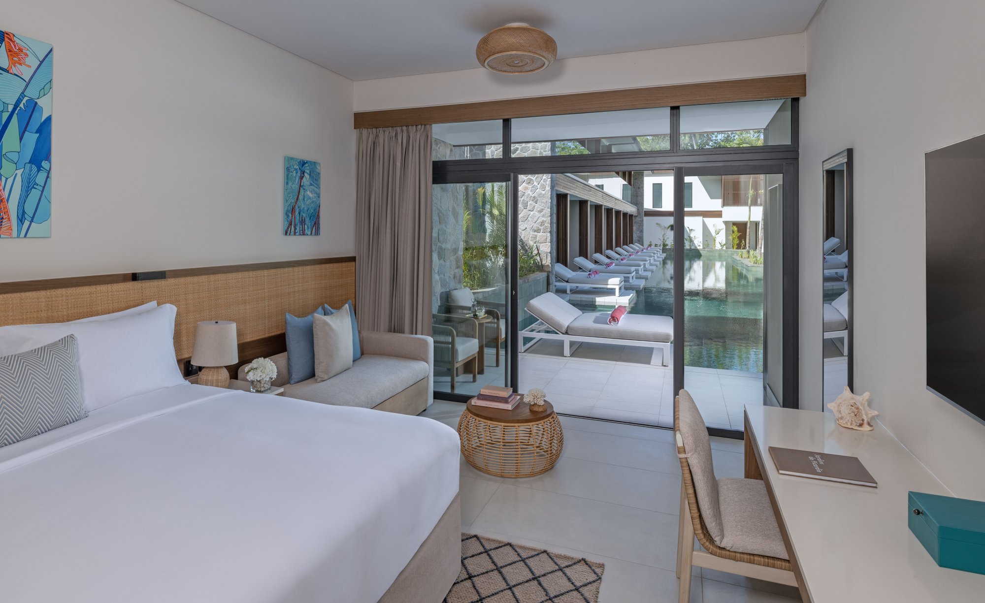 Izba priamo na pláži s výhľadom na oceán? Presne to spĺňa ubytovanie v Premium Beach Access Room. Svetlý a vzdušný priestor je zariadený manželskou posteľou king alebo dvoma oddelenými lôžkami, písacím stolom a pohodlným kreslom. Francúzskymi oknami vojdete na priestrannú terasu s posedením. Pláž budete mať doslova na dosah ruky.