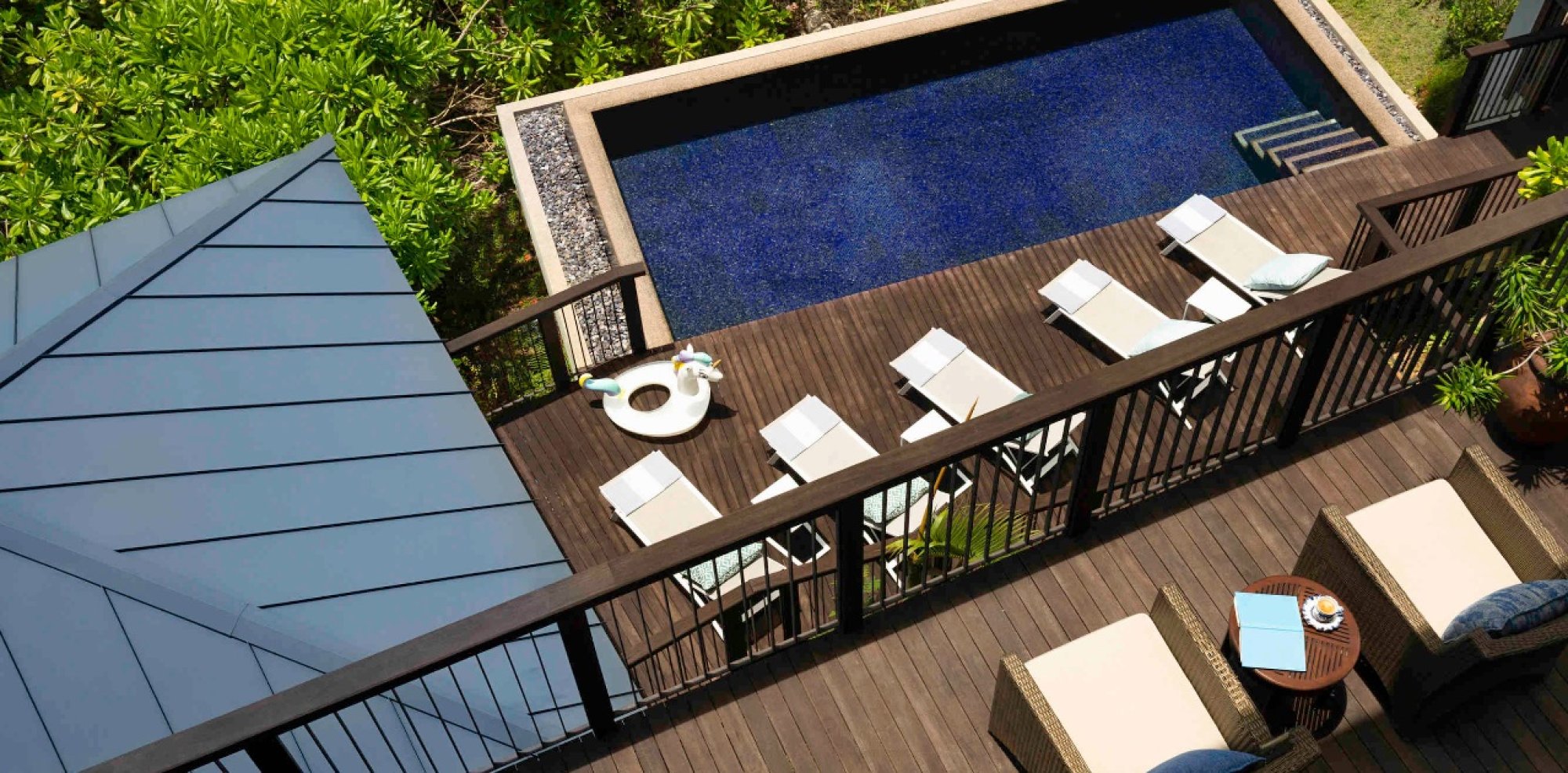 Grand Panoramic Pool Villa (200 m²) sa nachádza na samom vrchole rezortu, a tak si odtiaľ užijete ten najlepší výhľad. Napríklad z vlastného bazéna alebo z priestrannej terasy.