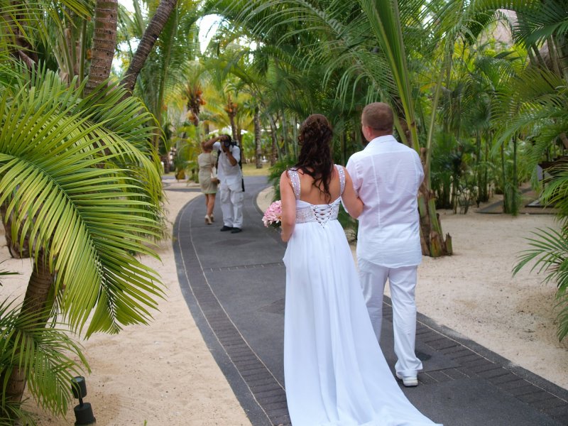 Po príchode do hotela si v sprievode svadobného koordinátora vyberiete to najromantickejšie miesto pre svoju svadbu na Mauríciu. Môžete zvoliť kvetinami vyzdobený altánok v záhrade hotela, luxusnú hotelovú reštauráciu alebo ratanové kreslá v piesku na pláži či pod palmami, kam prejdete kvetinovou slavobránou. Svadba na Mauríciu sa obvykle koná od pondelka do piatku, od 14 do 17 hod. a musí sa uskutočniť v hoteli, kde bývate. Ďalšou možnosťou je obrad na katamaráne na mori.