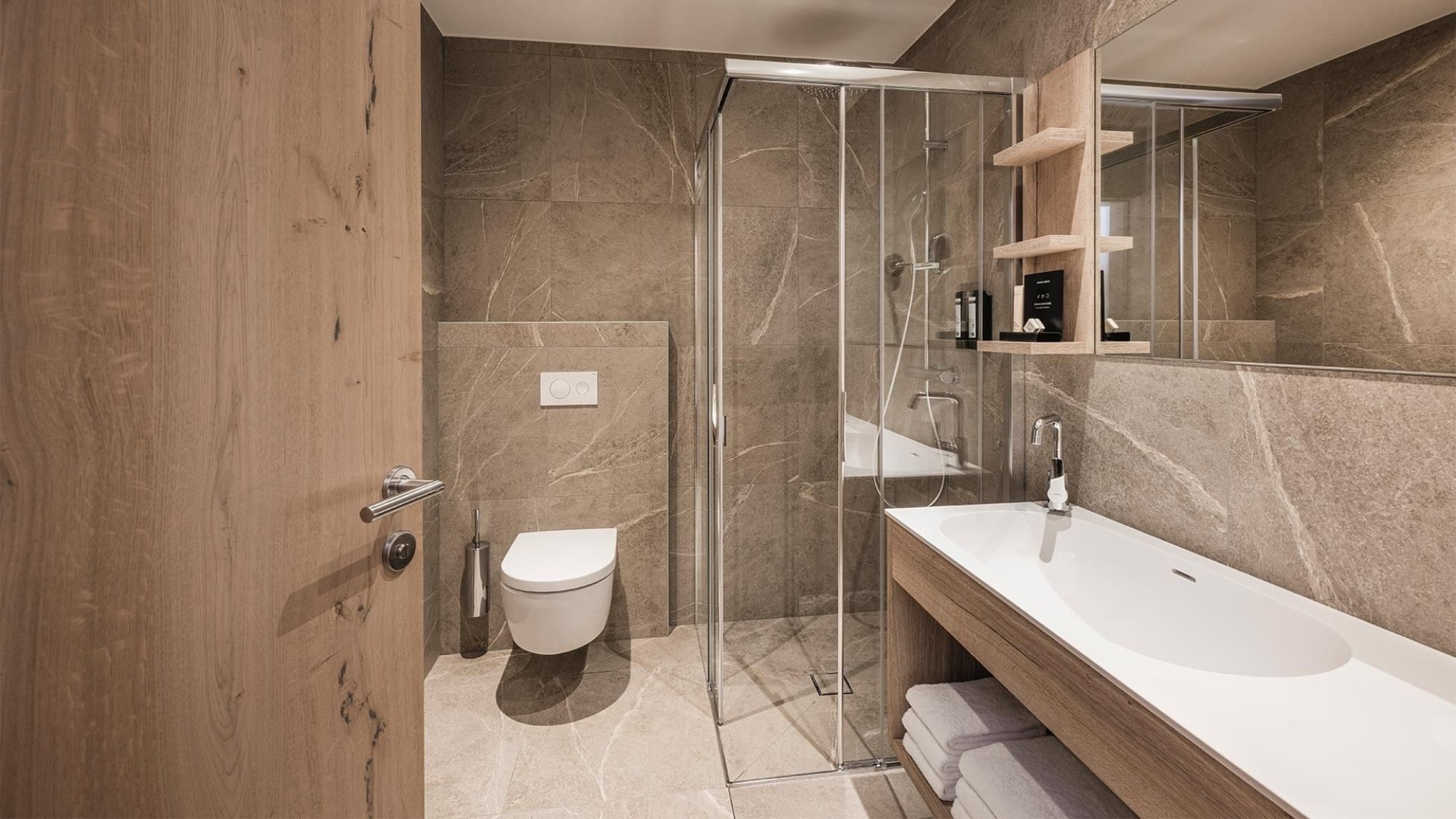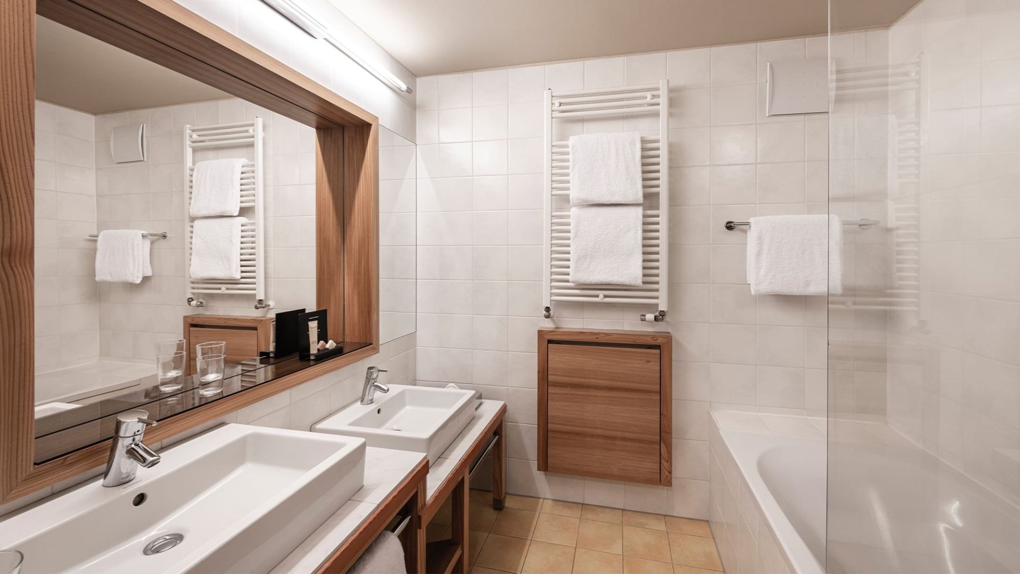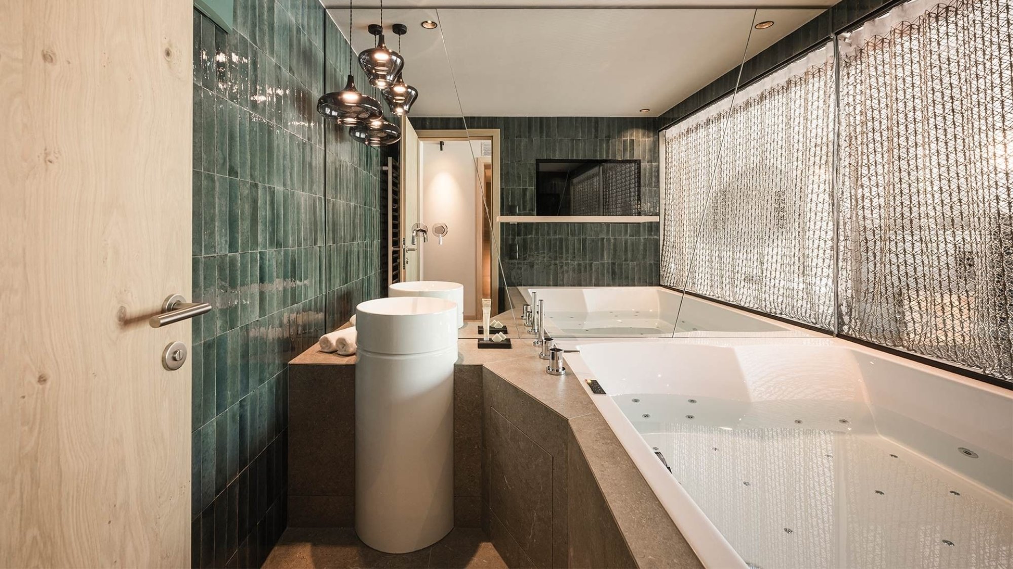 Užijte si dokonalý wellness pobyt v tomto novém luxusním apartmá (55 m²), které se pyšní soukromým balkónem s pohodlnými lehátky pro nerušený odpočinek. Uvnitř najdete hlavní ložnici s manželskou postelí, útulný dětský pokoj se dvěma jednolůžky, velkou šatnu, stylový nápojový bar pro děti a chytrou TV s herní konzolí. Součástí apartmá jsou dvě koupelny – jedna s exkluzivní vířivou vanou pro dva, chytrou TV, ozvučením a systémem náladového osvětlení a druhá s dvojitou dešťovou sprchou a dvěma umyvadly. Kromě toho můžete využívat veškeré výhody kategorie Exclusive. Maximální kapacita: 2 dospělí a 2 děti.