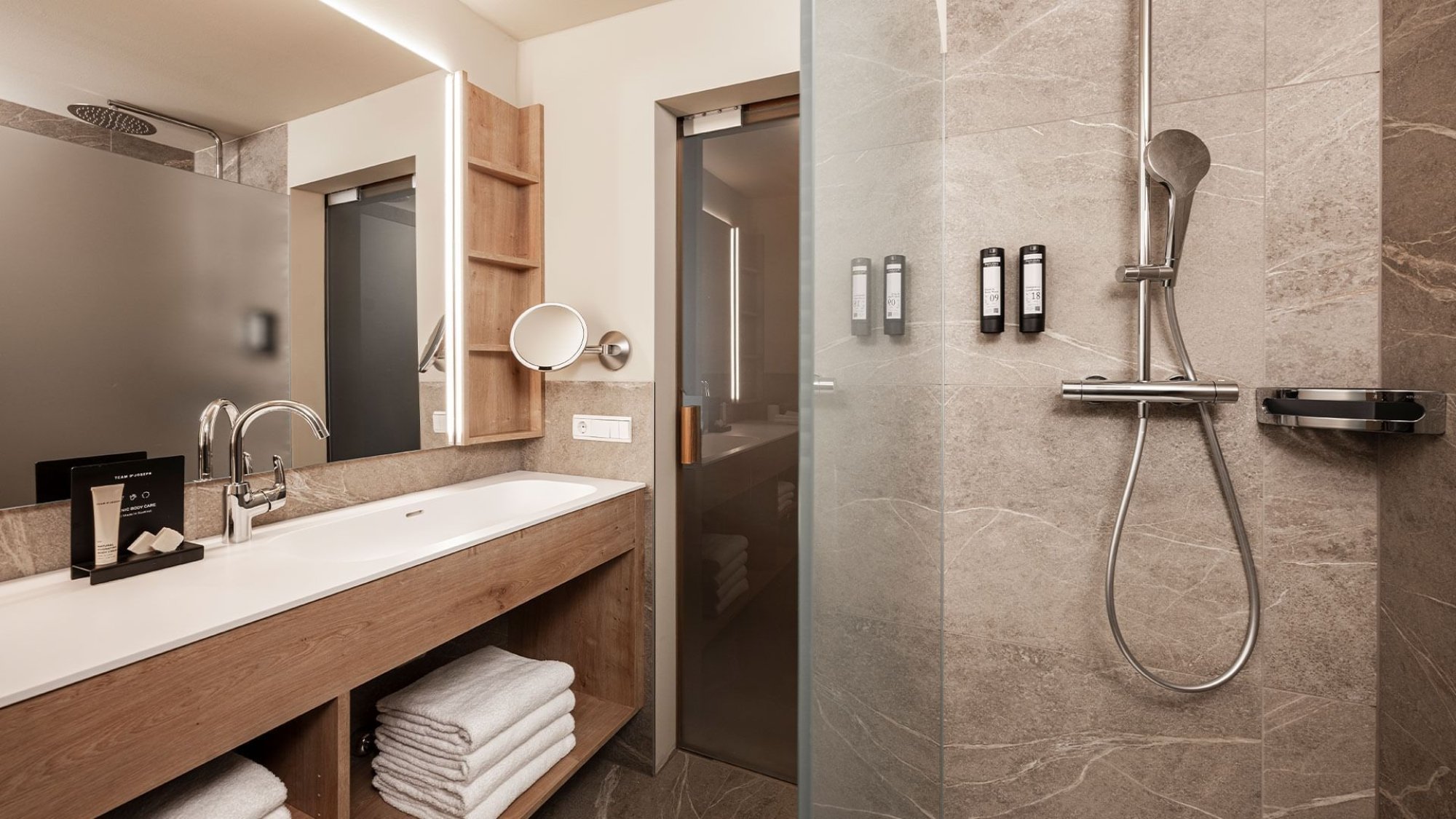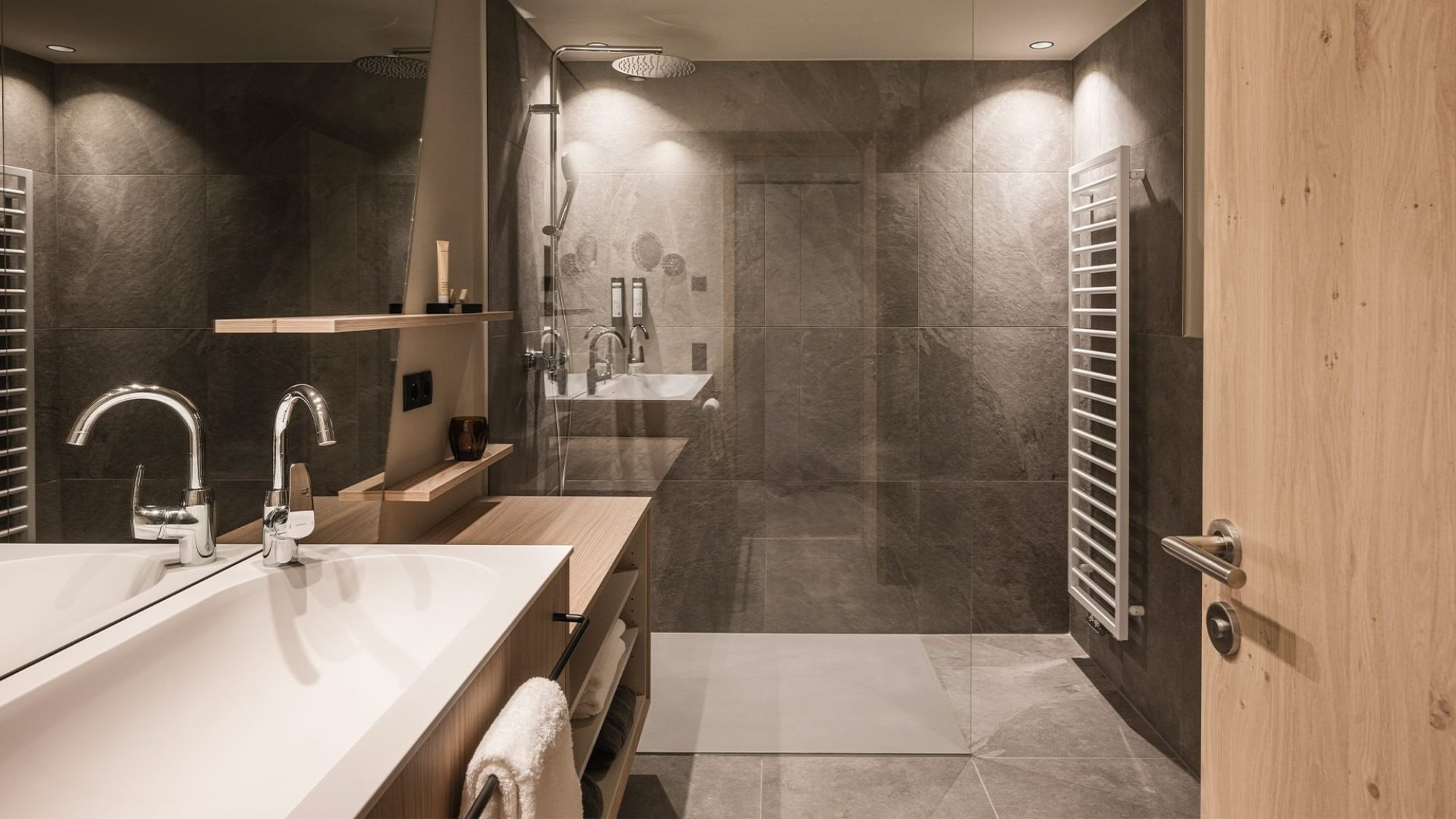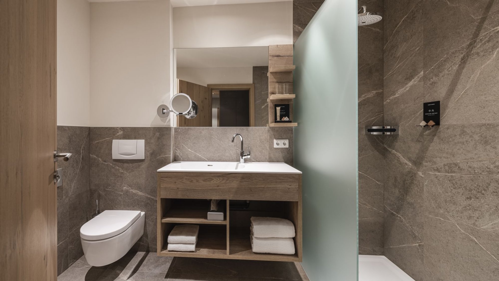 Užijte si dokonalý wellness pobyt v tomto novém luxusním apartmá (55 m²), které se pyšní soukromým balkónem s pohodlnými lehátky pro nerušený odpočinek. Uvnitř najdete hlavní ložnici s manželskou postelí, útulný dětský pokoj se dvěma jednolůžky, velkou šatnu, stylový nápojový bar pro děti a chytrou TV s herní konzolí. Součástí apartmá jsou dvě koupelny – jedna s exkluzivní vířivou vanou pro dva, chytrou TV, ozvučením a systémem náladového osvětlení a druhá s dvojitou dešťovou sprchou a dvěma umyvadly. Kromě toho můžete využívat veškeré výhody kategorie Exclusive. Maximální kapacita: 2 dospělí a 2 děti.