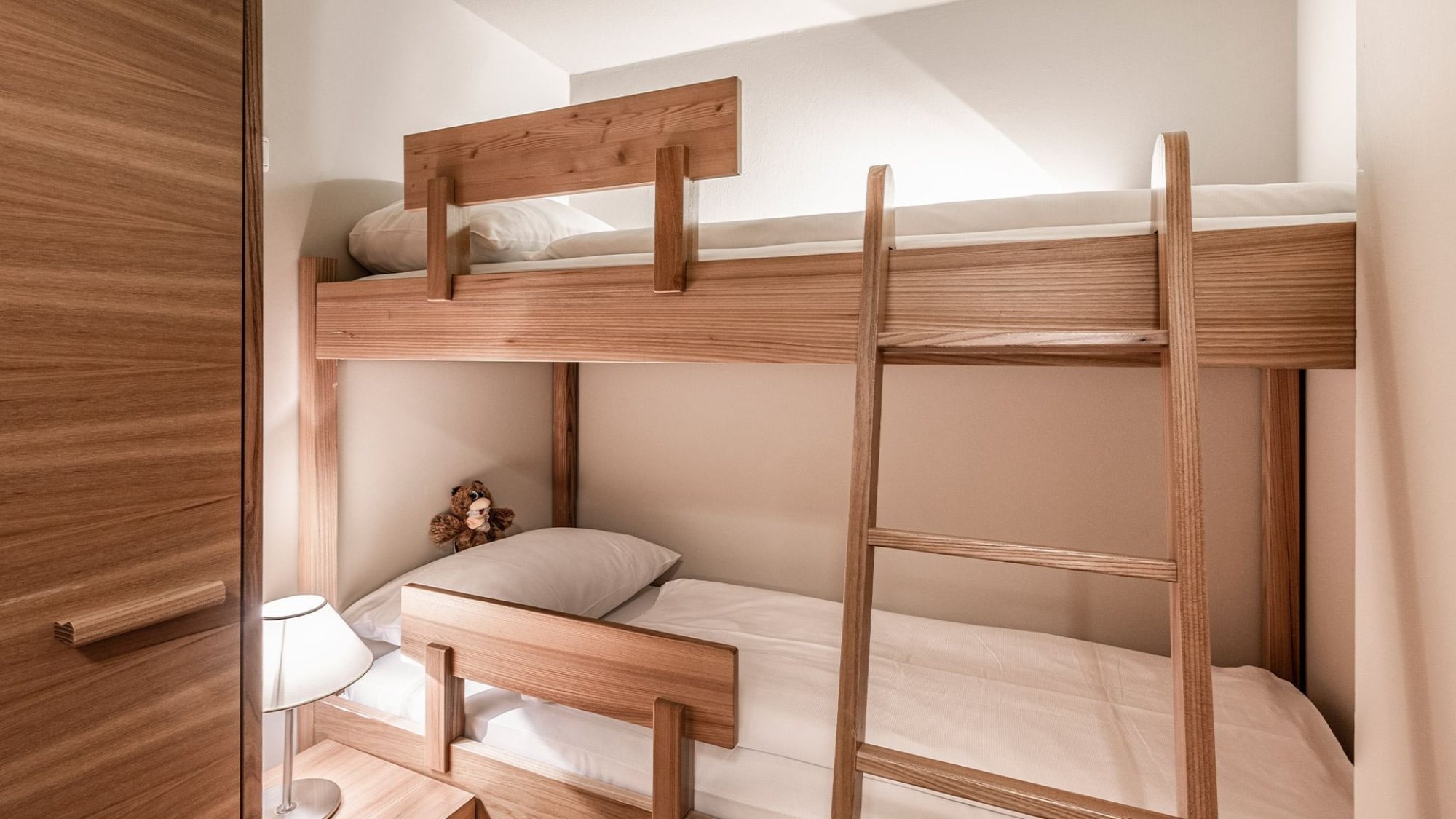 Vychutnejte si nádherný výhled na jezero ze soukromé terasy tohoto apartmá (35–40 m²), které nabízí vše, co potřebujete pro bezstarostný pobyt. Útulný interiér se skládá z ložnice s manželskou postelí, odděleného dětského pokoje se dvěma jednolůžky a luxusní koupelny vybavené sprchovým koutem. Maximální kapacita: 2 dospělí a 2 děti.