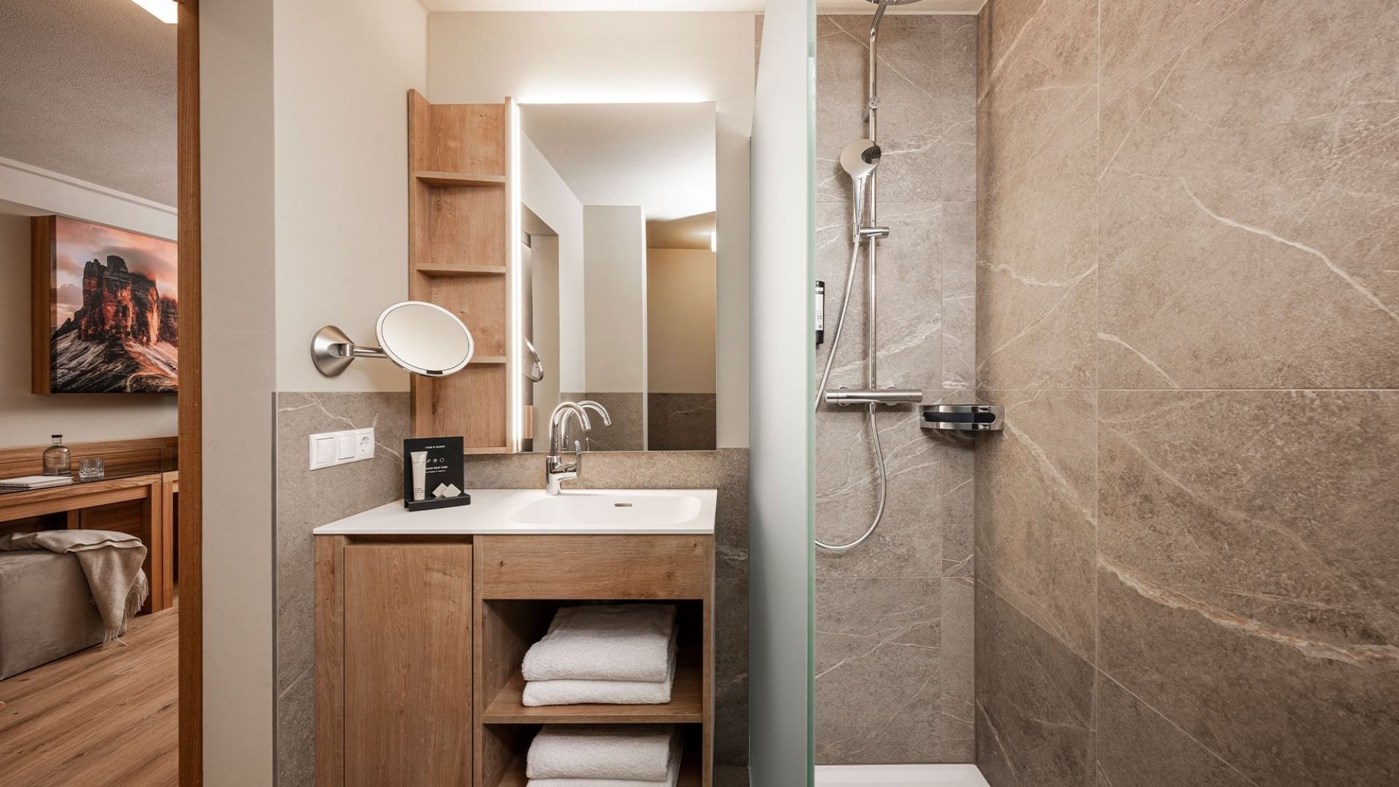 Okolí resortu a celá oblast Kronplatz navíc nabízejí ideální podmínky pro nejrůznější outdoorové aktivity. V zimě můžete využít tři lyžařská střediska – Kronplatz, Speikboden a Klausberg – se 185 kilometry sjezdovek, běžkařské stopy, trasy pro výlety na sněžnicích či sáňkařské dráhy. V létě tento region přestavuje ráj horské turistiky a cyklistiky. Prozkoumejte nádhernou krajinu Jižního Tyrolska s průzračně čistými jezery a horskými loukami. Přímo v hotelu si můžete zapůjčit turistické vybavení, kola pro děti a pro dospělé (za poplatek) i elektrokola (za poplatek). K dispozici jsou také pěší i cyklistické túry s průvodcem a možnost přepravy kol vlakem (nádraží před hotelem).