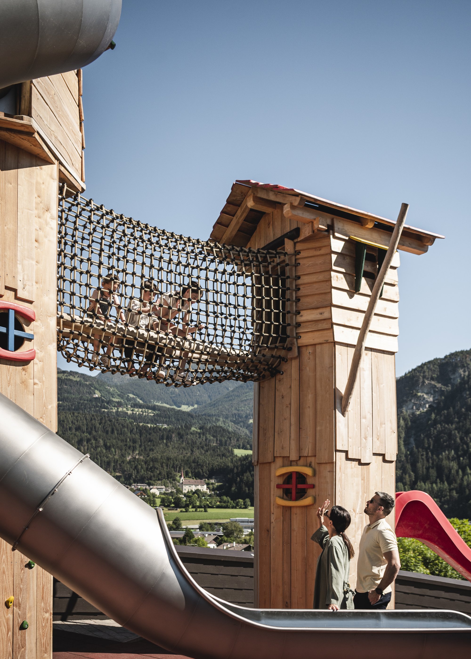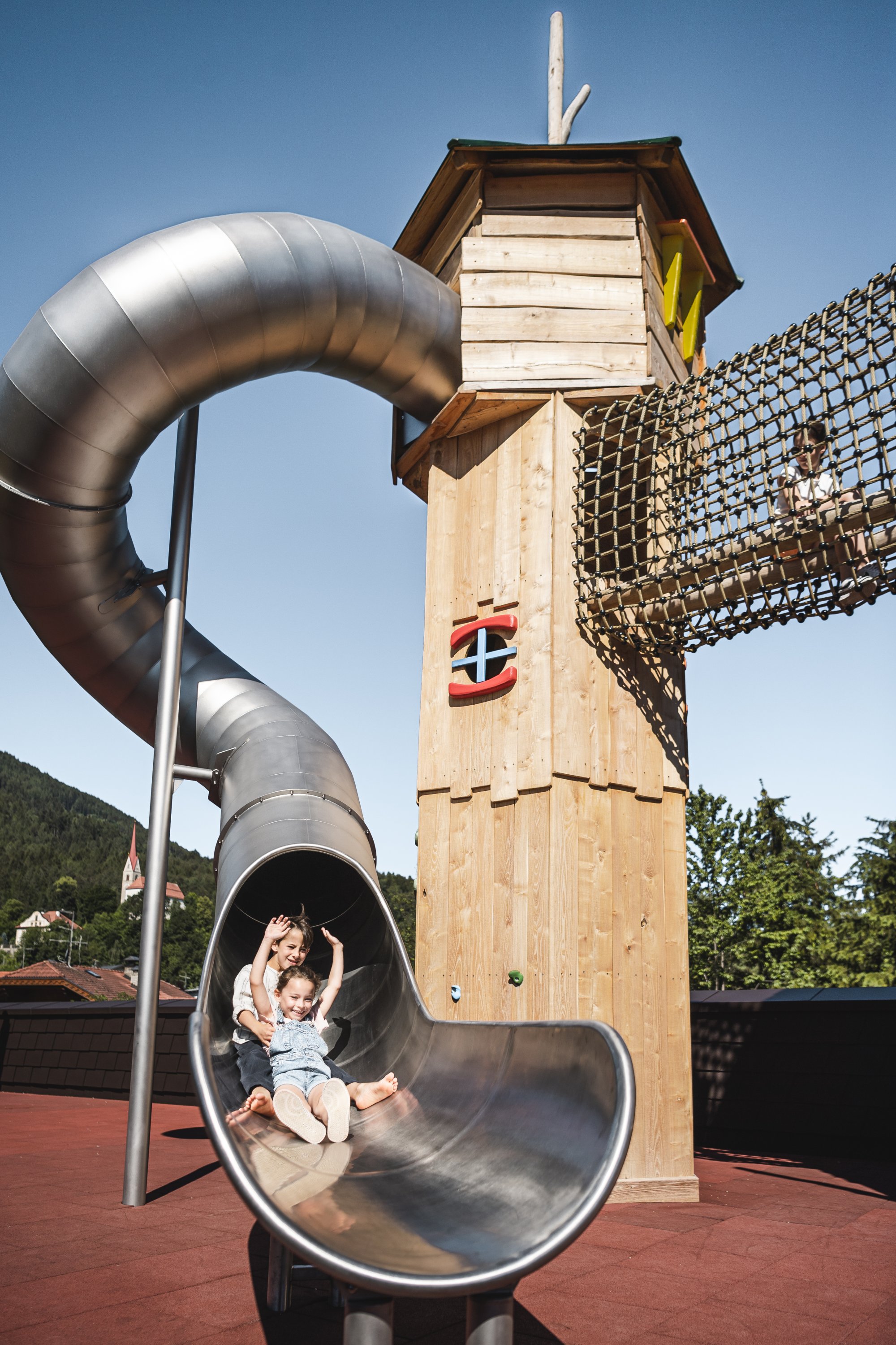 Falkensteiner Family Resort Lido je špičkový rodinný hotel s širokou nabídkou aktivit pro malé i velké. Interaktivní střecha hotelu zahrnuje celou řadu atrakcí, včetně celoroční sjezdovky, závodní dráhy pro Bobby Car a dětského hřiště. Každý detail je navržen tak, aby si vaše děti užily nezapomenutelný pobyt. Uvnitř najdete rodinné lázně a vodní park s nejdelším krytým tobogánem v Jižním Tyrolsku, trampolínový parka dětský klub Falky Land s mini vesničkou, kde si děti mohou vyzkoušet „svět dospělých“. K dispozici je bohatý program pro děti všech věkových kategorií – od 6 měsíců až po teenagery.