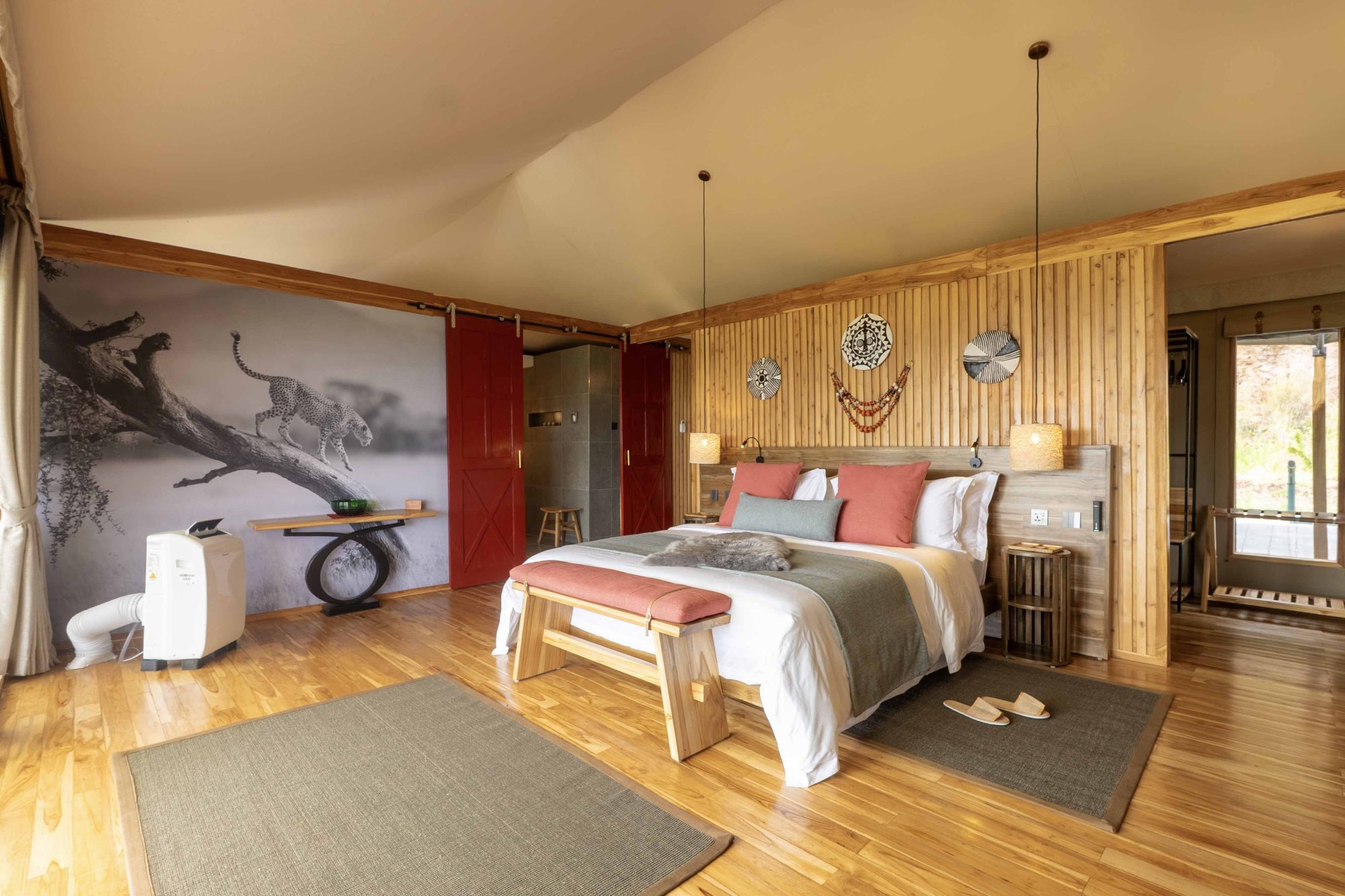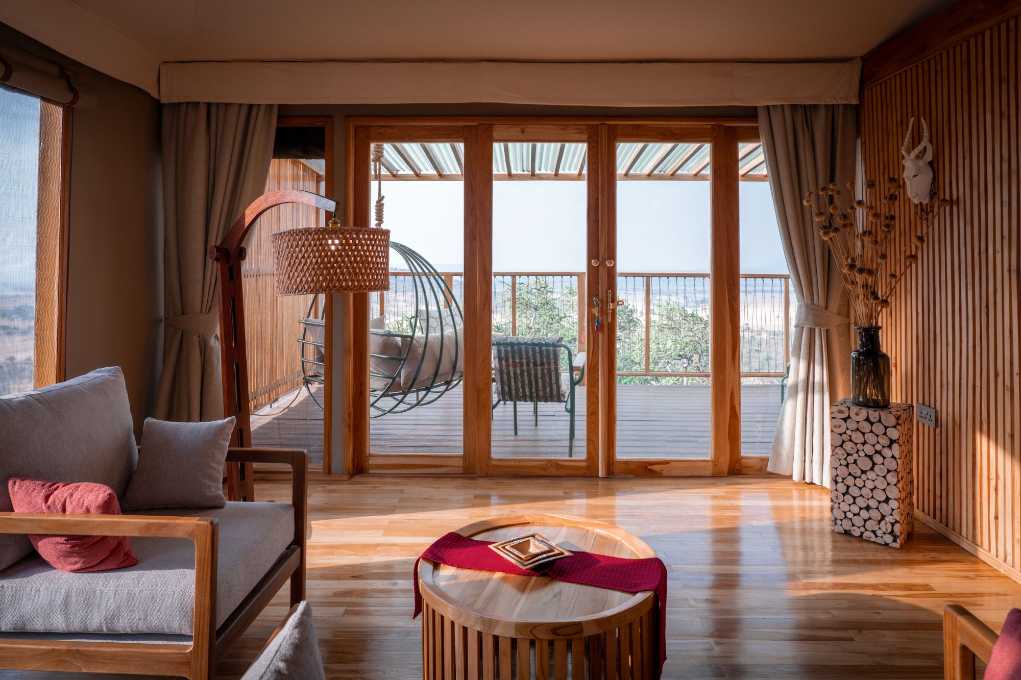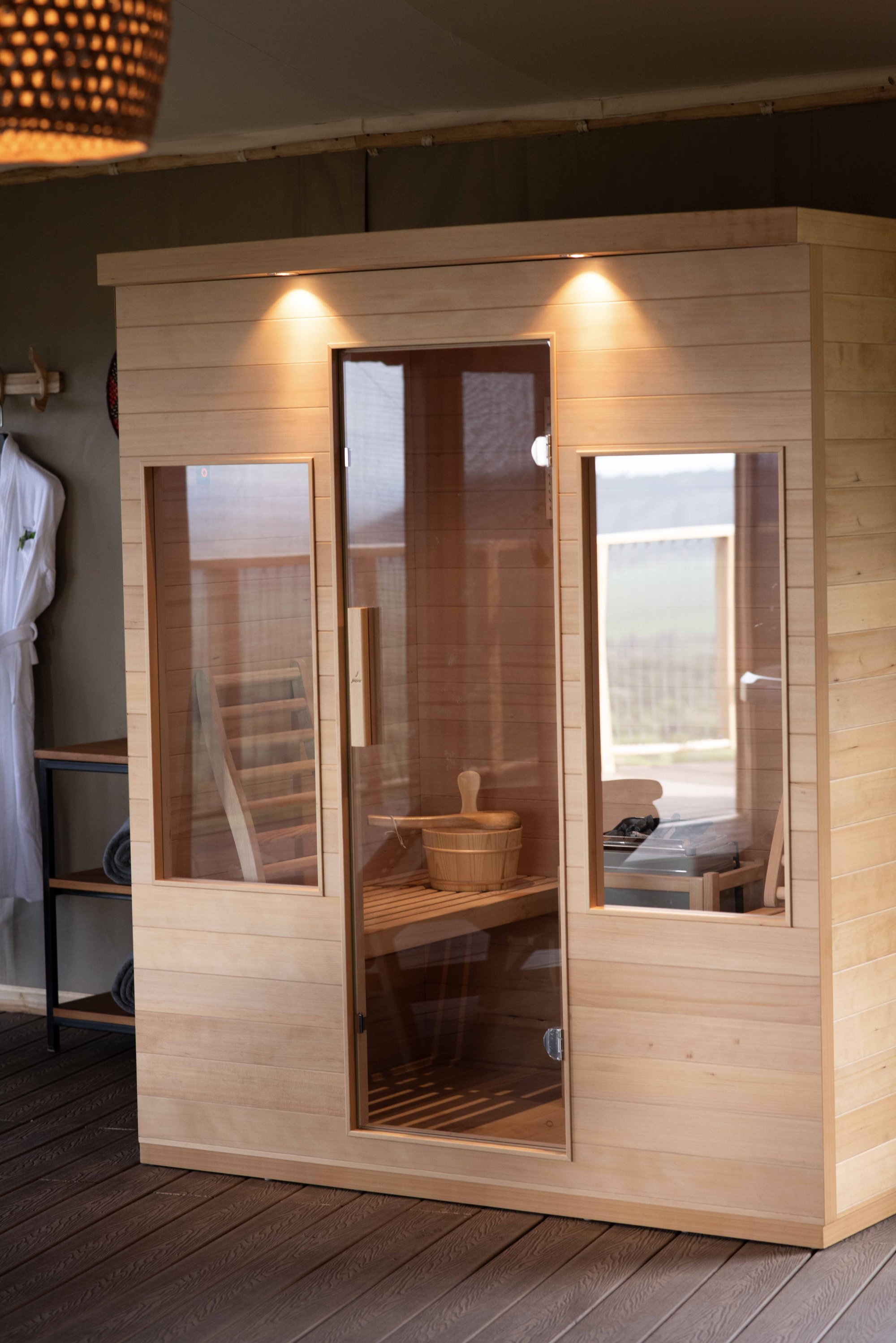 Součástí interiéru je ložnice, obývací část, šatna a koupelna vybavená vnitřní i venkovní sprchou. Všechny stany se nacházejí poblíž hlavní budovy hotelu. K dispozici je také možnost propojení dvou stanů pro rodiny nebo skupiny přátel, které si chtějí užít společné chvíle, a přitom si zachovat vlastní soukromí.