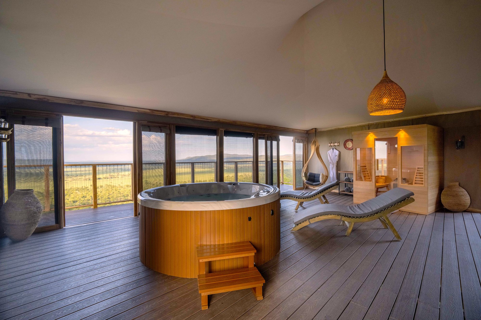 Lázně využívají vyživující přírodní produkty z místních zdrojů, včetně bylin, koření, medu a třtinového cukru. V hotelu Neptune Serengeti Luxury Tented Camp je k dispozici také plně vybavená posilovna, bazén a soukromé lekce jógy.