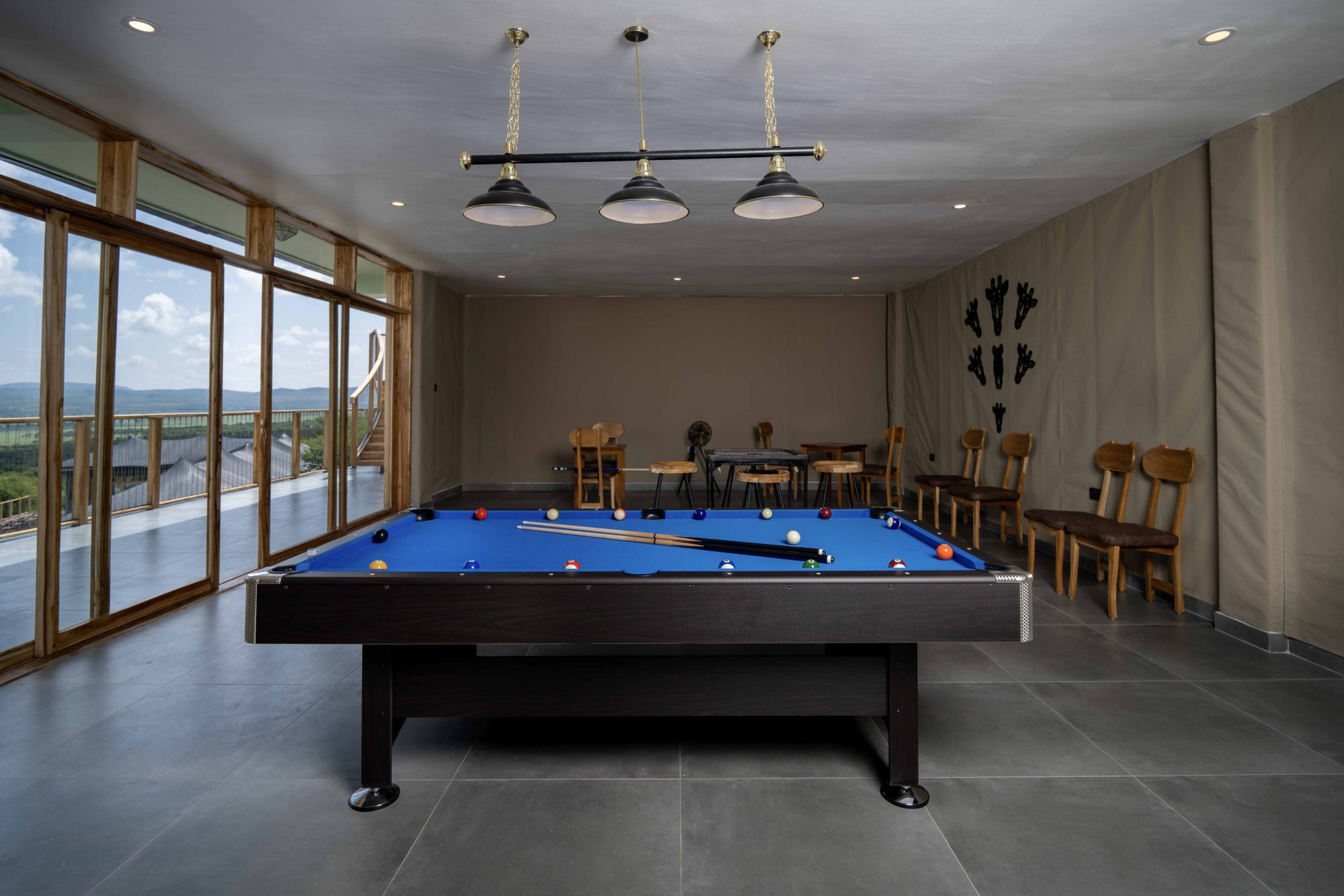 Vybavení stanů zahrnuje: vyhlídkovou terasu s opalovacími lehátky a houpacími křesly, venkovní vířivou vanu, wellness vybavení, podložku na jógu, plně vybavený minibar, psací stůl, Wi-Fi, dalekohled, žehličku a žehlicí prkno, sejf, dvě umyvadla, samostatnou toaletu, fén na vlasy, adaptéry, deštníky a pokojovou službu.